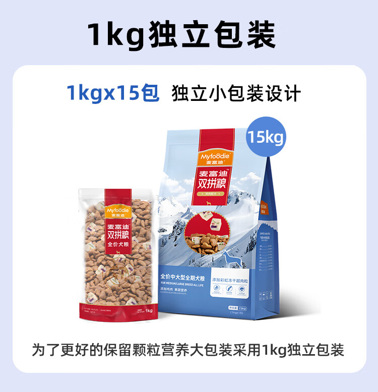 麦富迪狗粮 超肉粒冻干狗粮 成幼犬中大型犬专用 15kg/30斤【宠物金选】