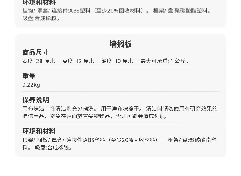 宜家(IKEA)OBONAS俄伯内带吸盘盛具墙搁板免打孔挂钩架 墙搁板