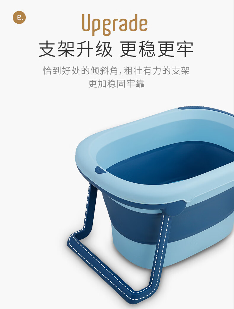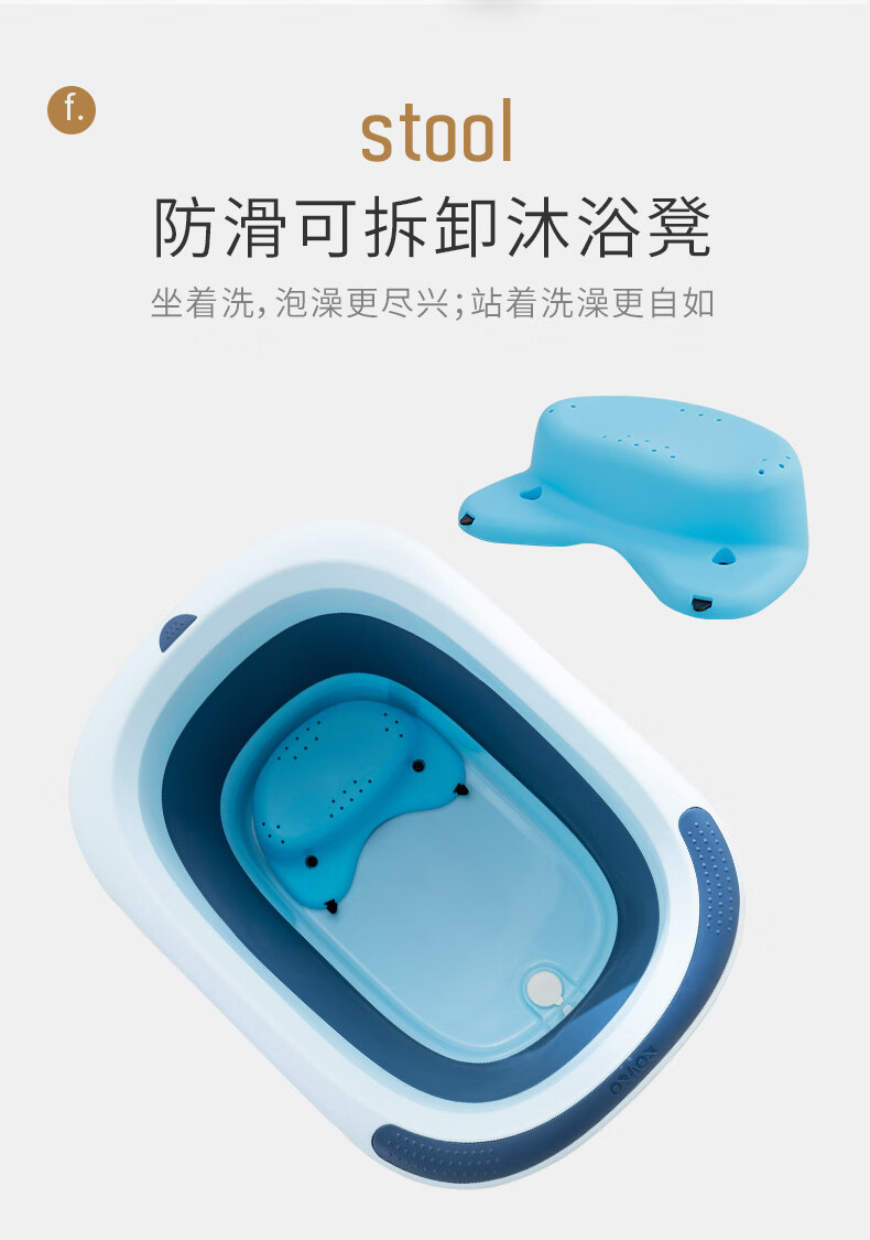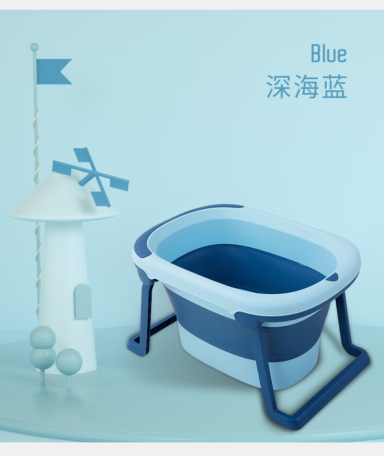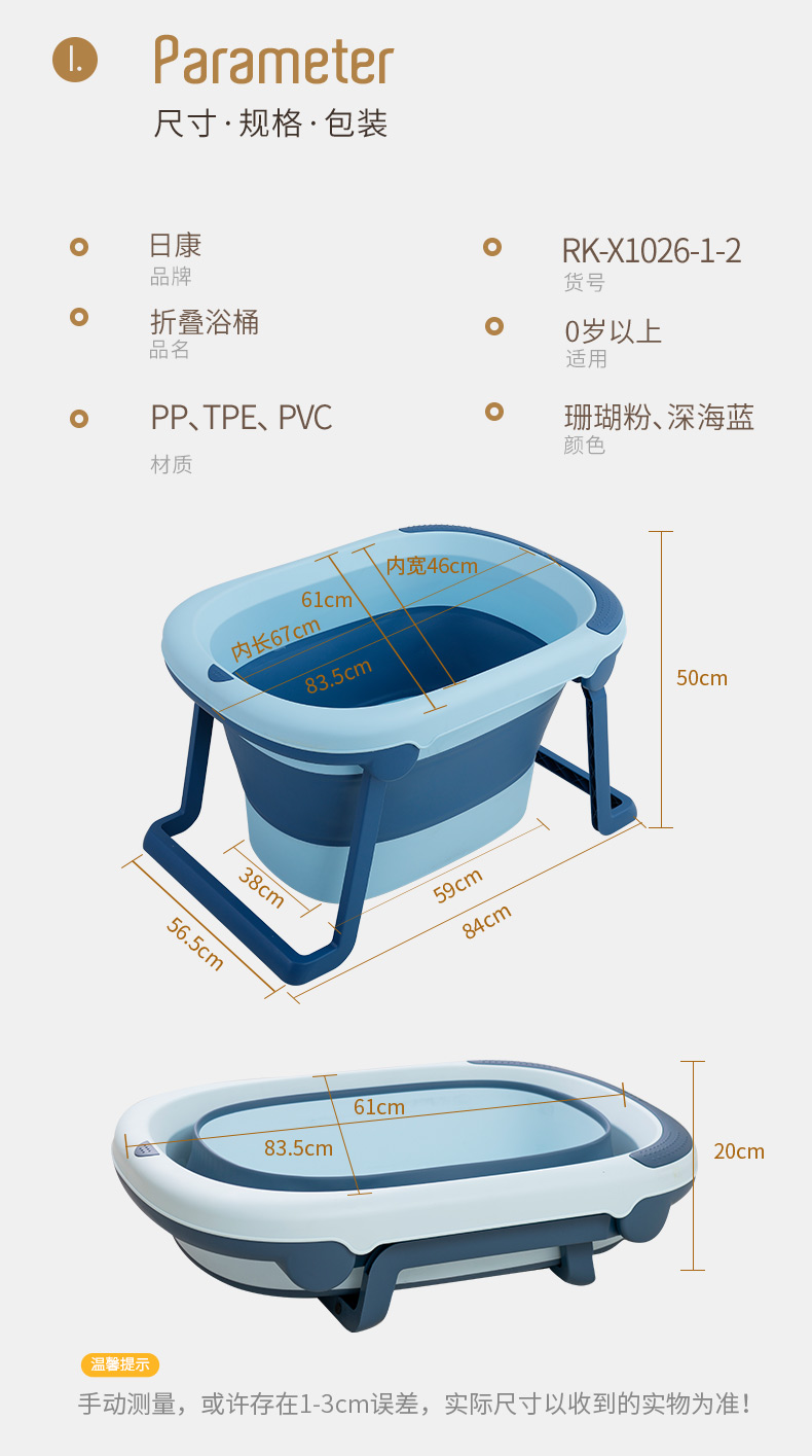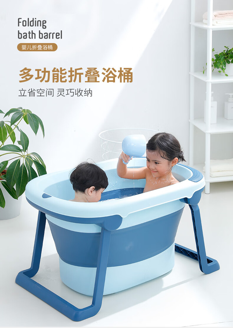 日康(rikang)泡澡桶 儿童折叠浴桶婴儿洗澡盆 宝宝洗澡桶 赠浴凳蓝色X1026-1