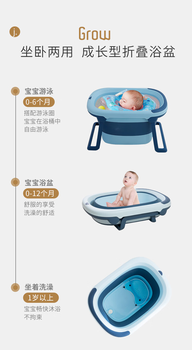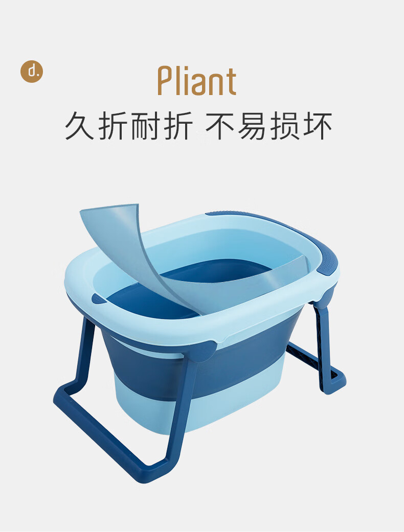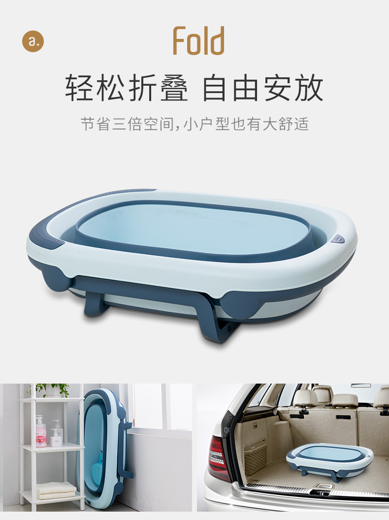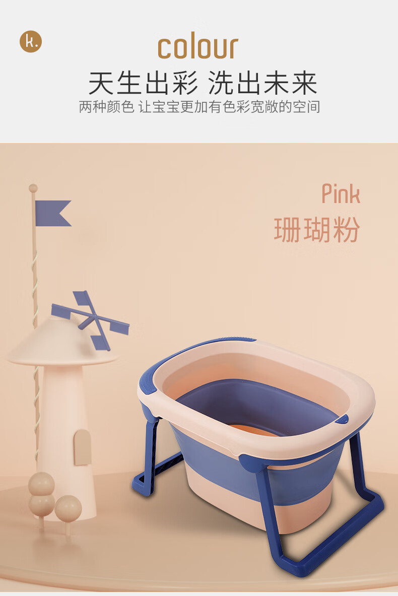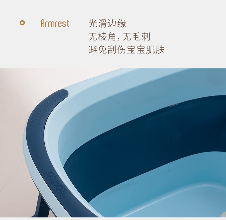 日康(rikang)泡澡桶 儿童折叠浴桶婴儿洗澡盆 宝宝洗澡桶 赠浴凳蓝色X1026-1