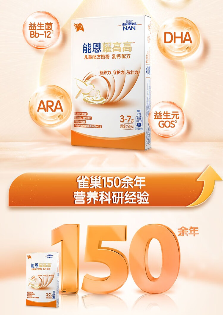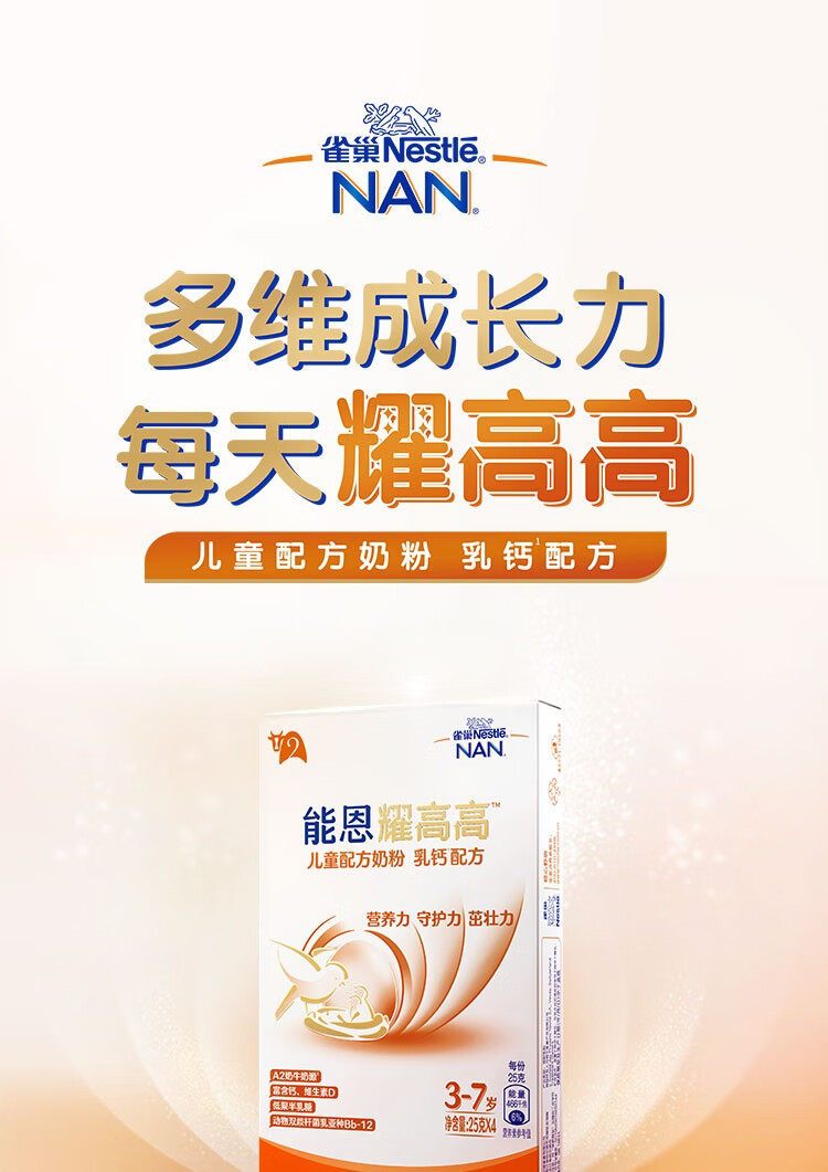 雀巢(Nestle)【能恩4升级款】能恩耀高高 A2蛋白 儿童配方奶粉 3-7岁适用 100g