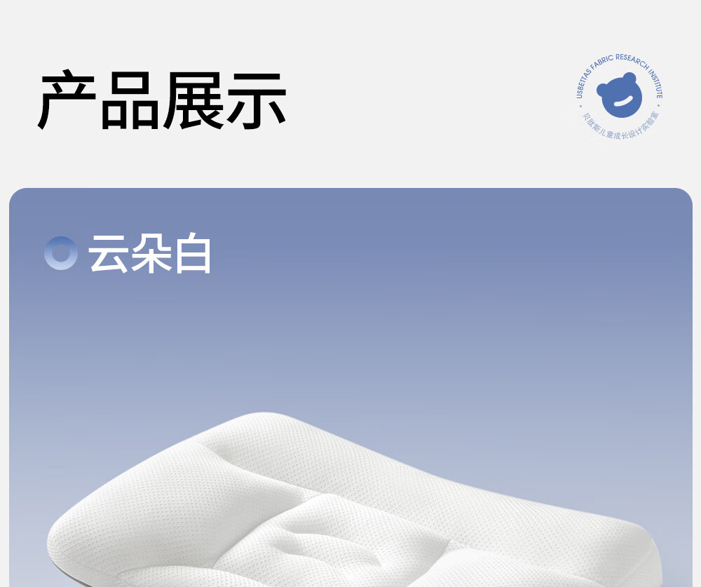 贝肽斯儿童枕头1-3岁宝宝6个月以上婴儿幼儿园专用护颈四季通用 H1 云朵白【1-3岁】双面可用 【10A抗菌】