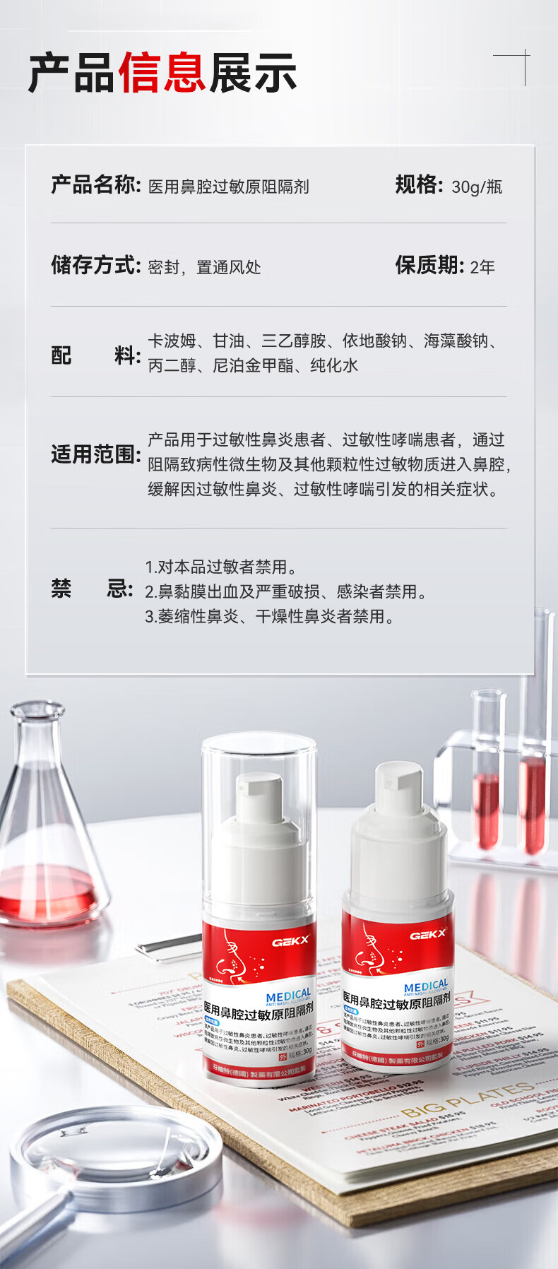 医用鼻腔过敏原阻隔剂依地酸钠过敏原阻隔剂可搭华北制药今华维鼻炎凝胶过敏性鼻炎喷雾剂鼻塞鼻窦炎鼻痒正品 1瓶装【体验装不够用】多支更划算