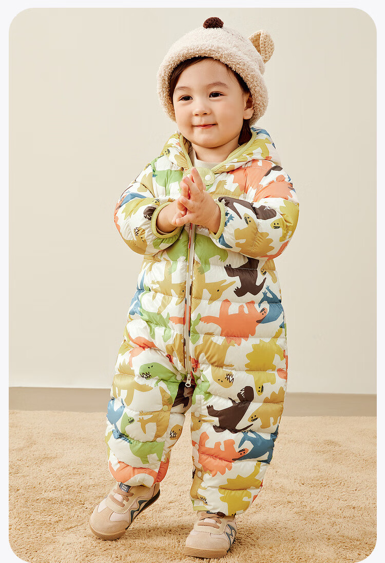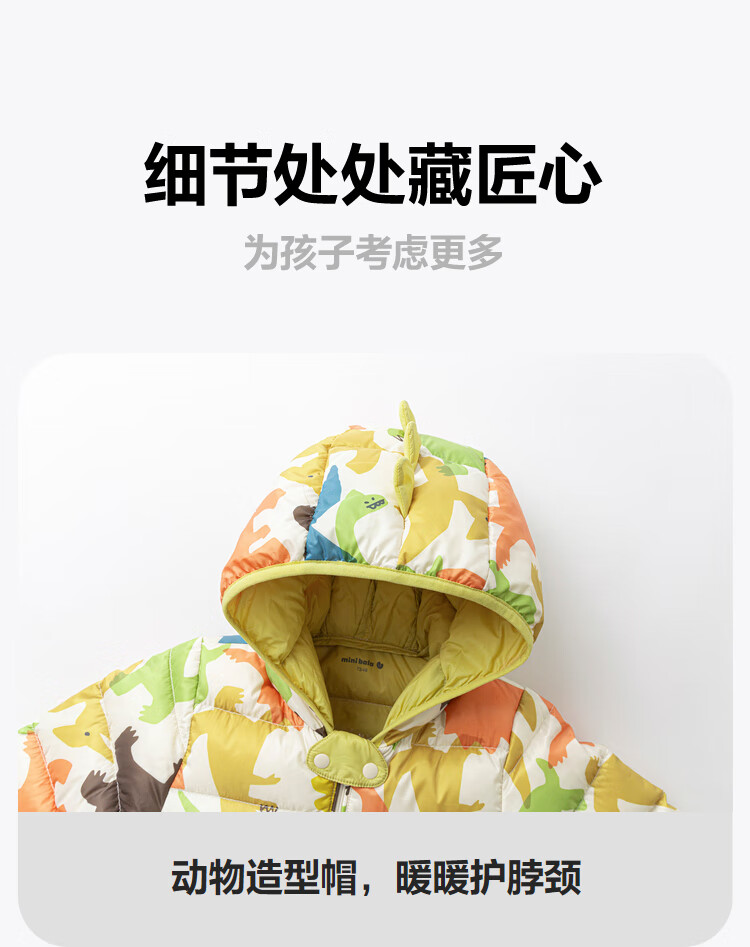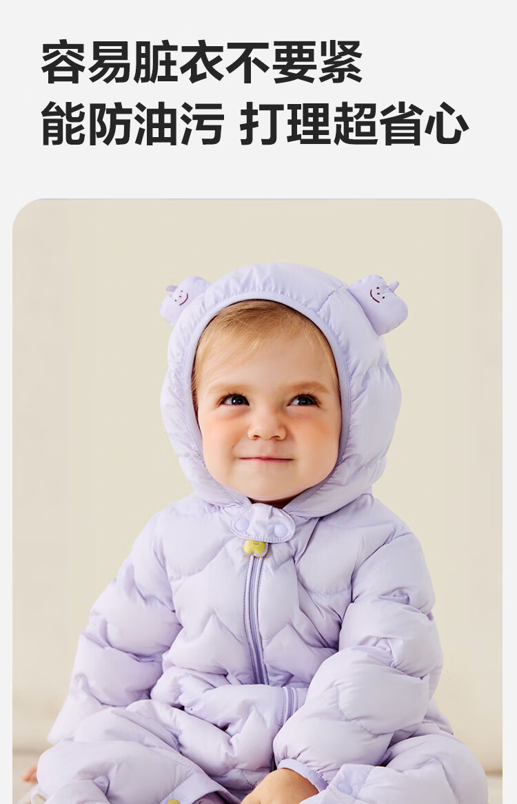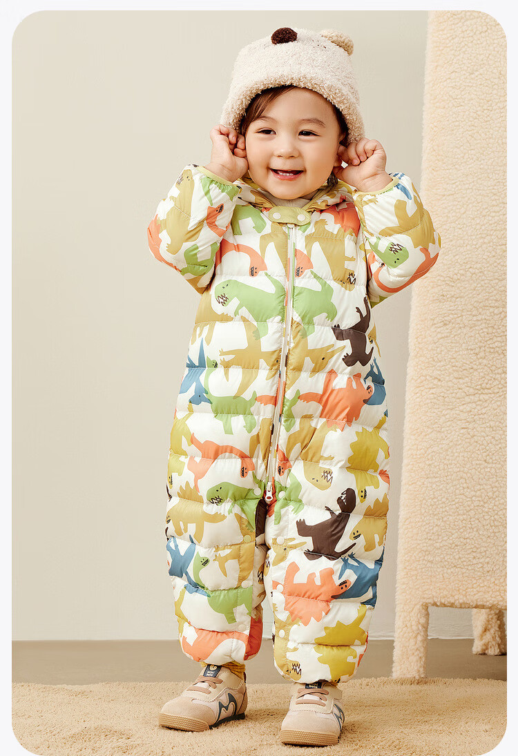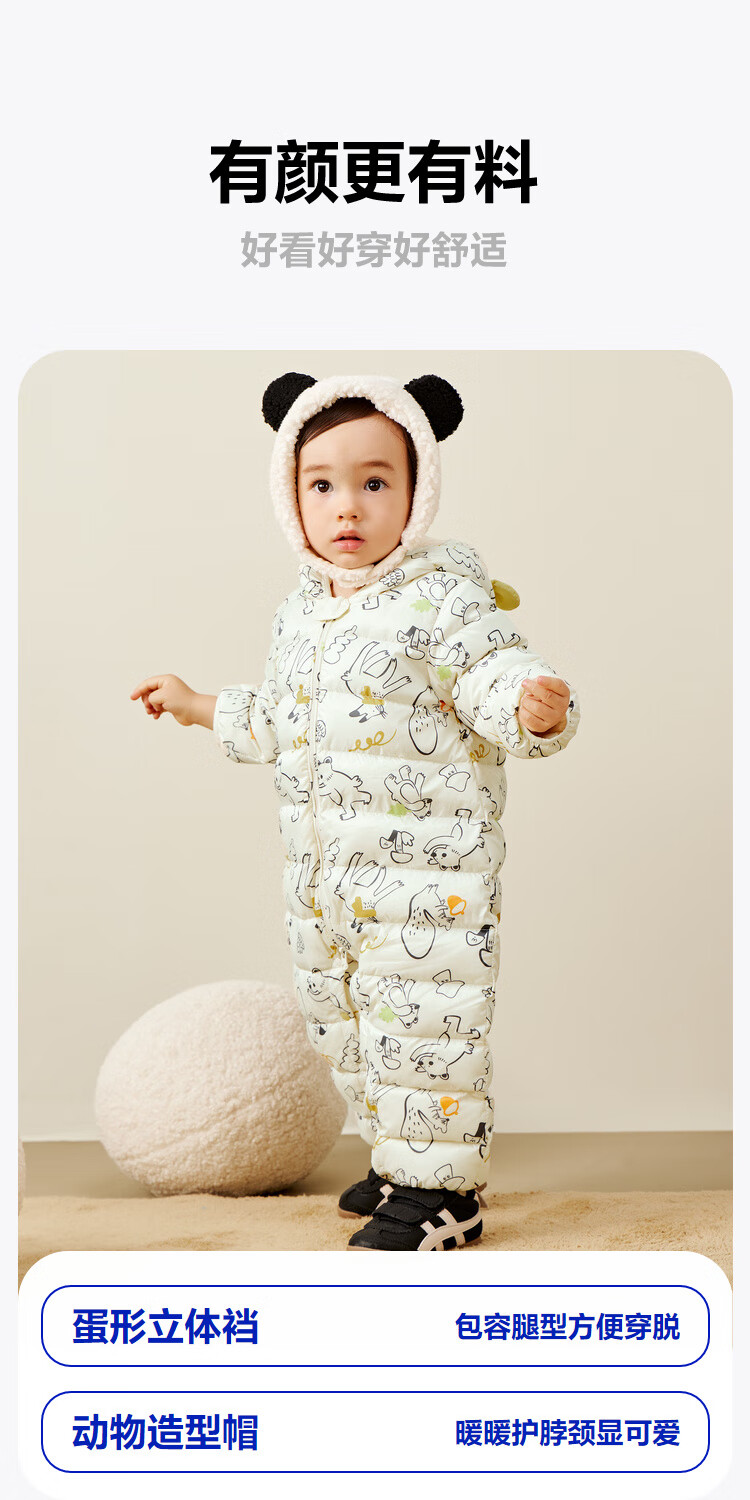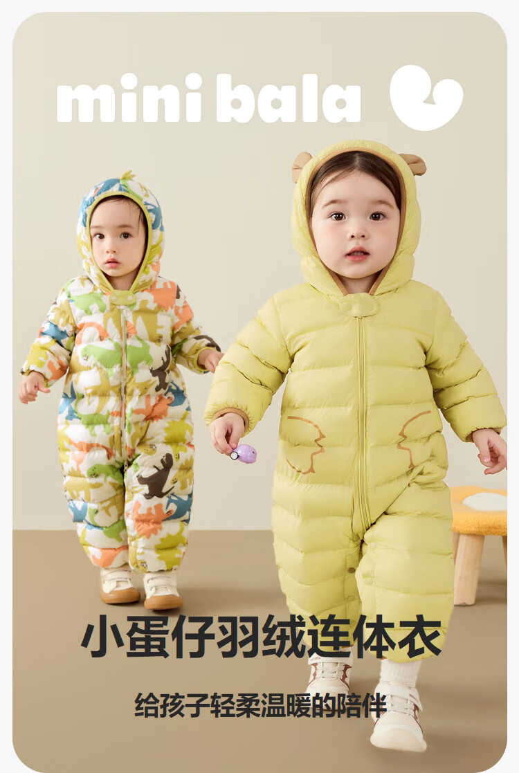 迷你巴拉巴拉三防连体羽绒服男女童婴儿宝宝羽绒服连体衣萌趣外套2025新品