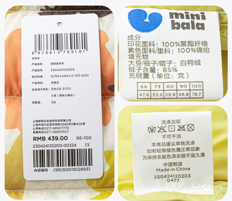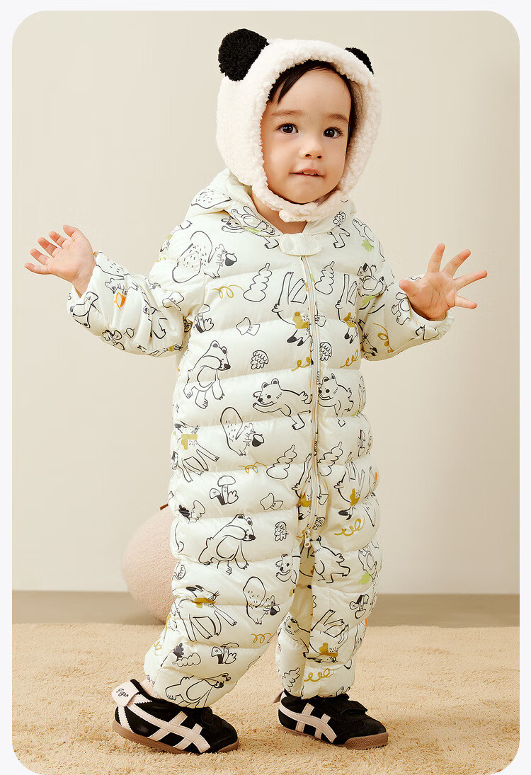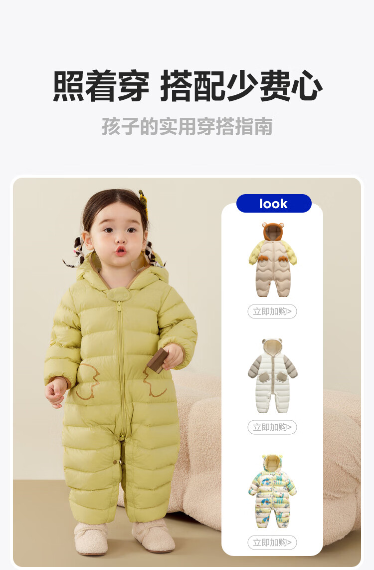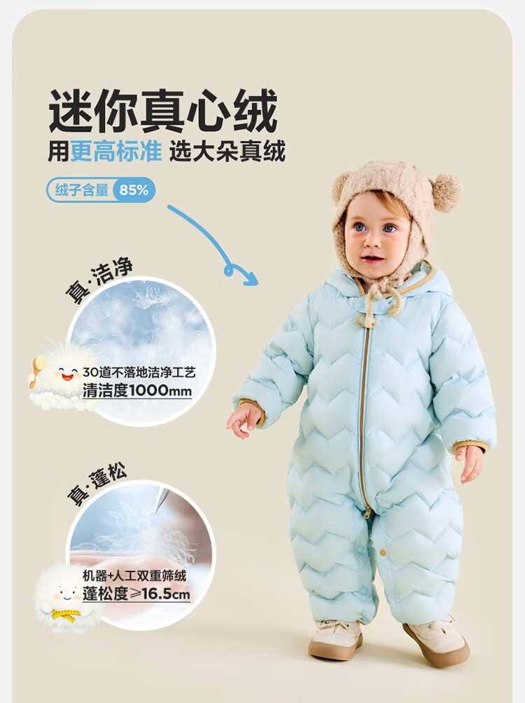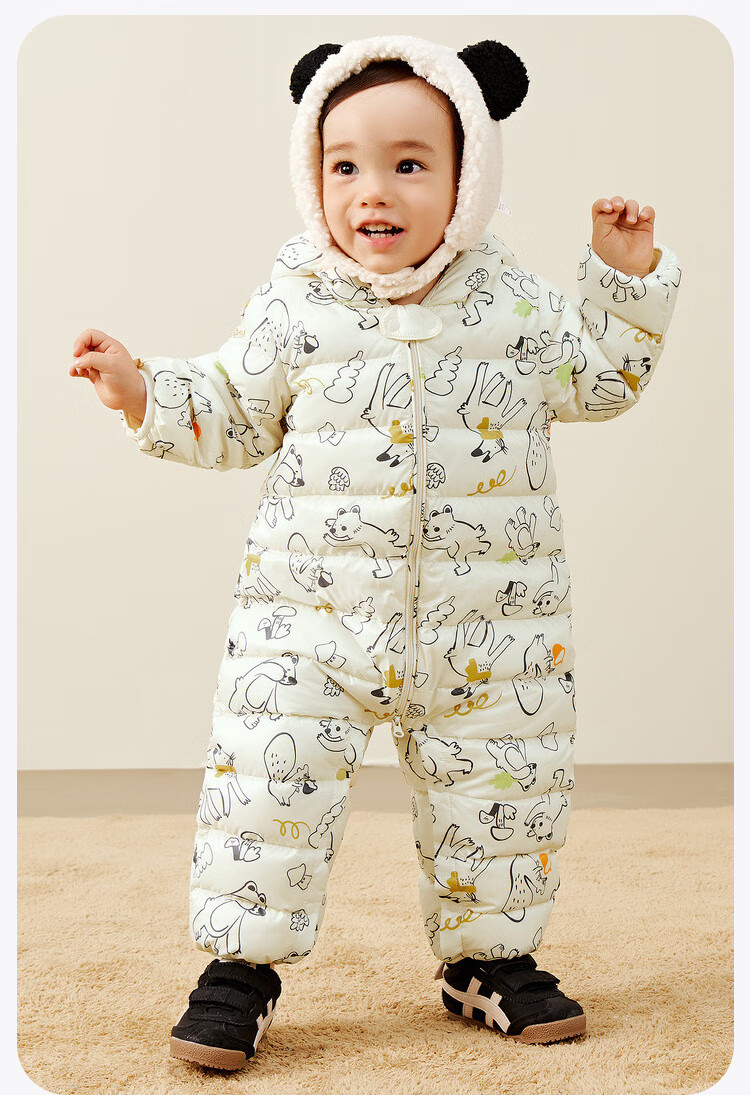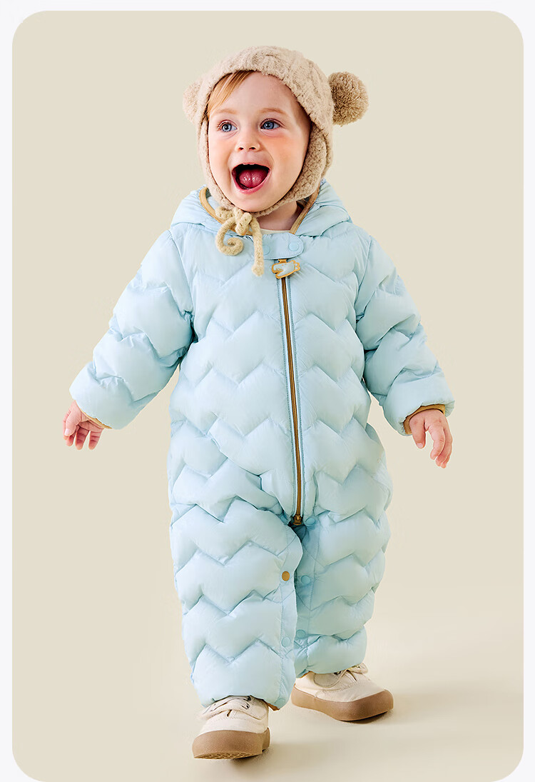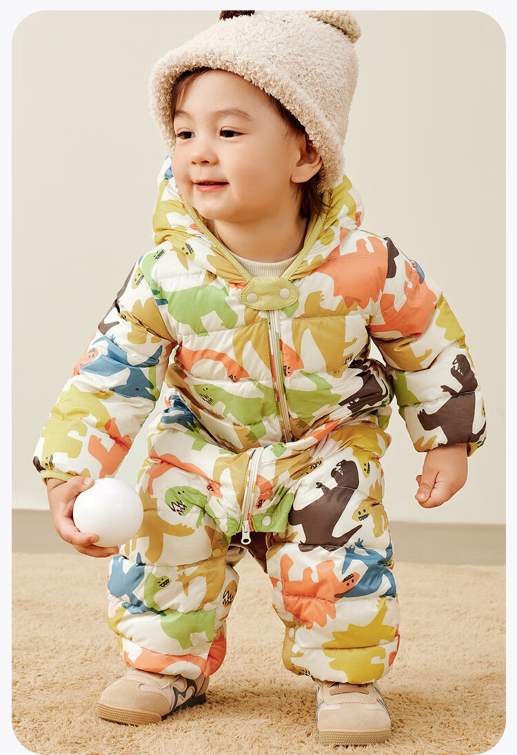 迷你巴拉巴拉三防连体羽绒服男女童婴儿宝宝羽绒服连体衣萌趣外套2025新品