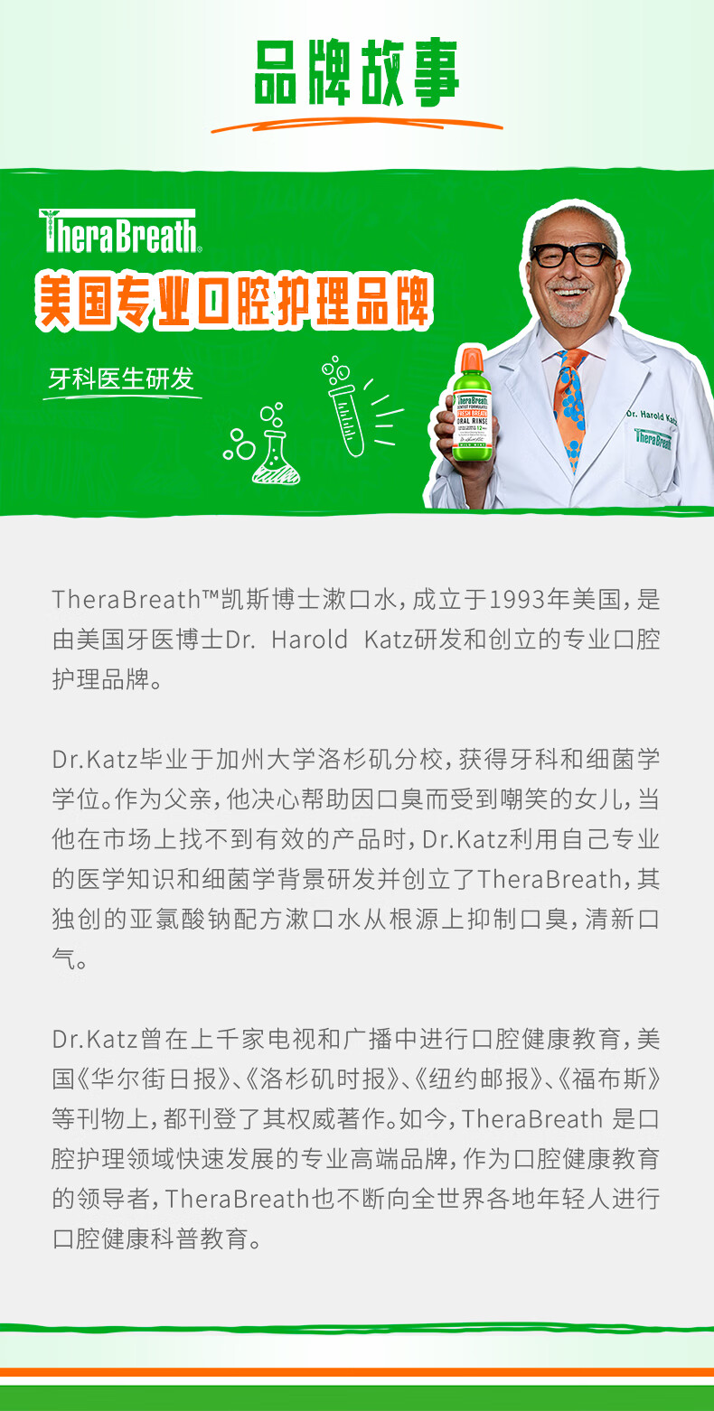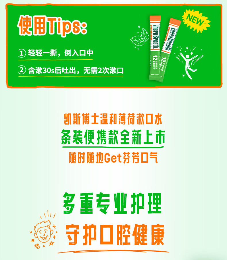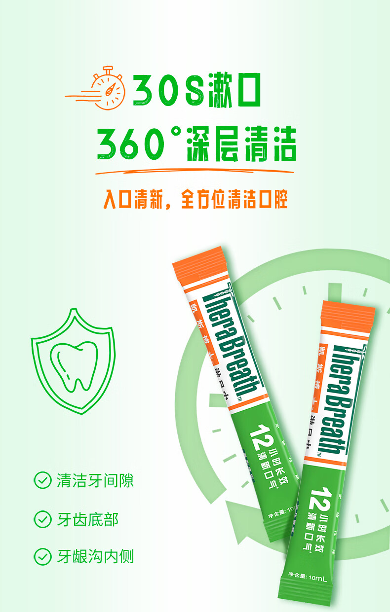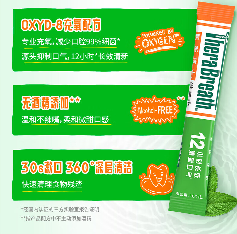 TheraBreath凯斯博士条状漱口水便携旅行装 温和薄荷10ml*3条长效清新口气