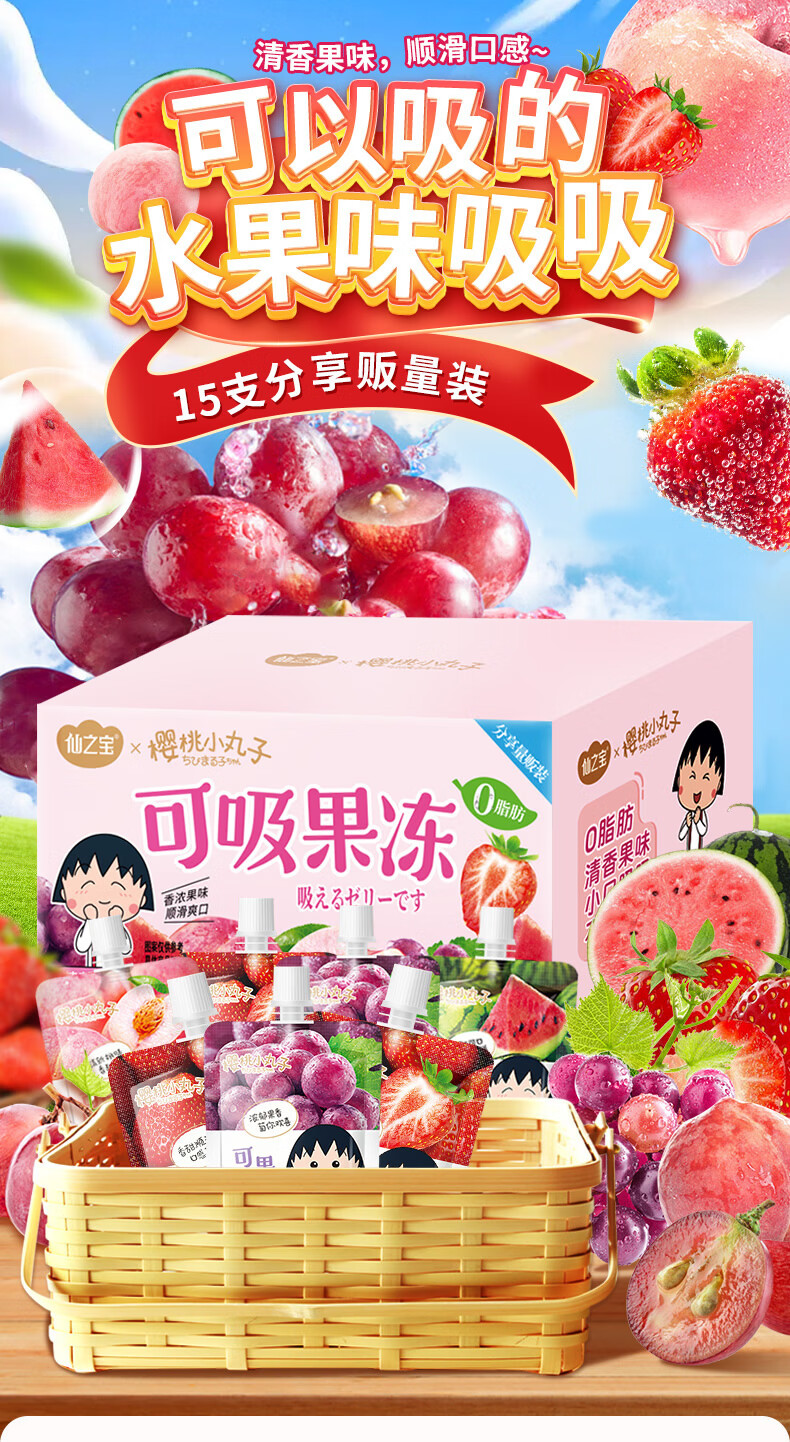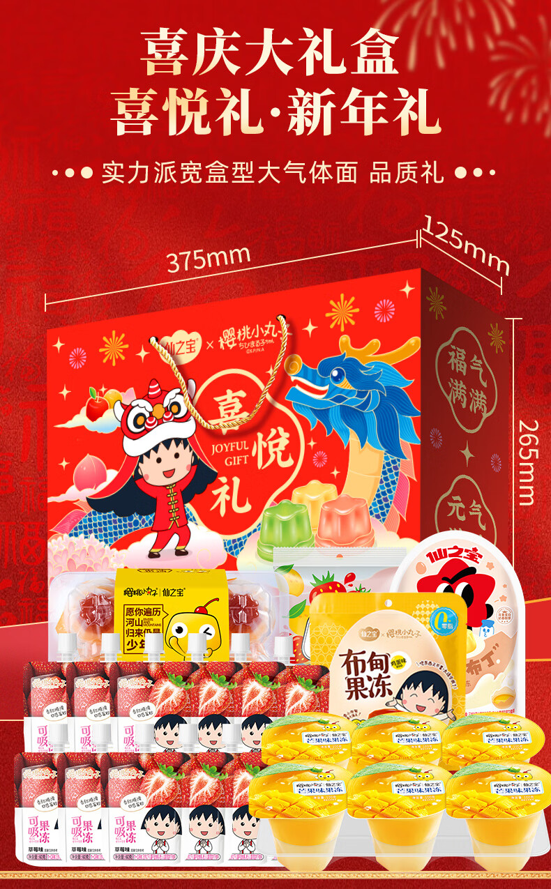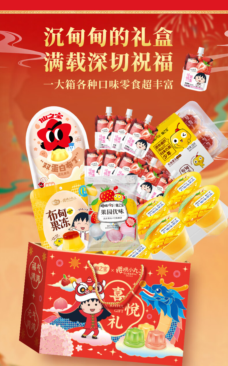樱桃小丸子可吸吸果冻儿童零食大礼包0脂追剧小吃下午茶生日礼物 60-90g/支 【喜悦礼】手提礼盒2050g