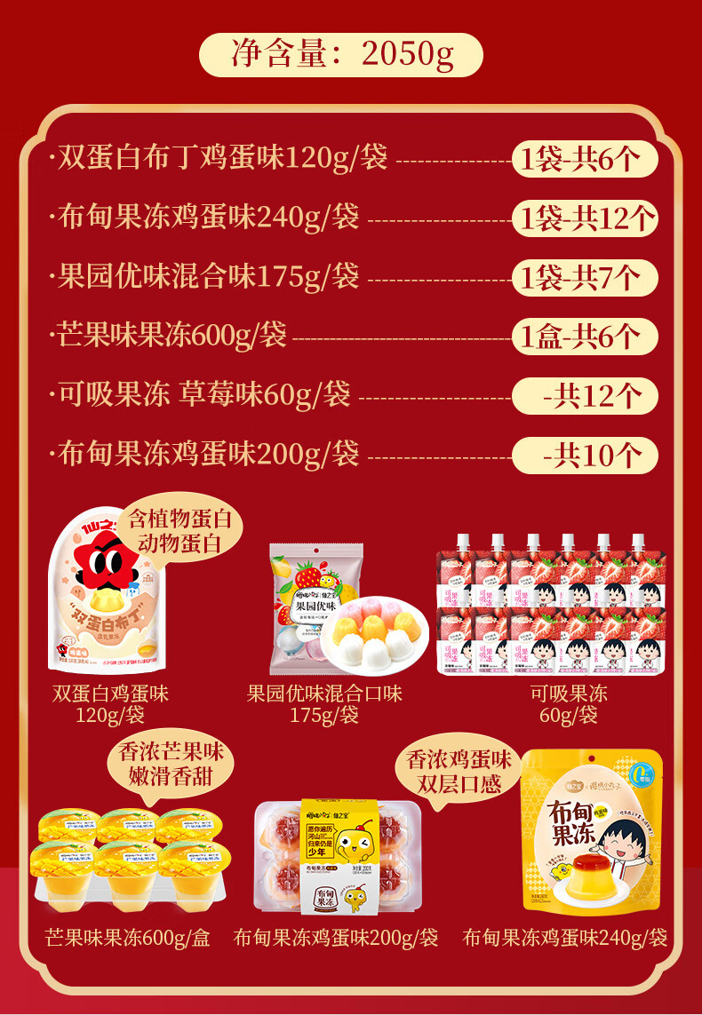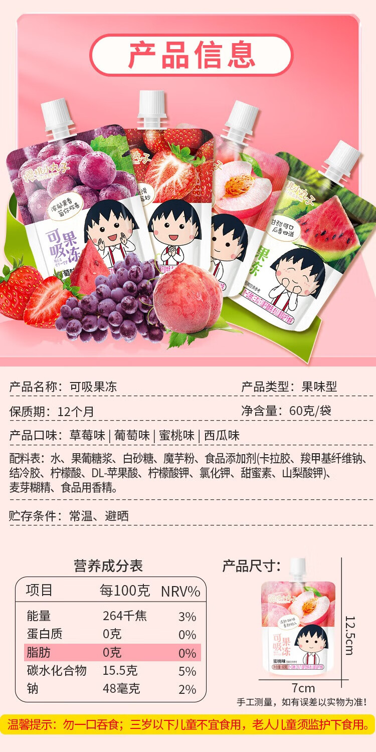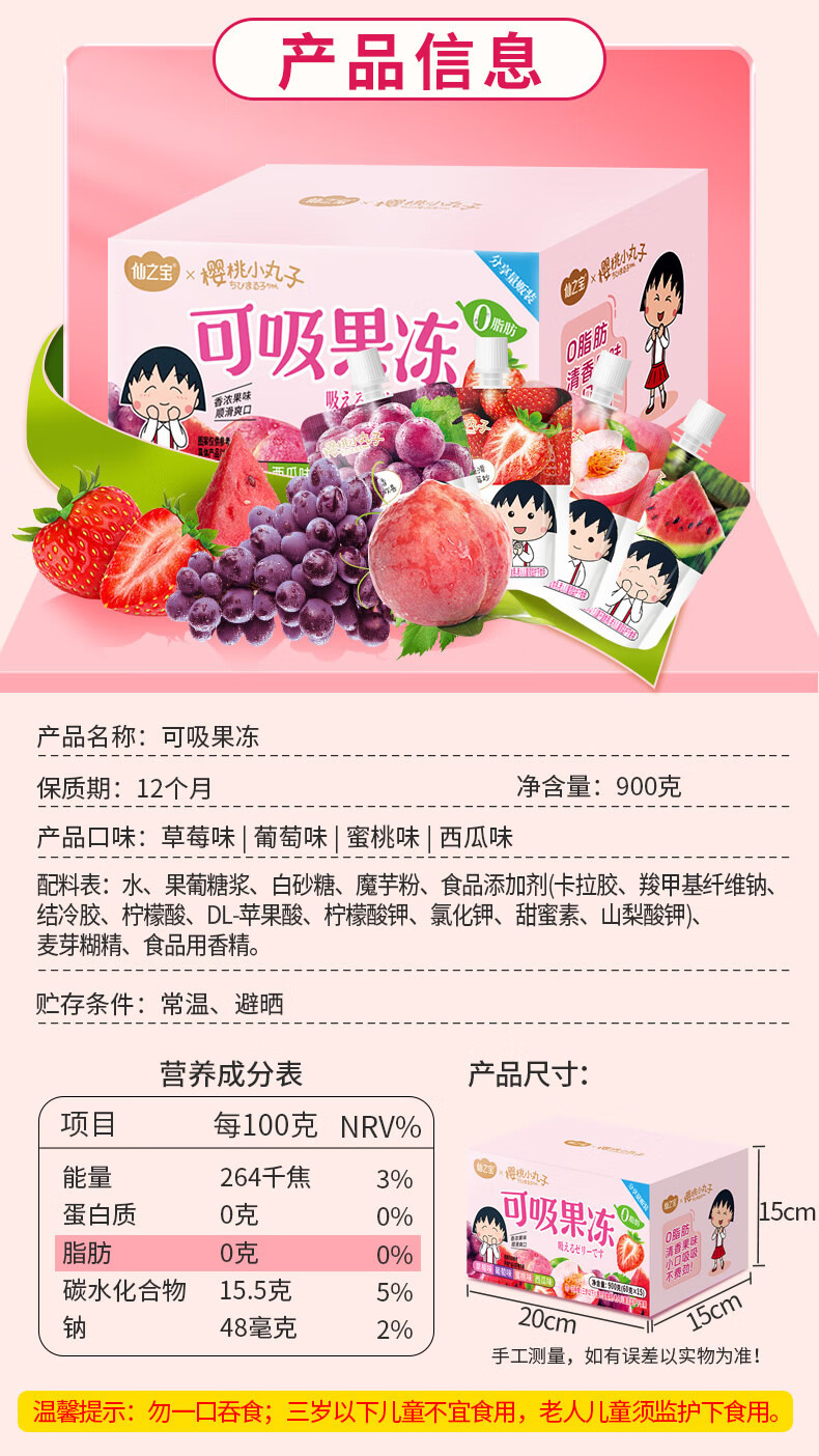 樱桃小丸子可吸吸果冻儿童零食大礼包0脂追剧小吃下午茶生日礼物 60-90g/支 【喜悦礼】手提礼盒2050g