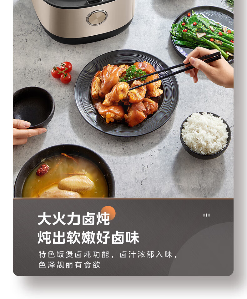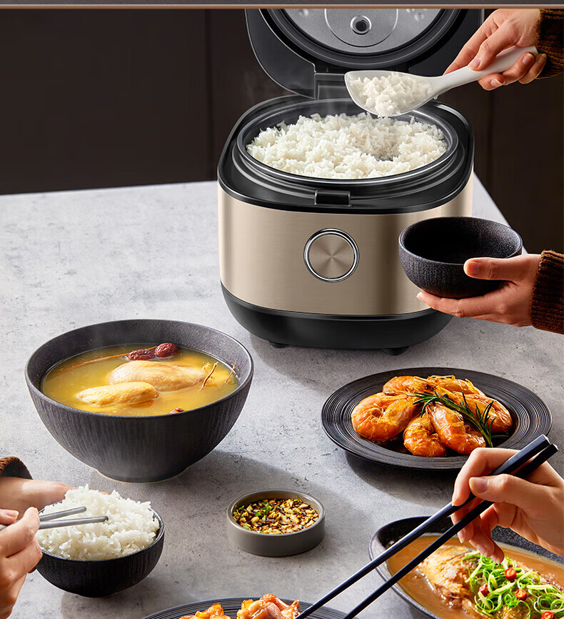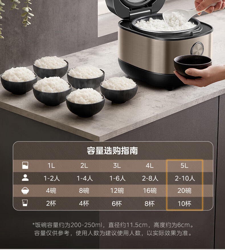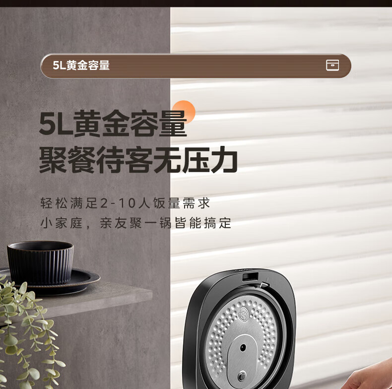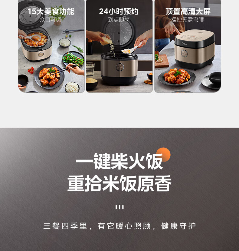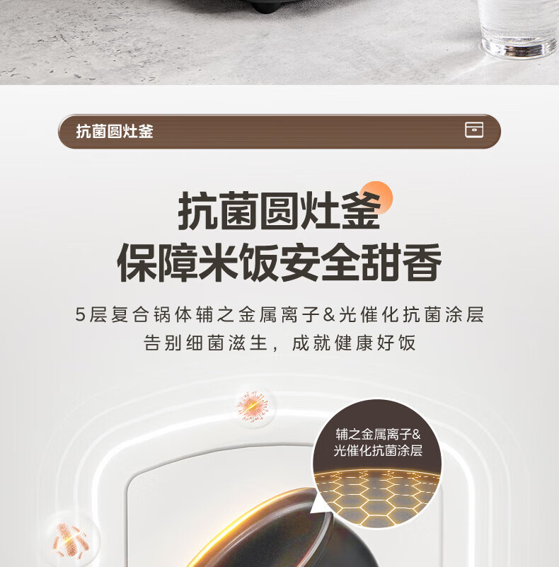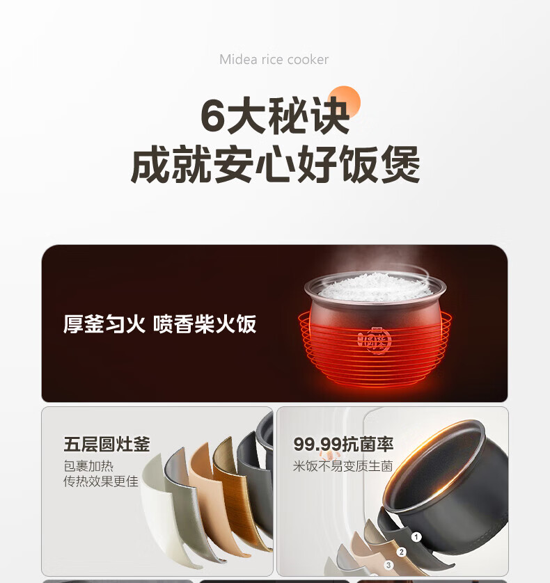 美的电饭煲抗菌圆釜内胆 电饭锅家用5升多功能微压一键柴火饭特色炖卤功能煮粥锅适用4-5-8-10个人 【升级抗菌加厚圆灶釜】 5L
