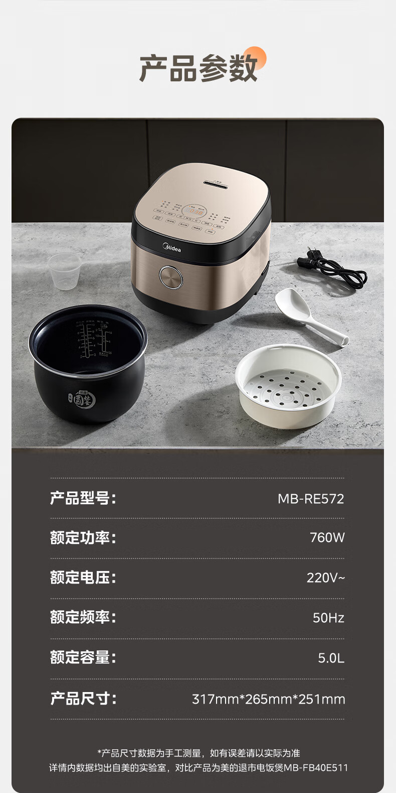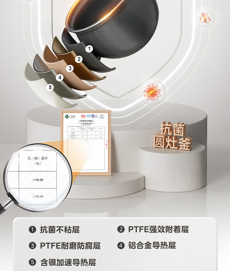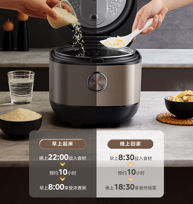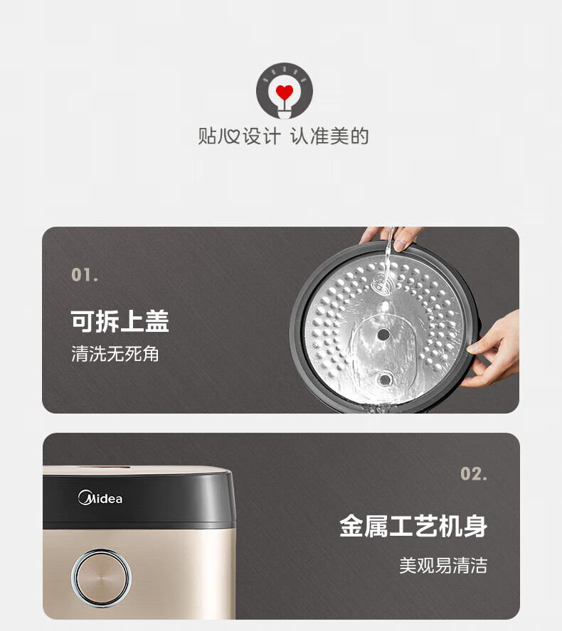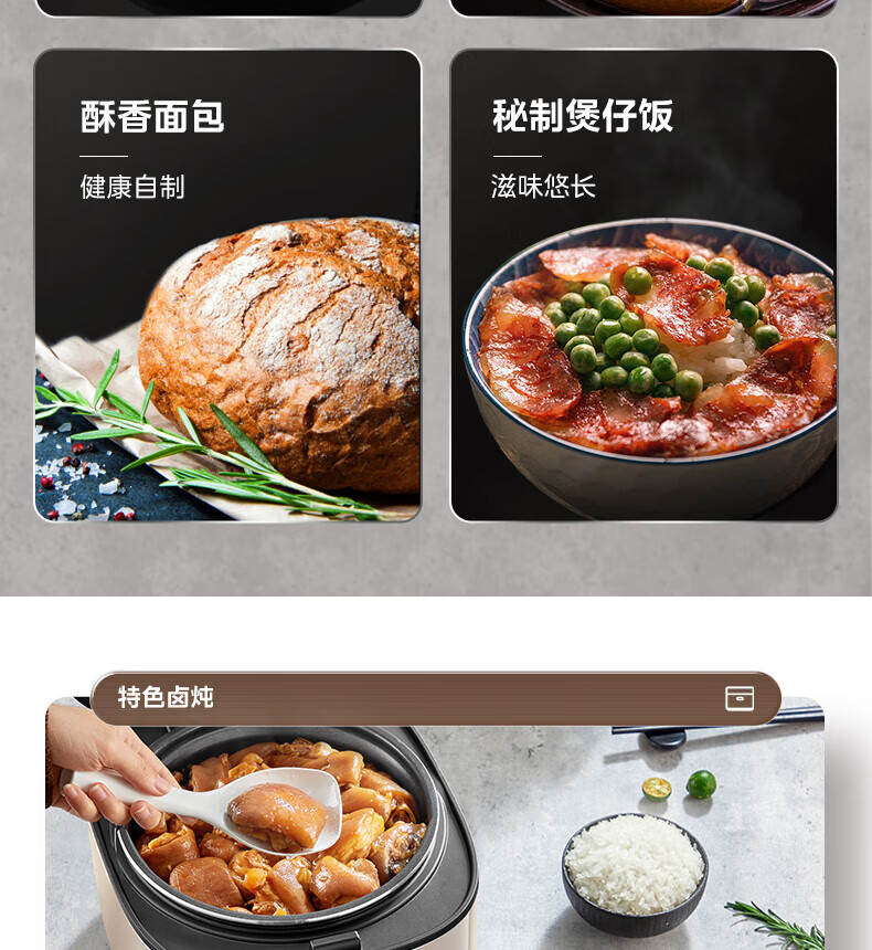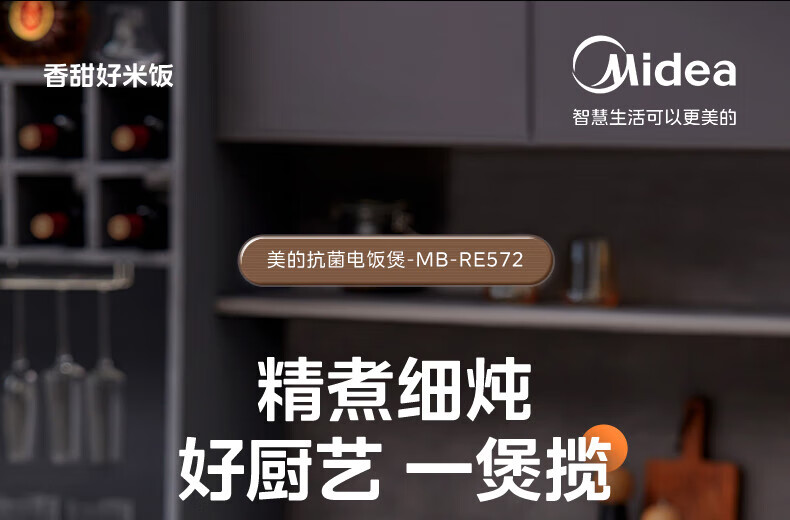 美的电饭煲抗菌圆釜内胆 电饭锅家用5升多功能微压一键柴火饭特色炖卤功能煮粥锅适用4-5-8-10个人 【升级抗菌加厚圆灶釜】 5L