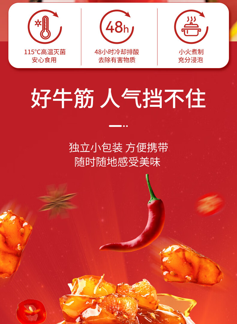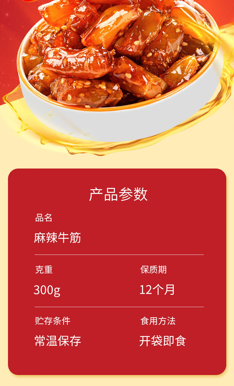蒙都 麻辣牛筋 麻辣味 袋装 散称约300g 约14-16小袋 休闲零食 清真