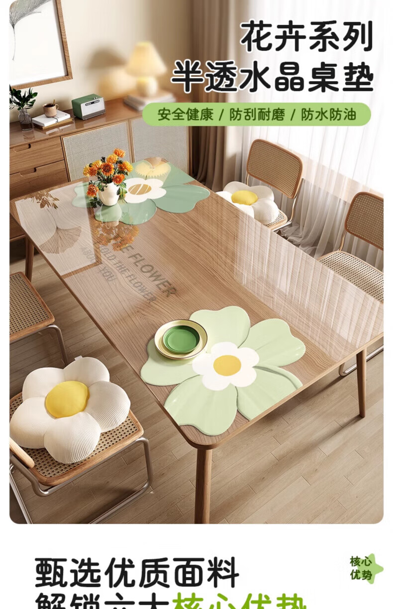 DEATKN德国软玻璃桌垫加厚防油防水防烫免洗PVC桌布可裁剪水晶板透明餐 抹茶蜂蜜 【防油防水,一擦即净】 【其他尺寸/圆角,请先联系客服】