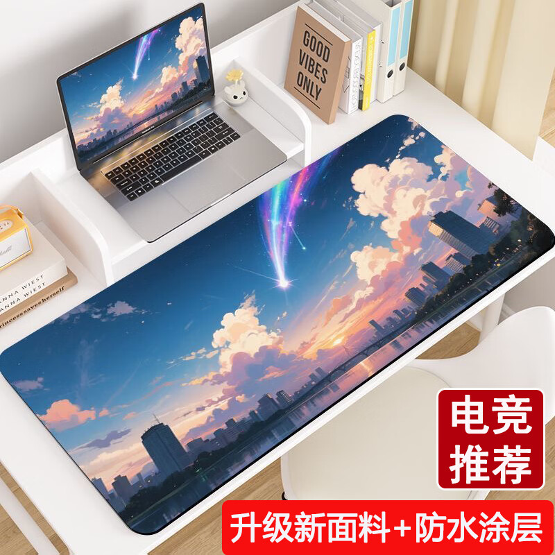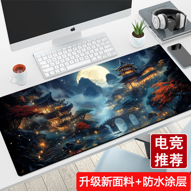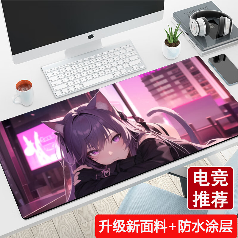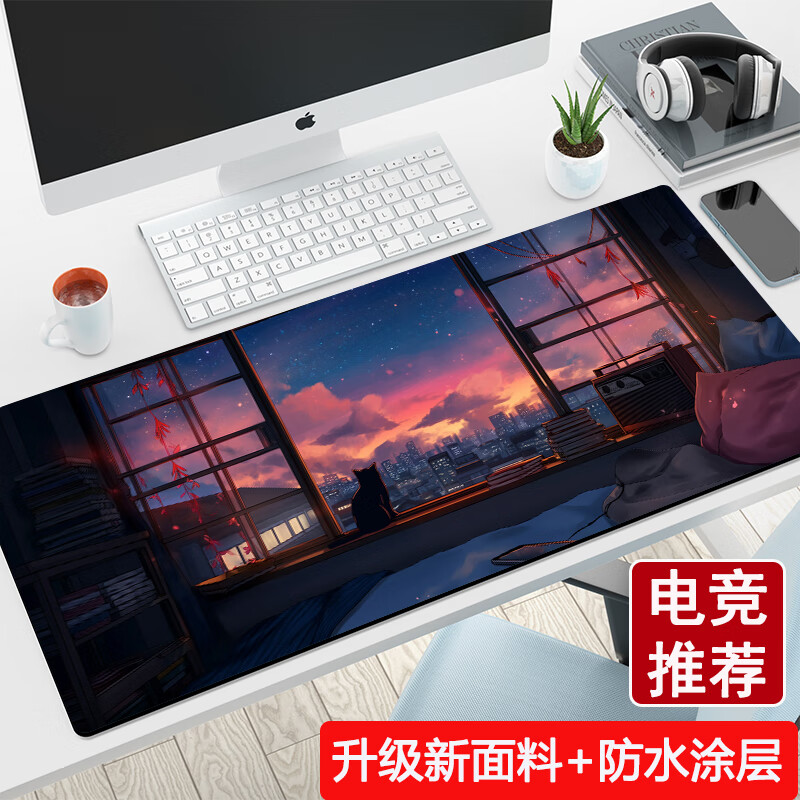 聚盈丰 鼠标垫大号办公游戏电竞fps顺滑垫二次元动漫国风高颜值男女生防水桌垫 800*350*3mm傍晚的猫