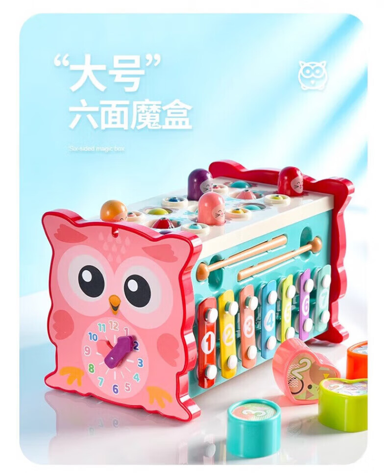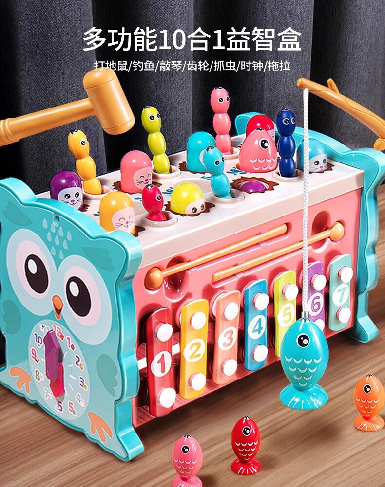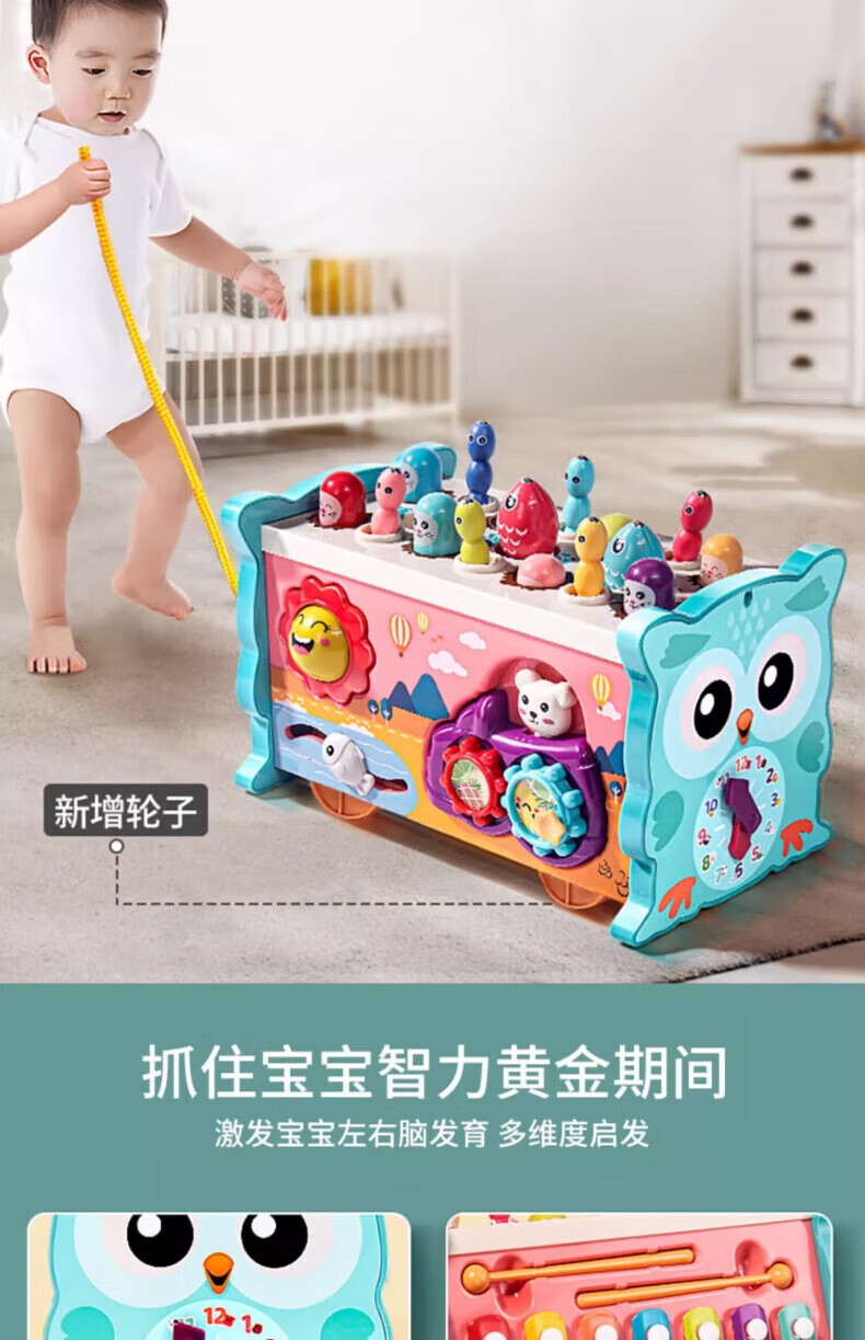 DEATKN德国高端儿童玩具玩具1-3岁早教多功能打地鼠钓鱼敲琴9 绿[7合1]多功能六面体(无琴键款)