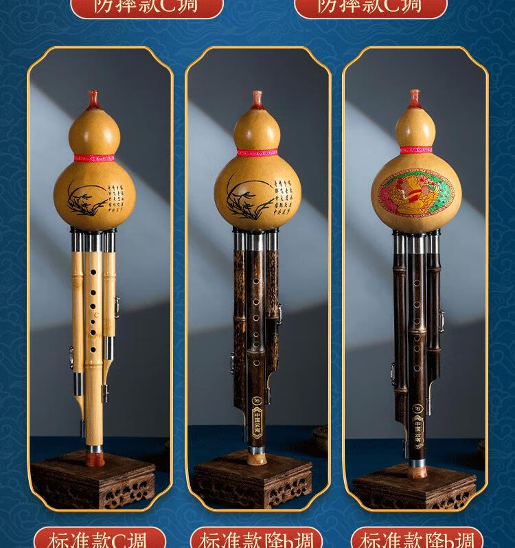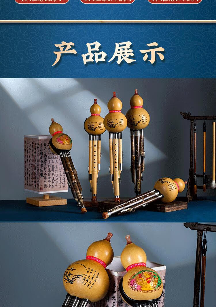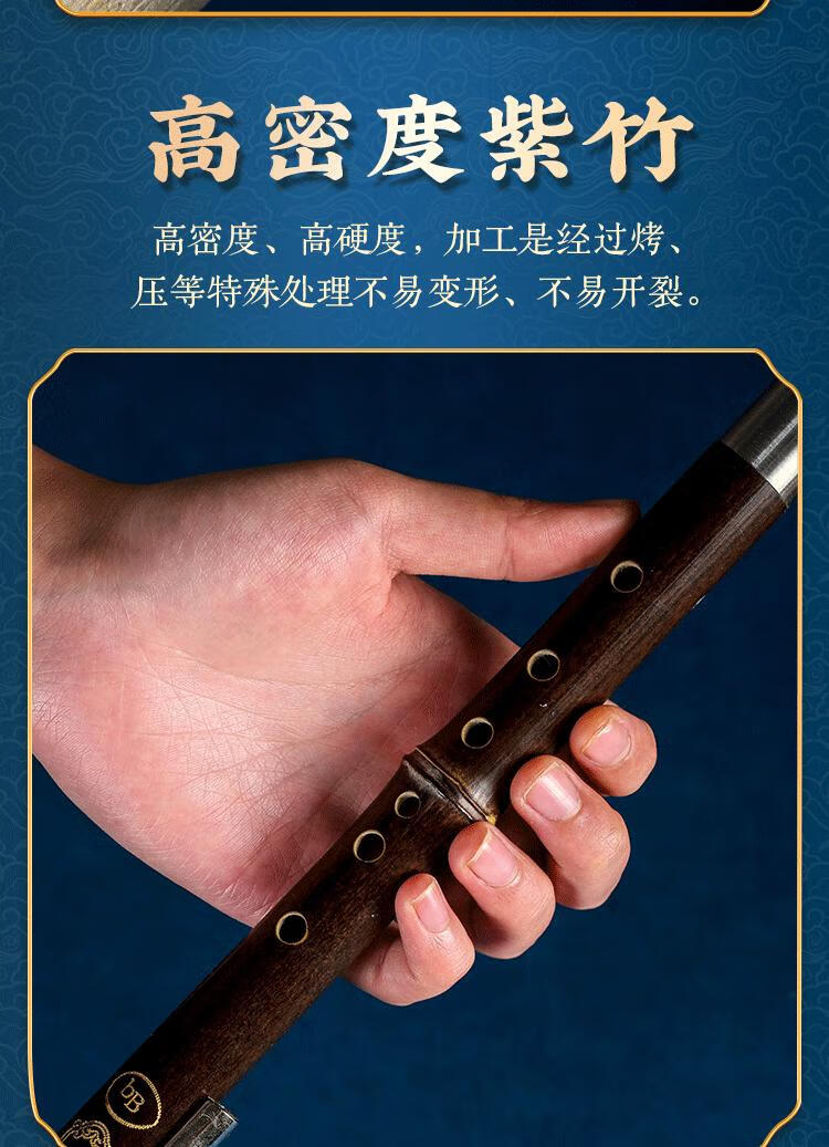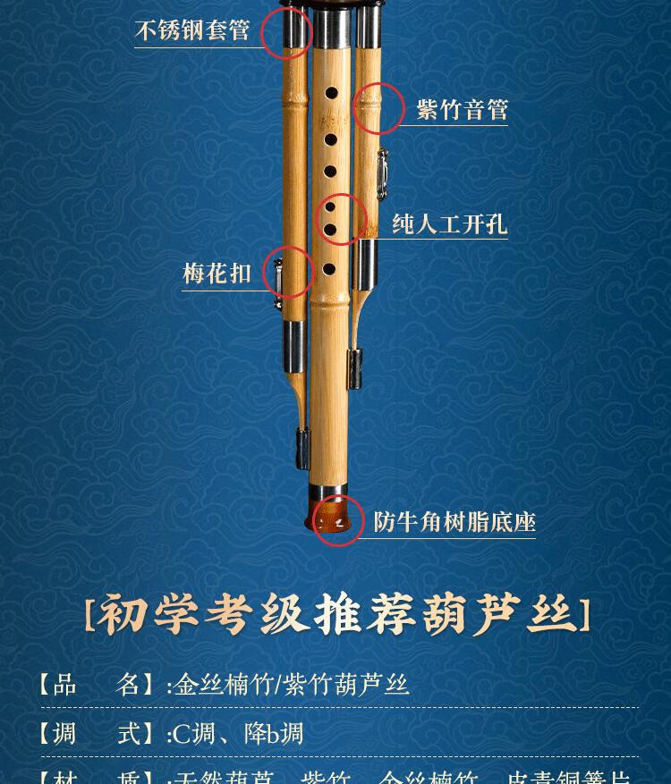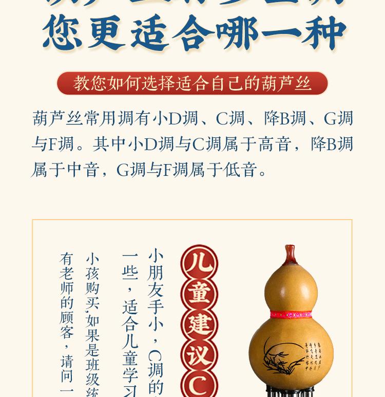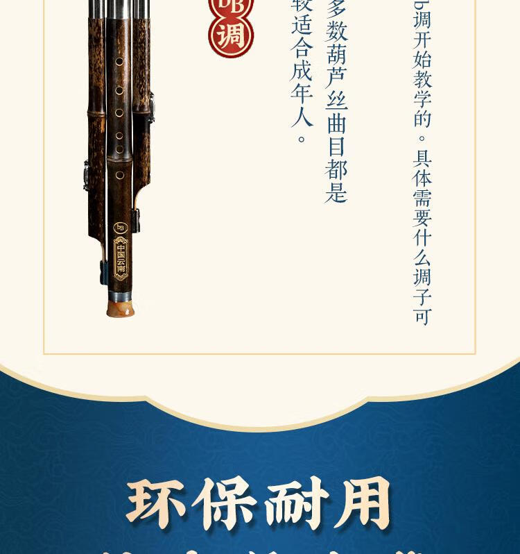 DEATKN德国天然七孔三音紫竹金丝楠竹小学生葫芦丝乐器A调降B调C调D调G 兰花图案紫竹款降B调