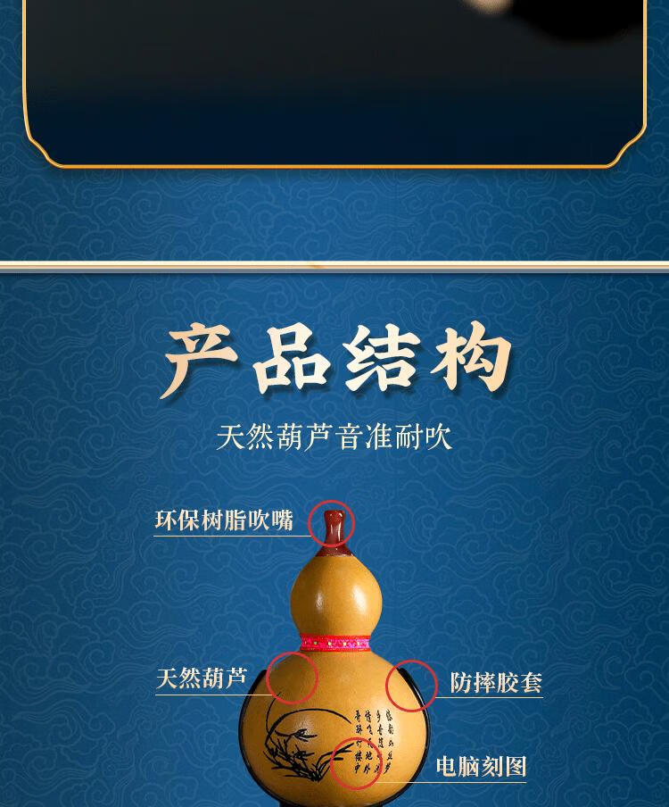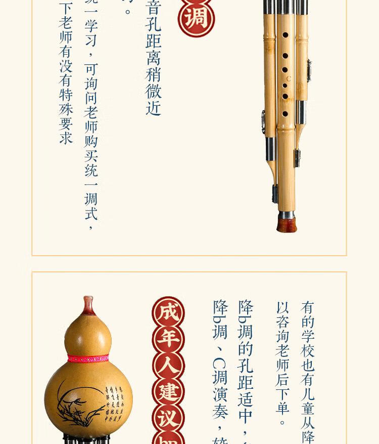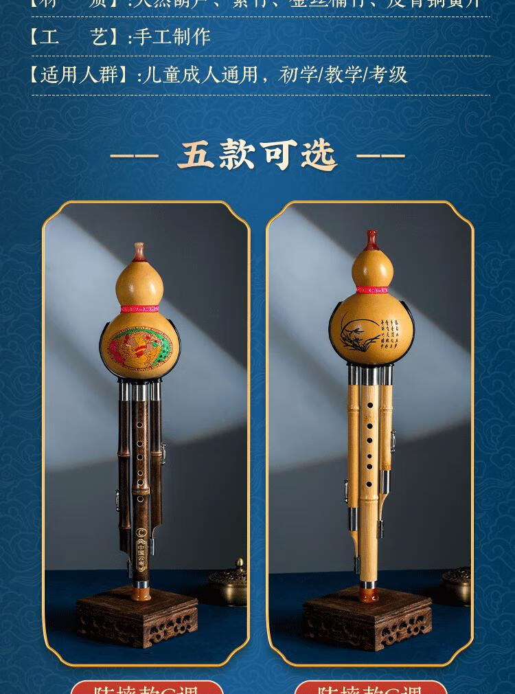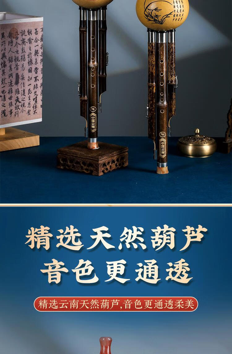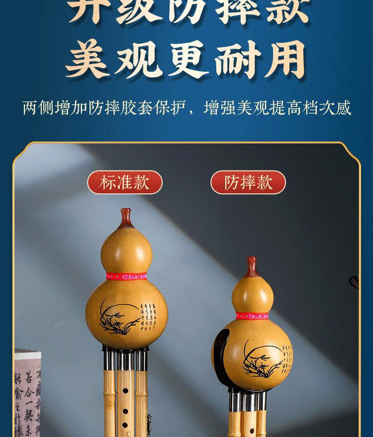 DEATKN德国天然七孔三音紫竹金丝楠竹小学生葫芦丝乐器A调降B调C调D调G 兰花图案紫竹款降B调