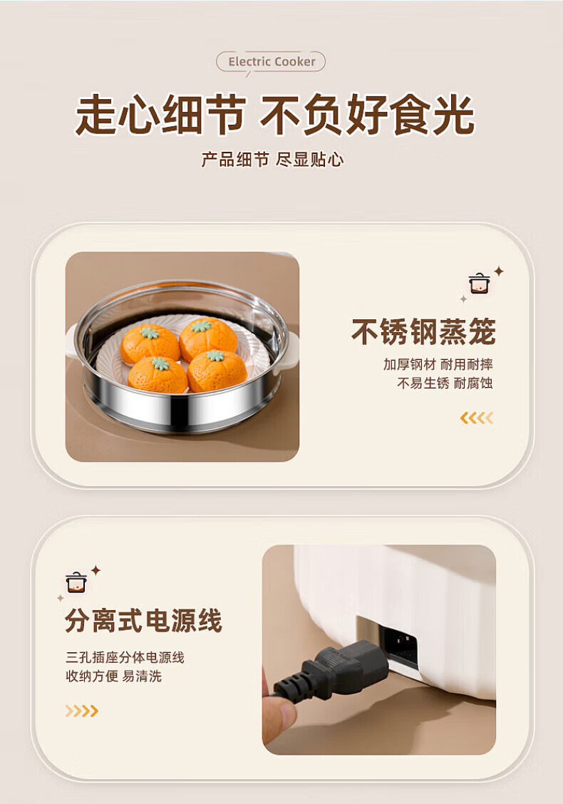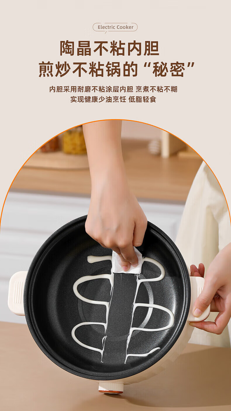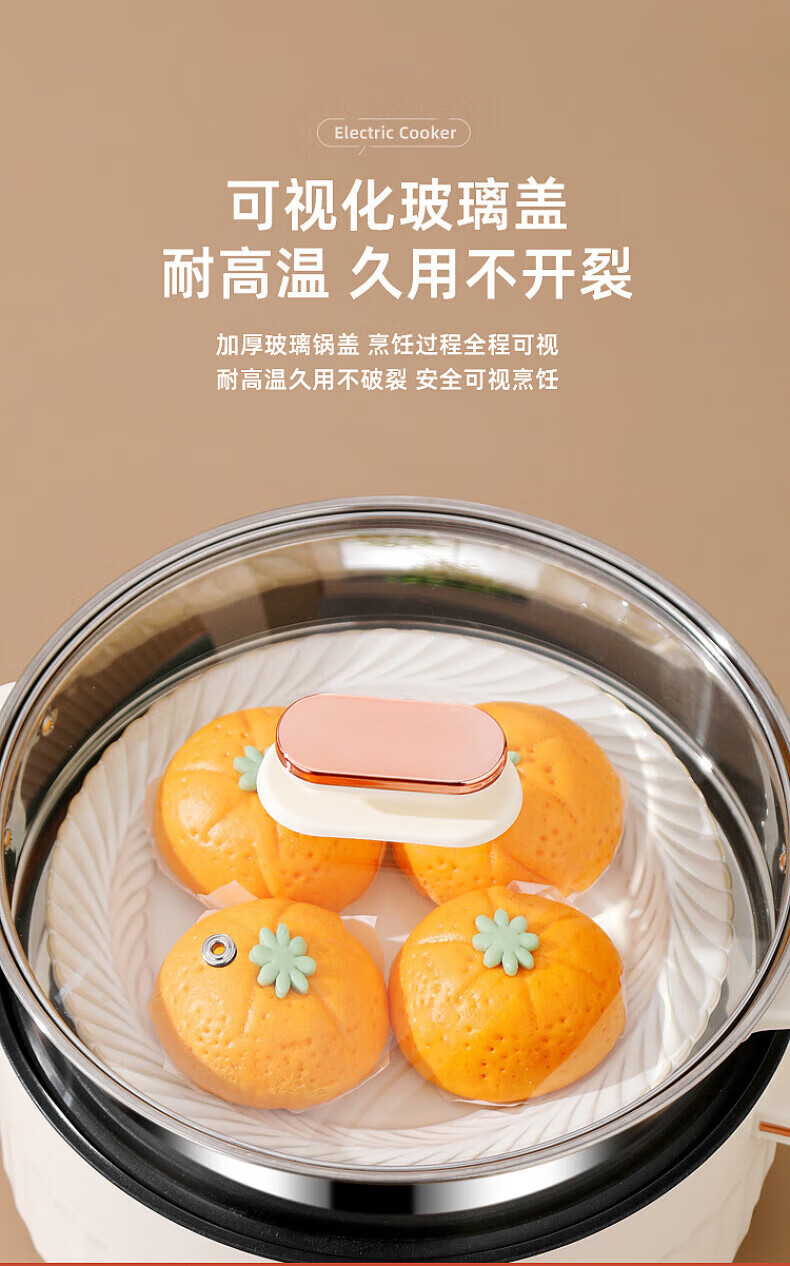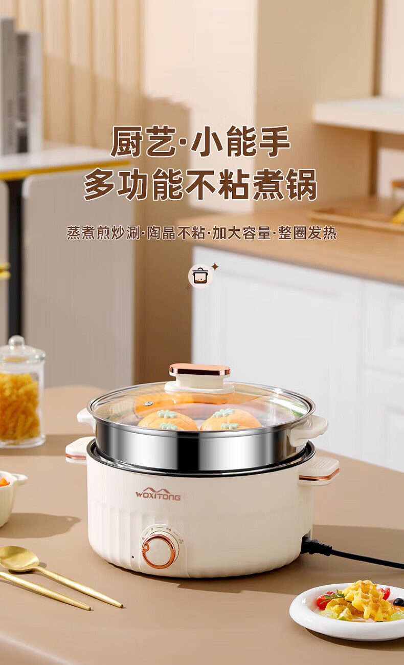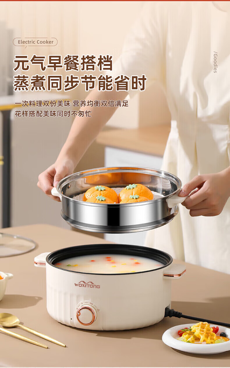 德国高端电蒸锅炖蒸煮一体自动断电多功能蒸煮煎炒一体小电锅宿舍 卡其色2.0L[适合1人用]
