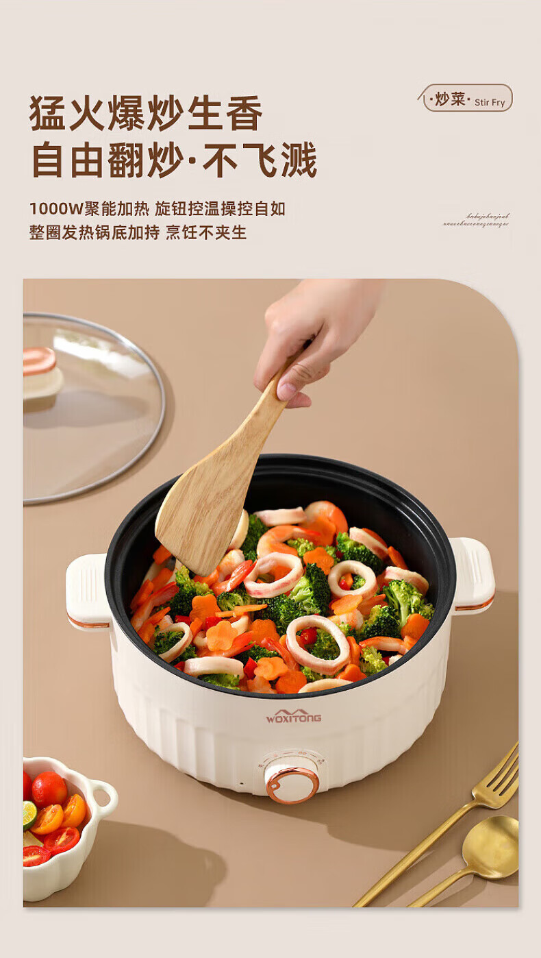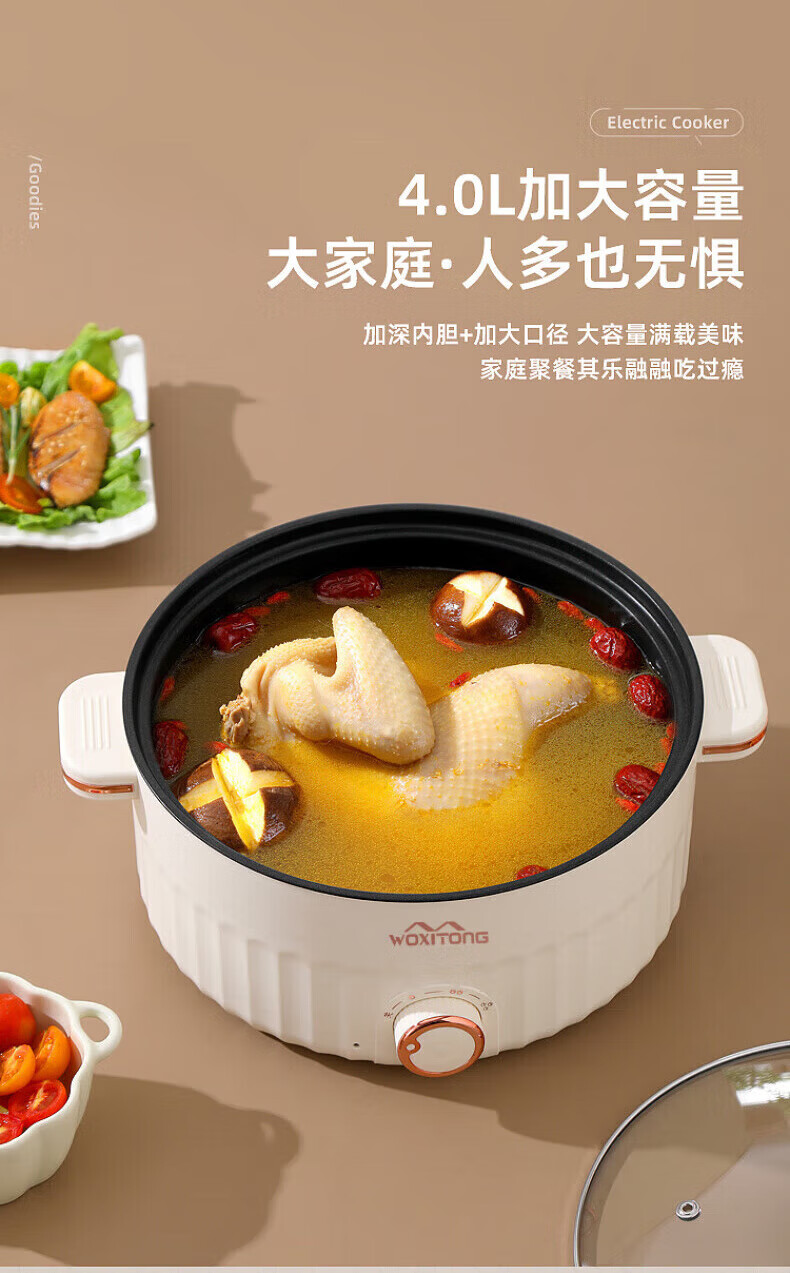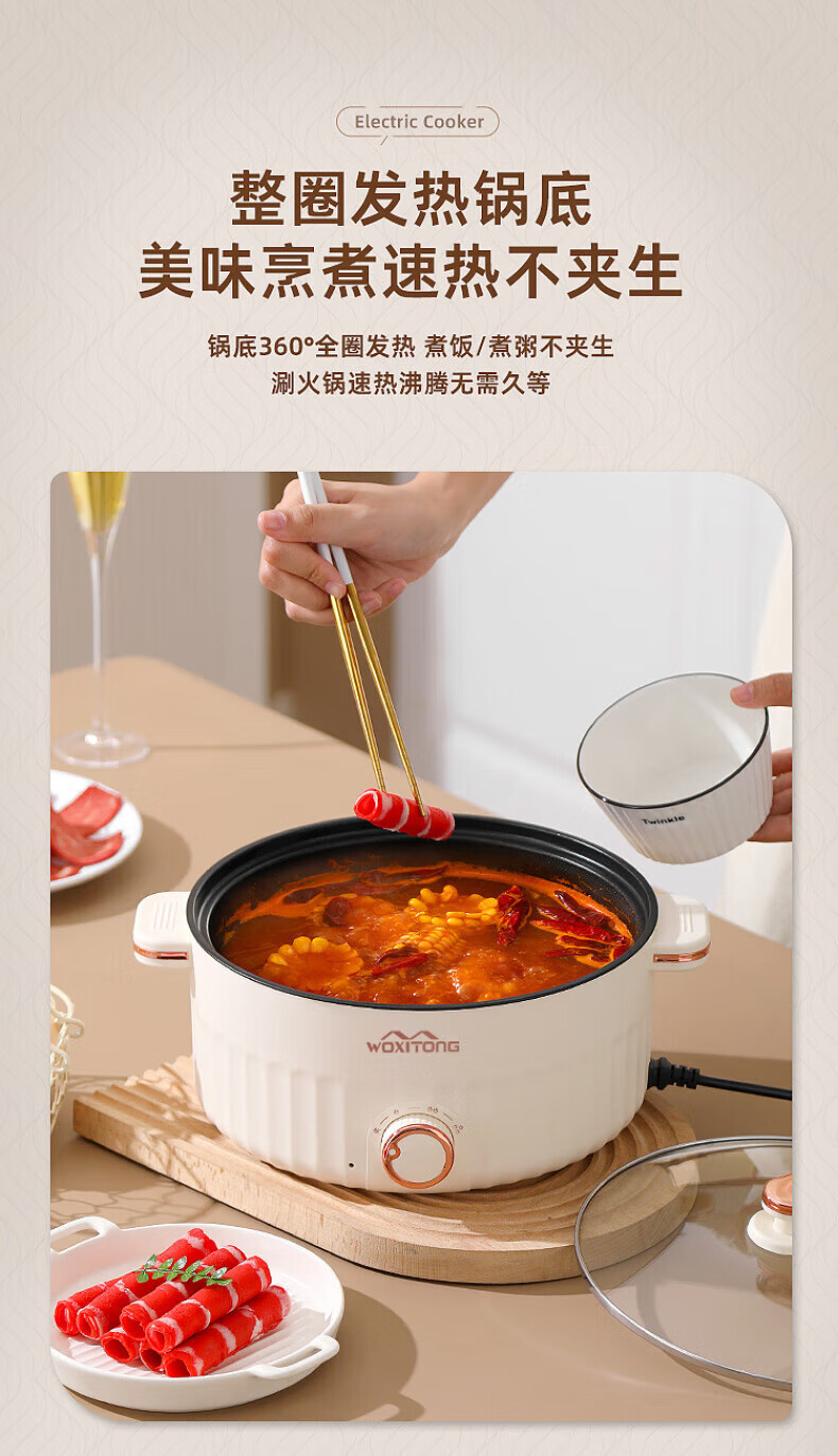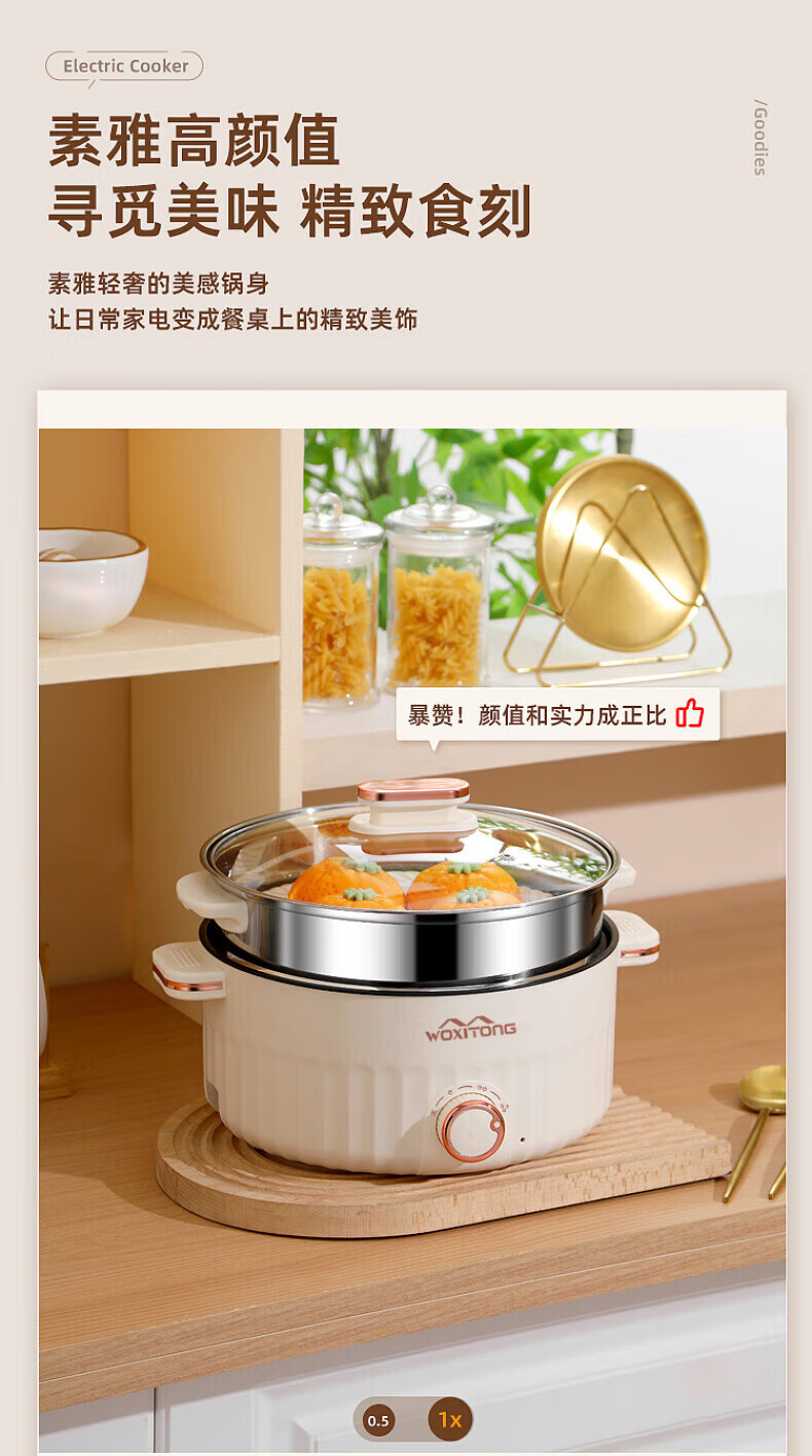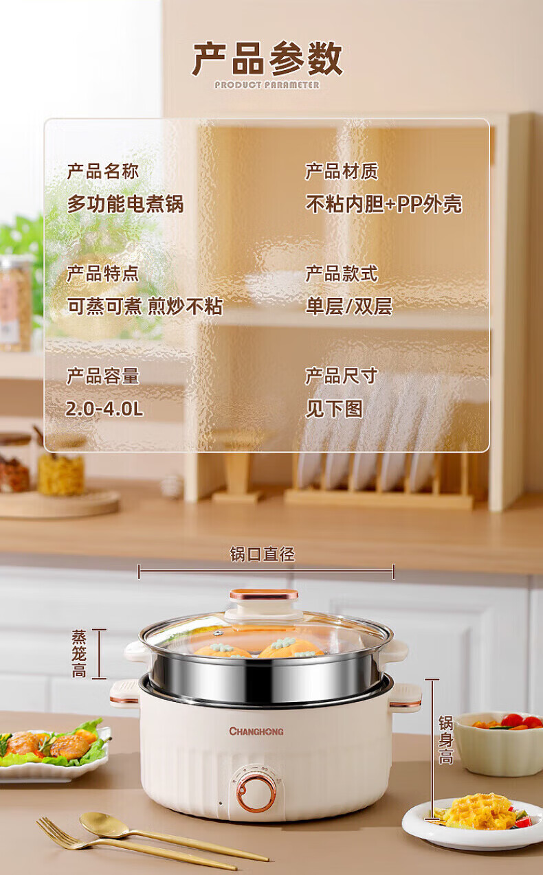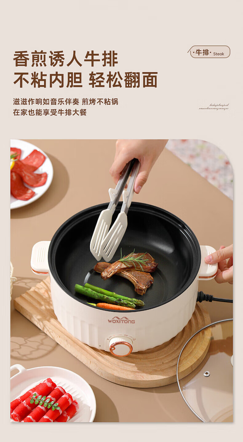德国高端电蒸锅炖蒸煮一体自动断电多功能蒸煮煎炒一体小电锅宿舍 卡其色2.0L[适合1人用]