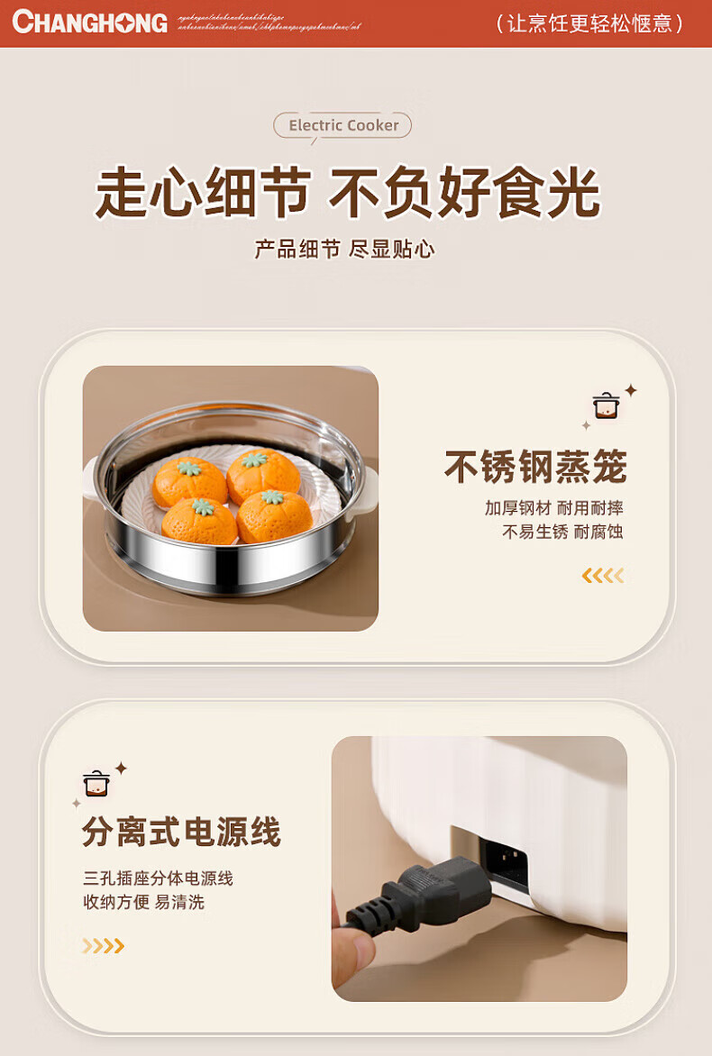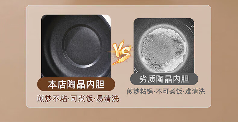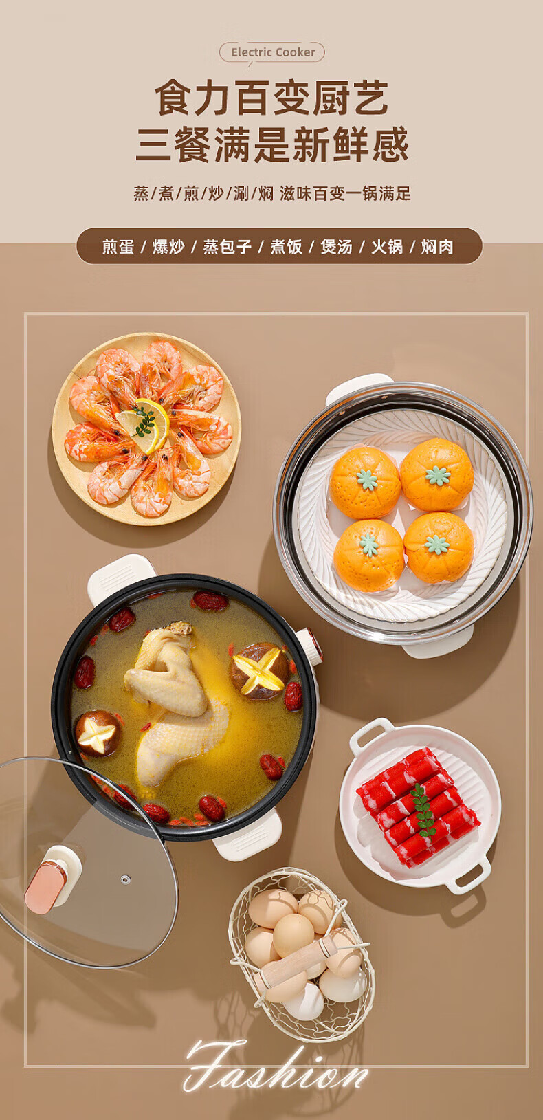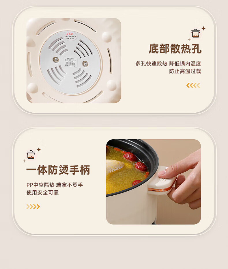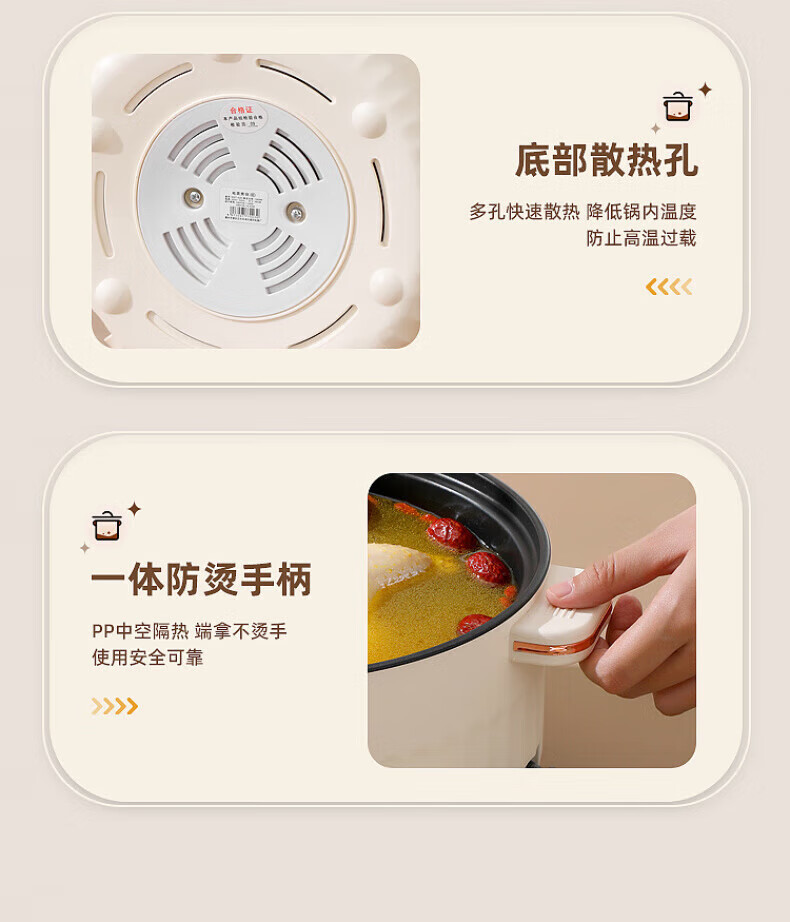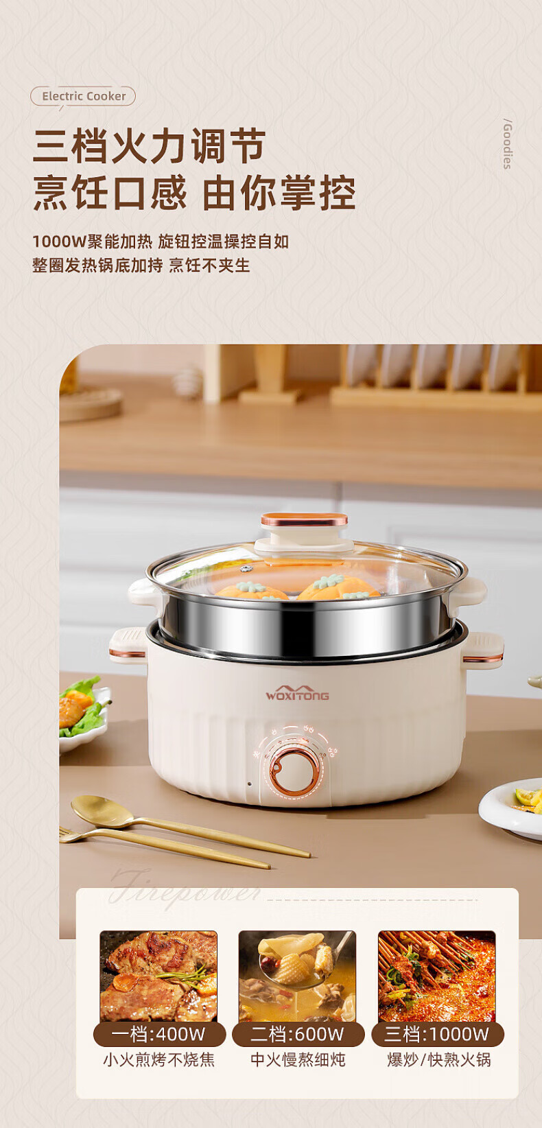 德国高端电蒸锅炖蒸煮一体自动断电多功能蒸煮煎炒一体小电锅宿舍 卡其色2.0L[适合1人用]