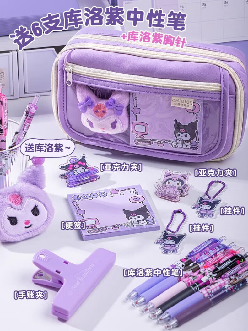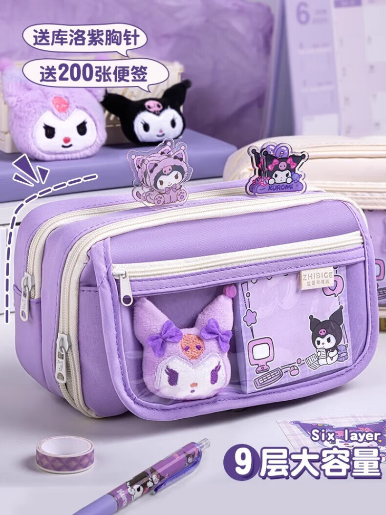 DEATKN德国库洛米笔袋大容量多层分隔小学生女孩版文具盒高颜值2025新款儿童可爱铅笔袋高初中女生超火 千人购买【80%选择】紫色-送玩偶+吊坠+磁力夹+