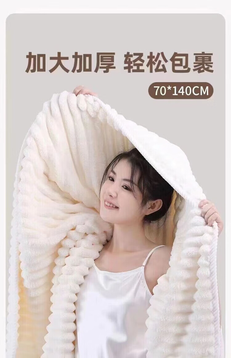珊瑚绒糖果浴巾女男加厚245g可穿可裹成人巨吸水X 【蓝色】糖果条浴巾245g 70*140cm