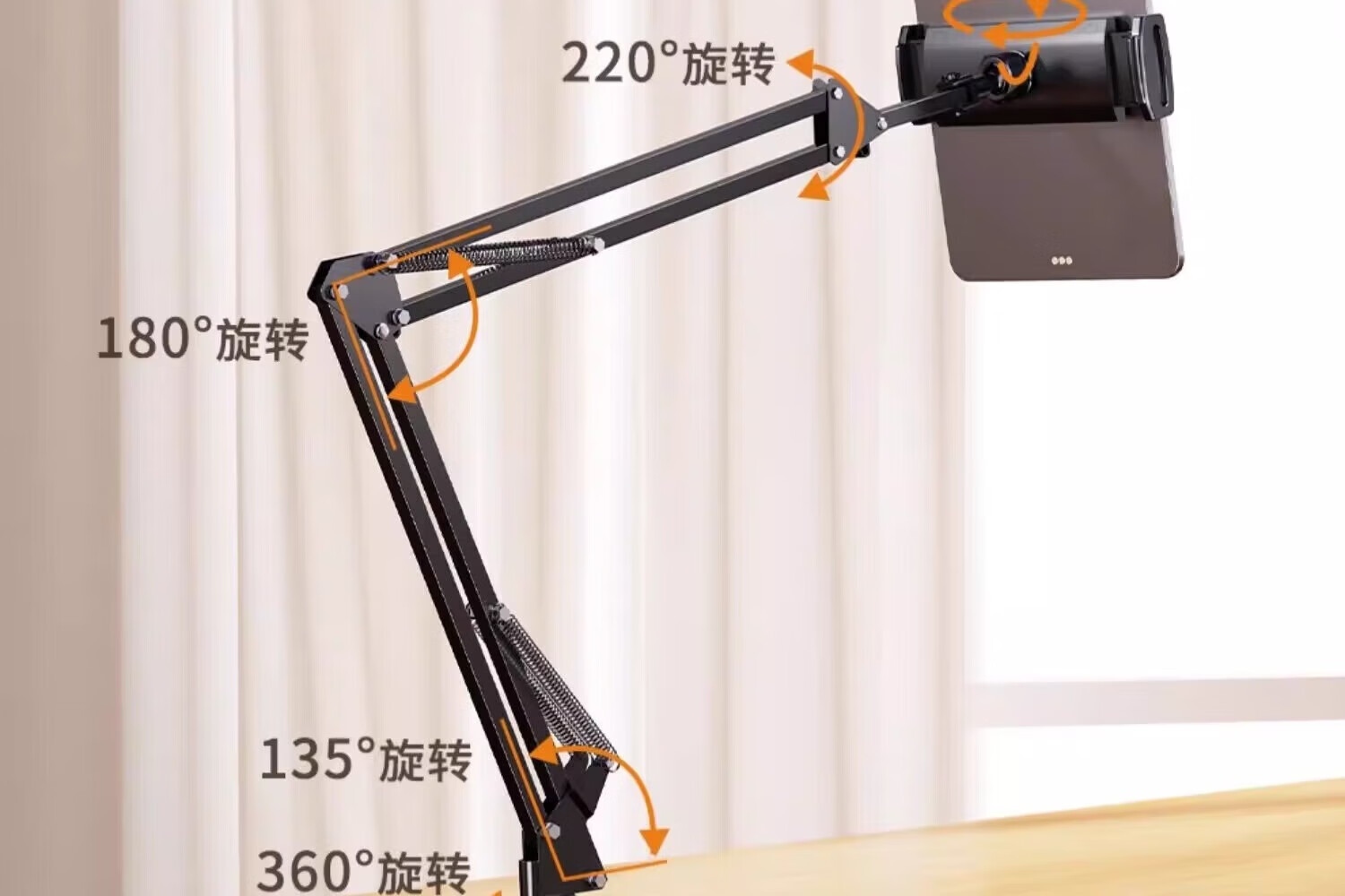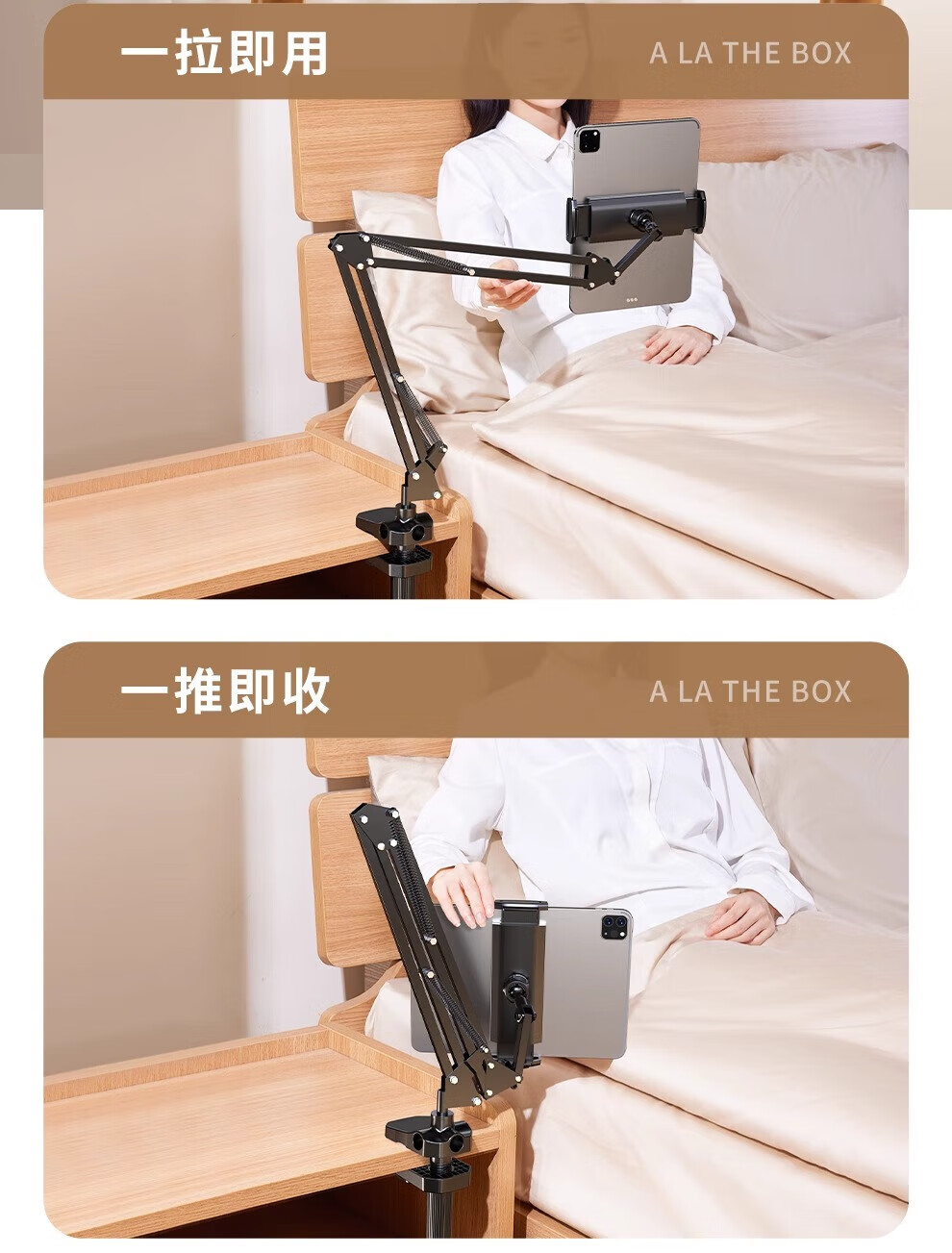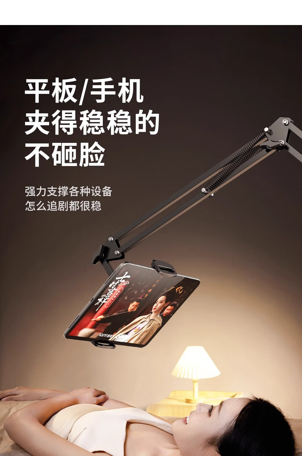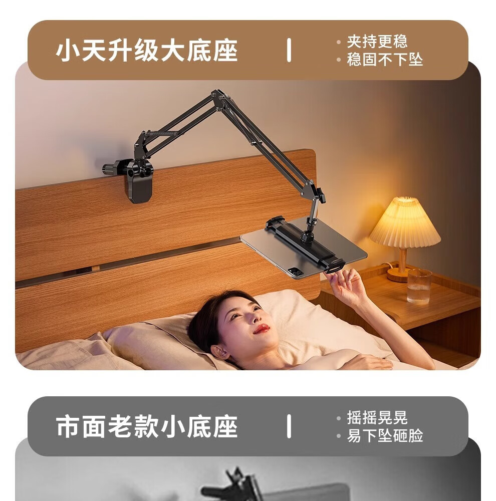 小天手机支架床头懒人平板支架床上专用桌面旋转悬臂ipad支撑架电脑宿舍躺着看追剧神器万能通用夹子 1米加长款【手机专用】角度更多