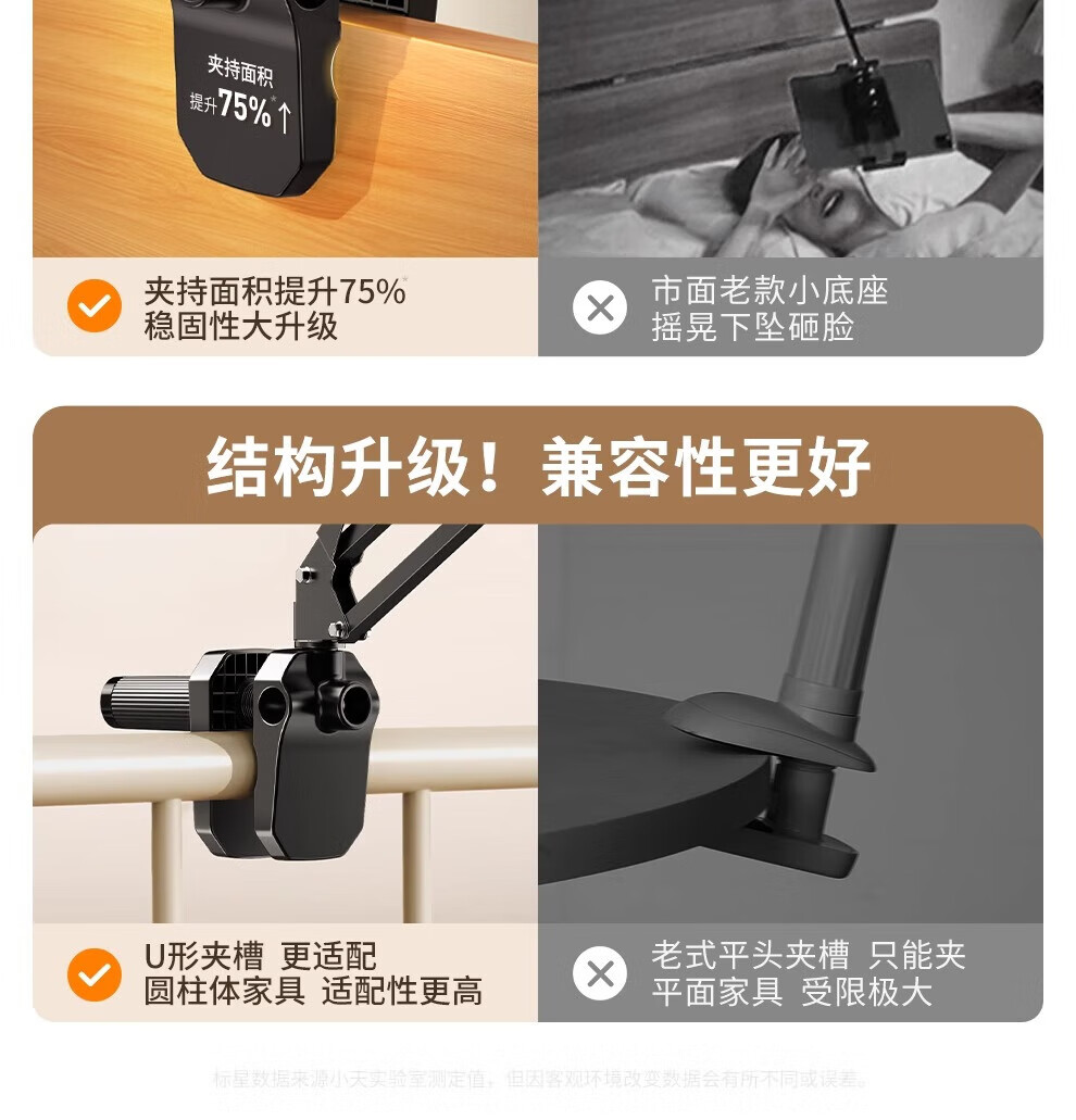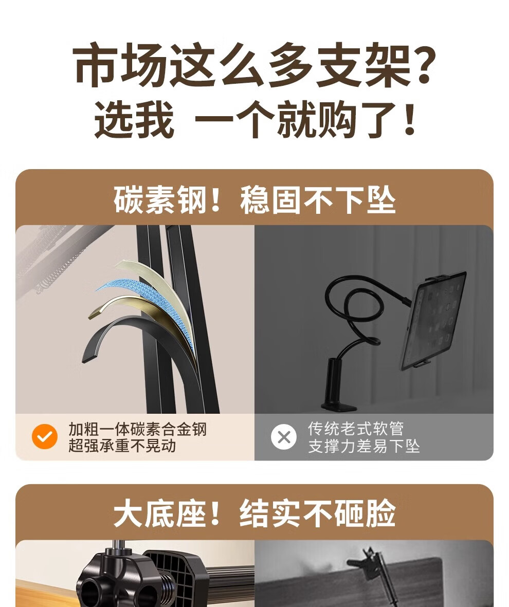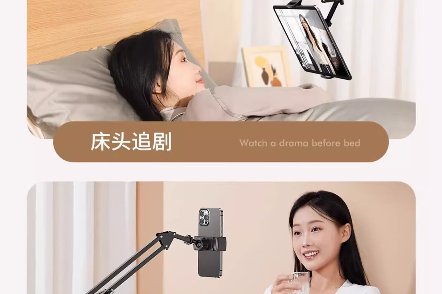 小天手机支架床头懒人平板支架床上专用桌面旋转悬臂ipad支撑架电脑宿舍躺着看追剧神器万能通用夹子 1米加长款【手机专用】角度更多