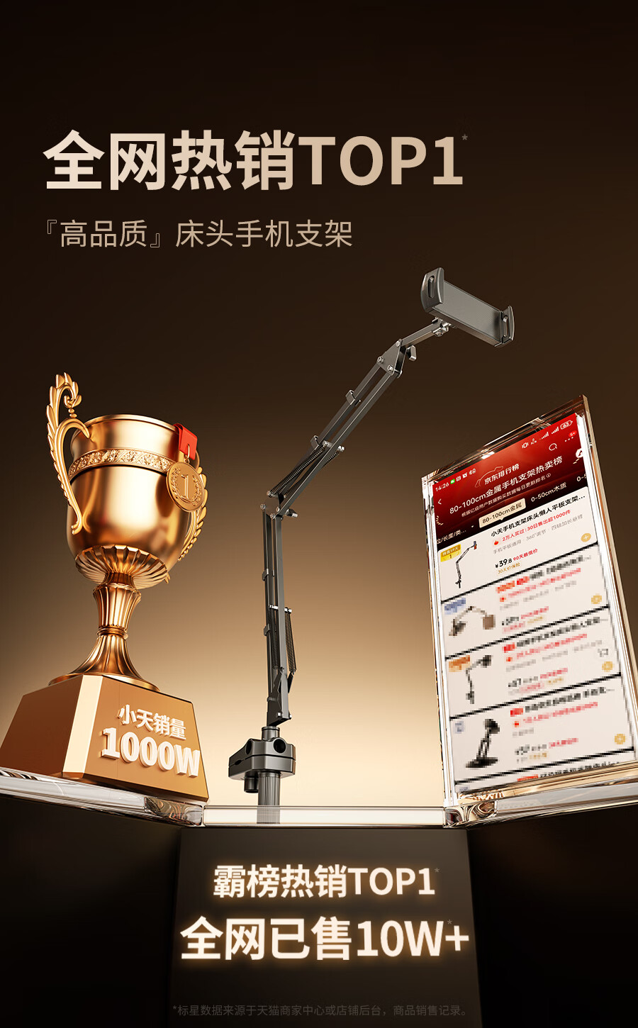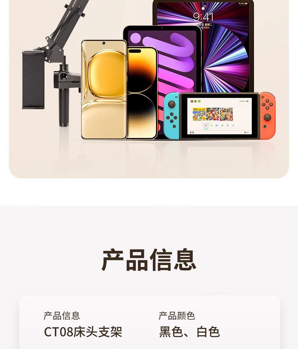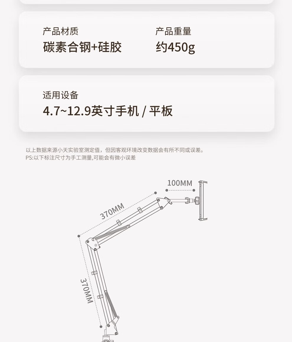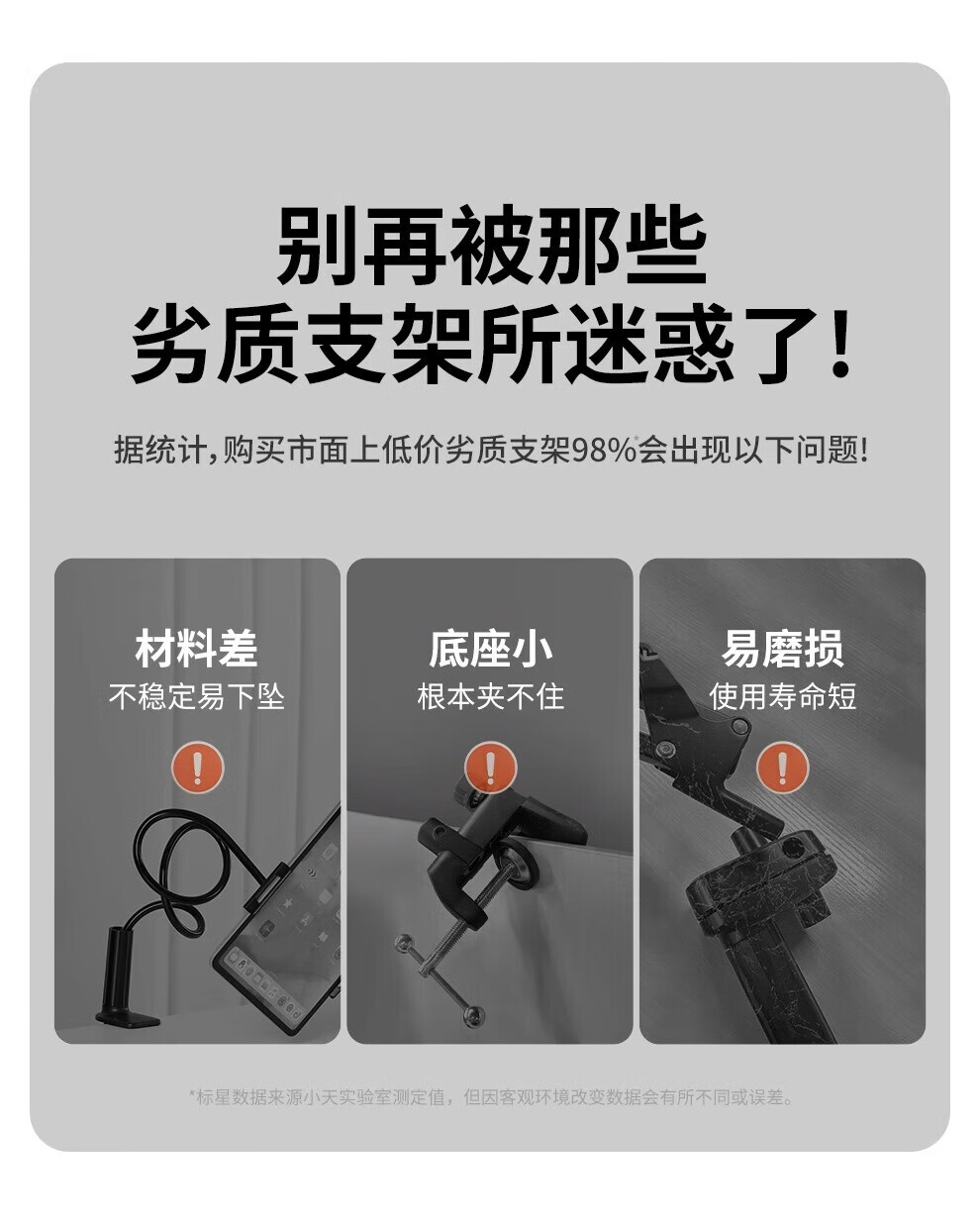 小天手机支架床头懒人平板支架床上专用桌面旋转悬臂ipad支撑架电脑宿舍躺着看追剧神器万能通用夹子 1米加长款【手机专用】角度更多