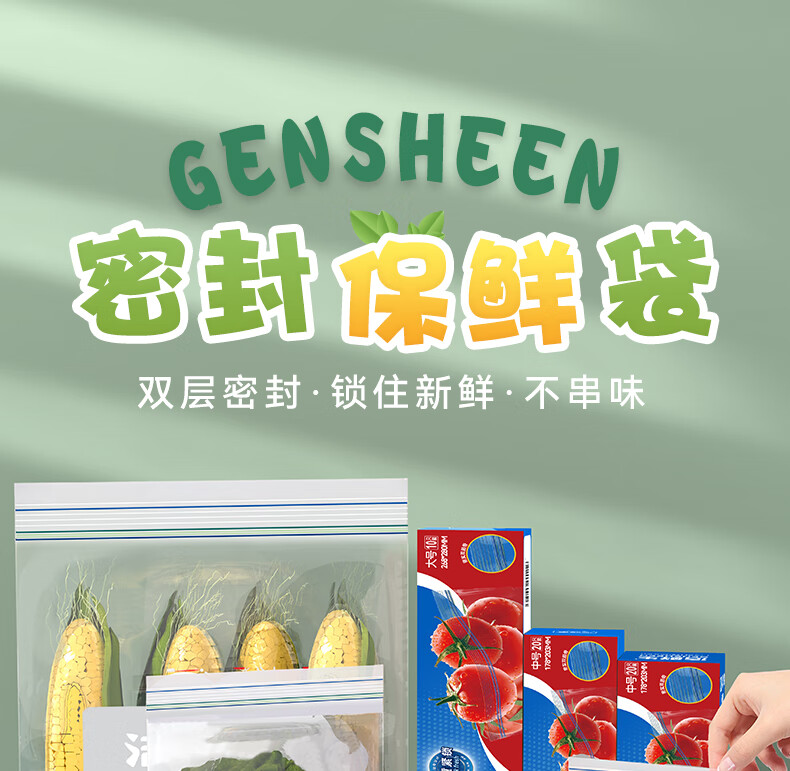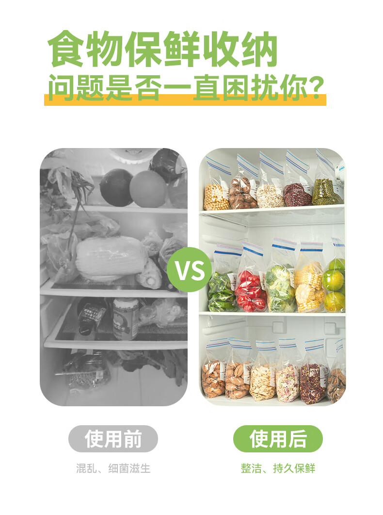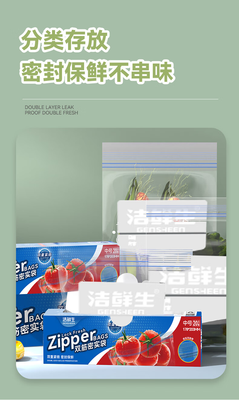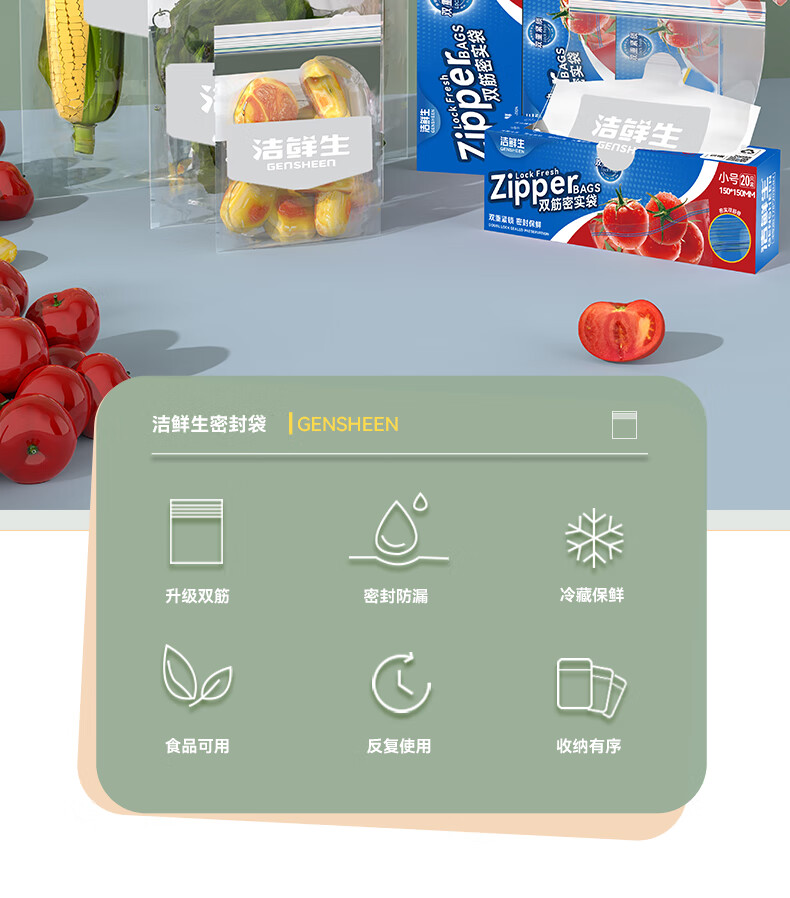 洁鲜生双筋密封袋食品级收纳袋保鲜储物辅食分装袋自封袋子塑料袋密实袋 大中小各2盒共100只