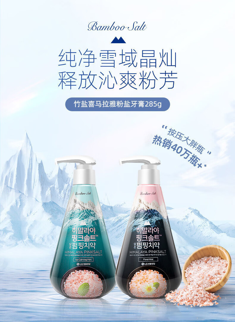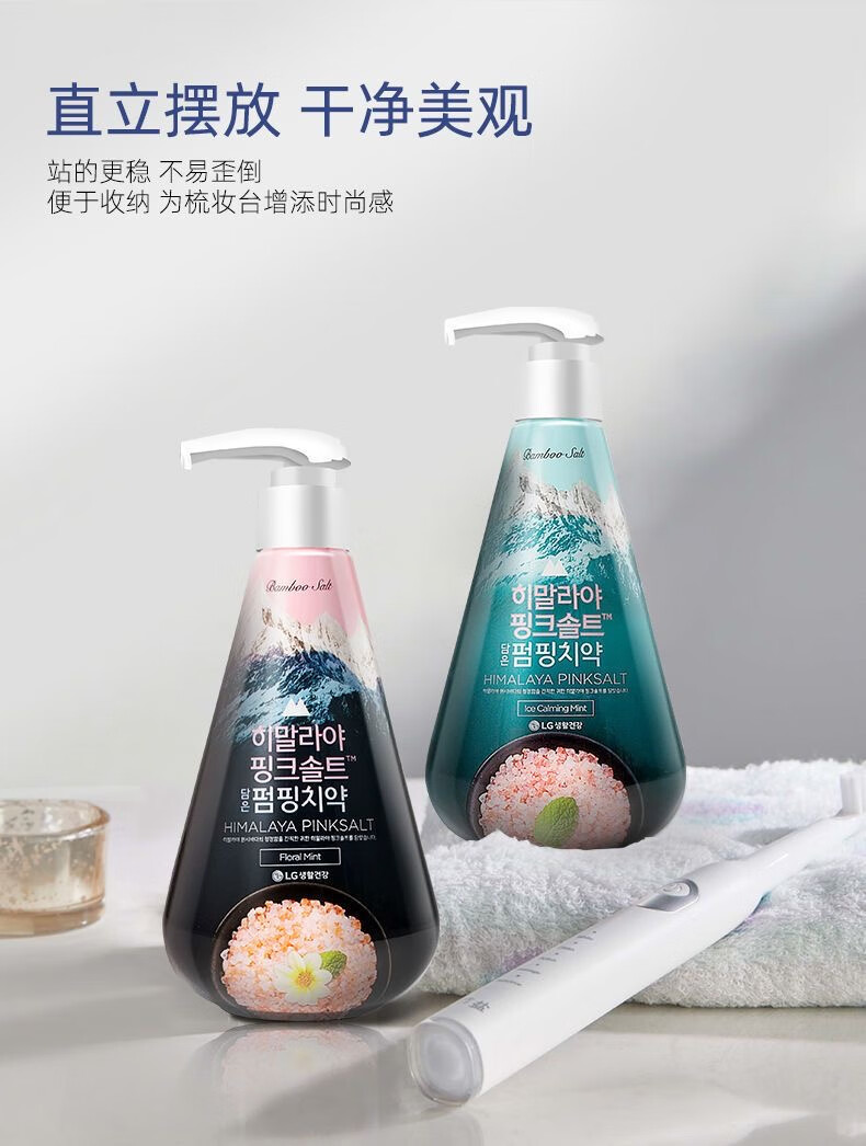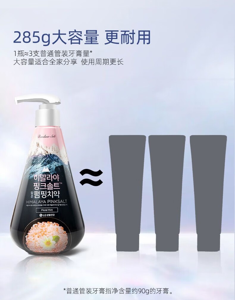 竹盐LG进口派缤按压式护龈牙膏285g(冰澈薄荷)清新口气【临期清仓】