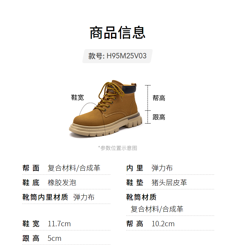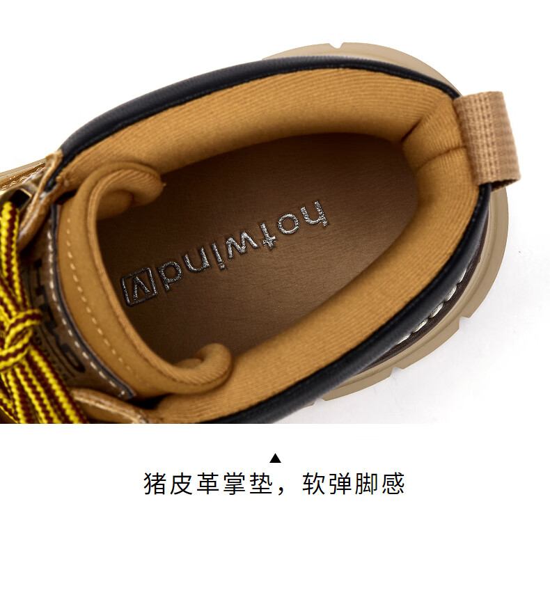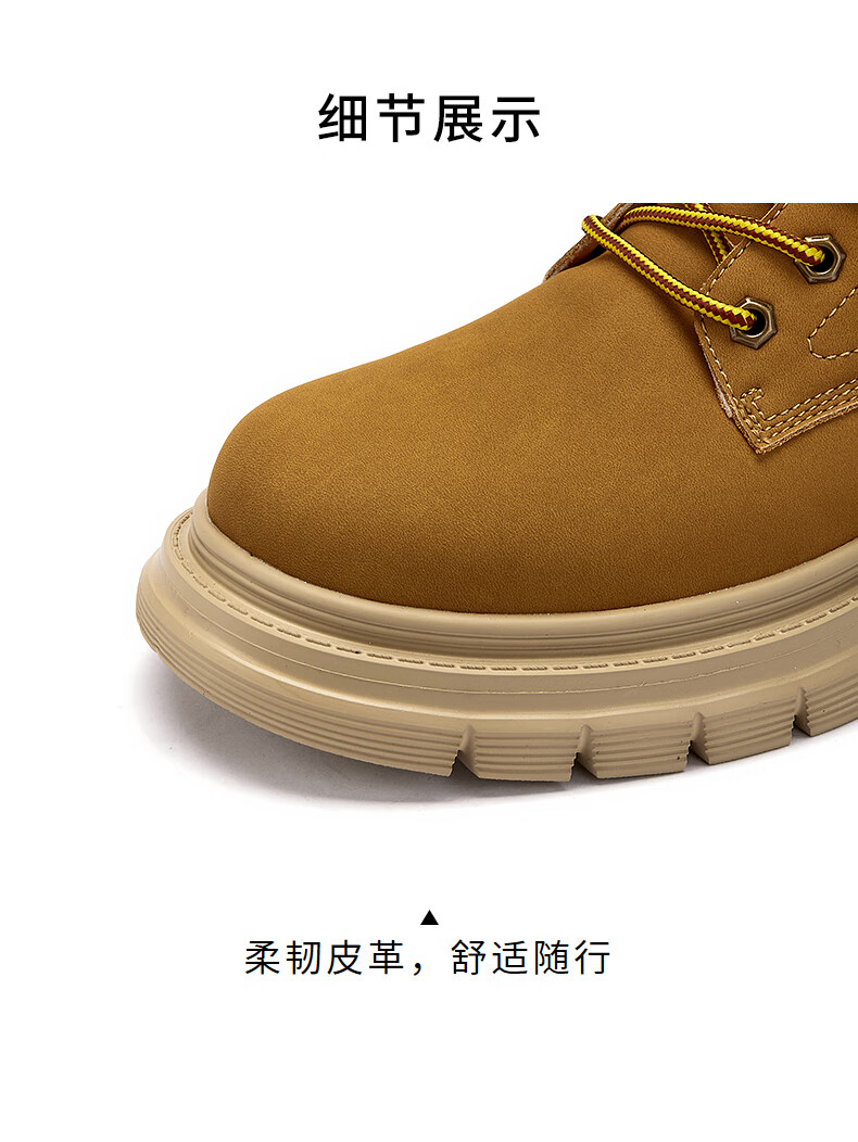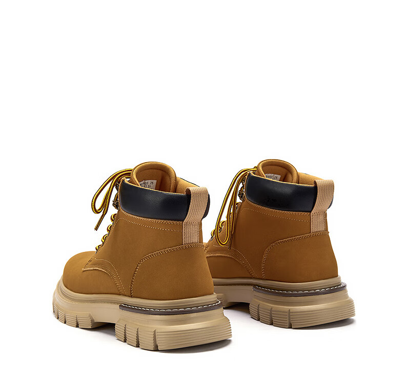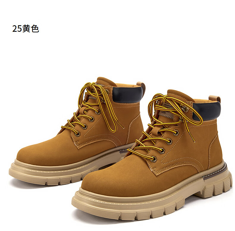 热风男鞋2025年冬季新款厚底大黄靴百搭马丁靴休闲靴子男款鞋子 25黄色 38