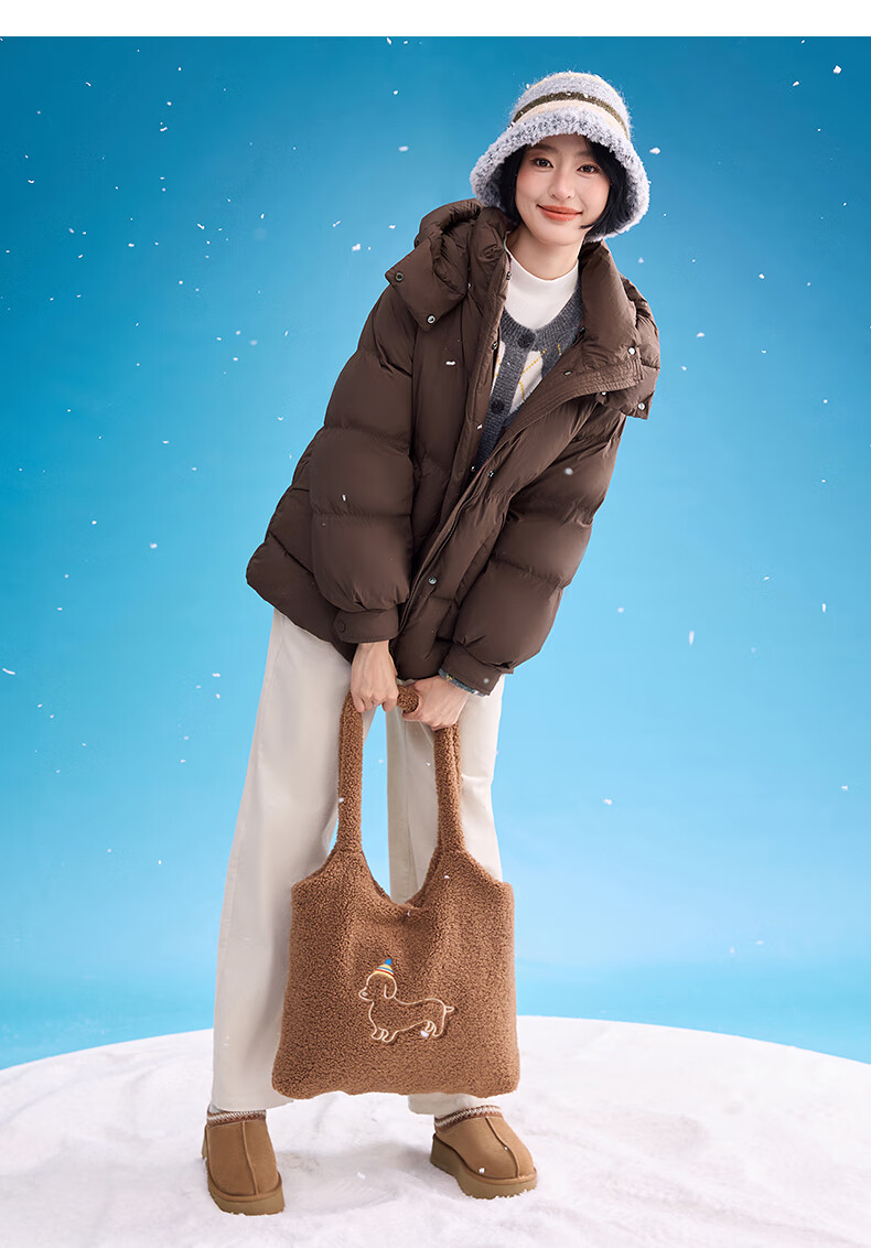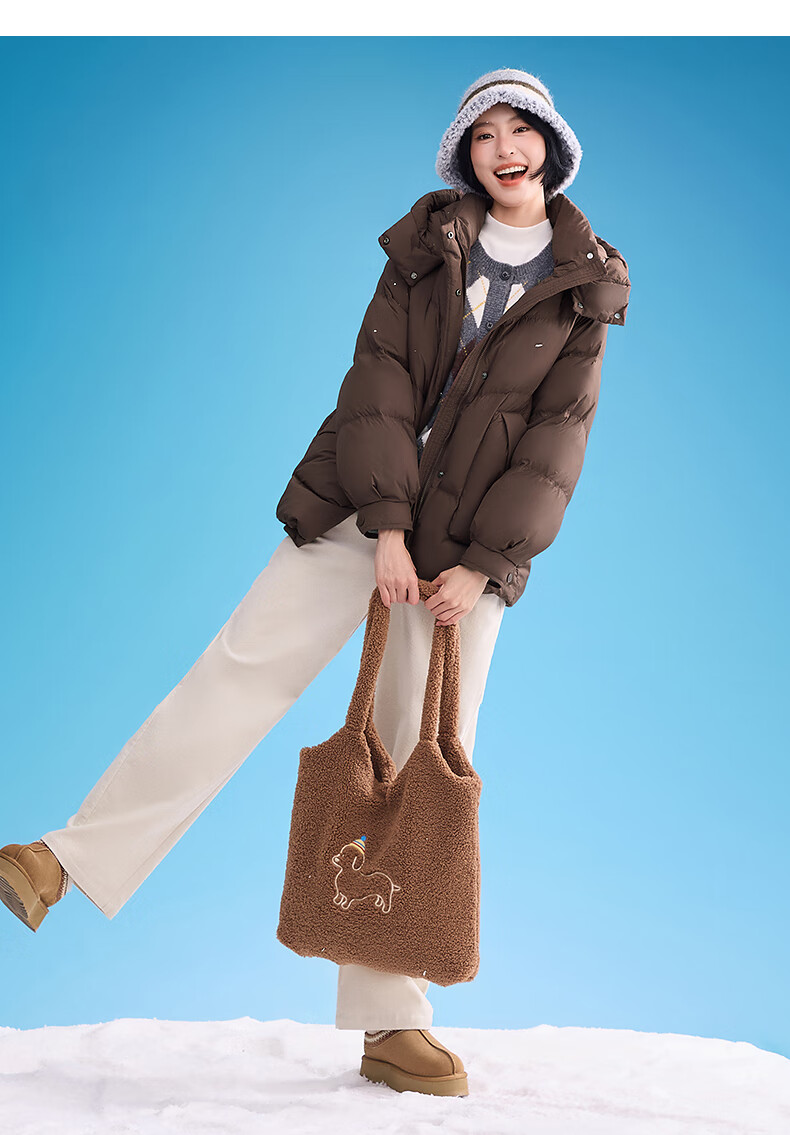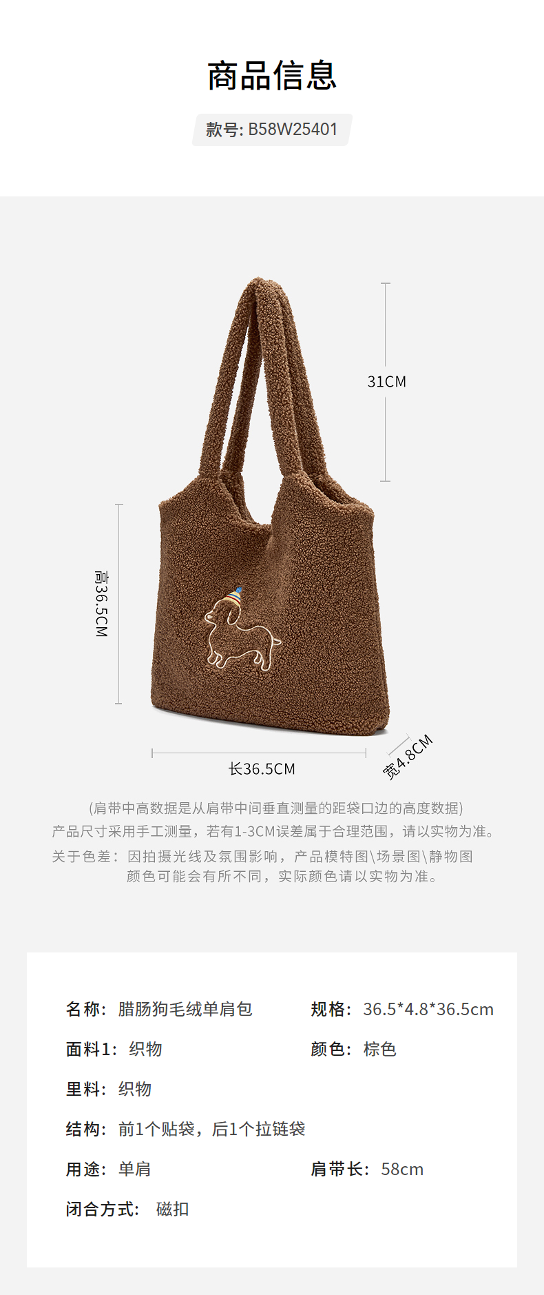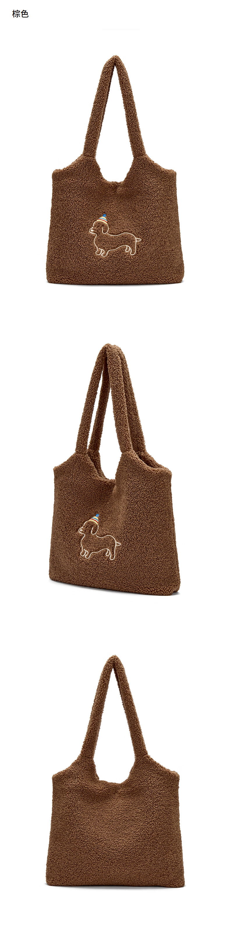 热风(Hotwind)【商场同款】女包2025年冬季新款休闲简约风腊肠狗图案毛绒单肩包 02棕色 F