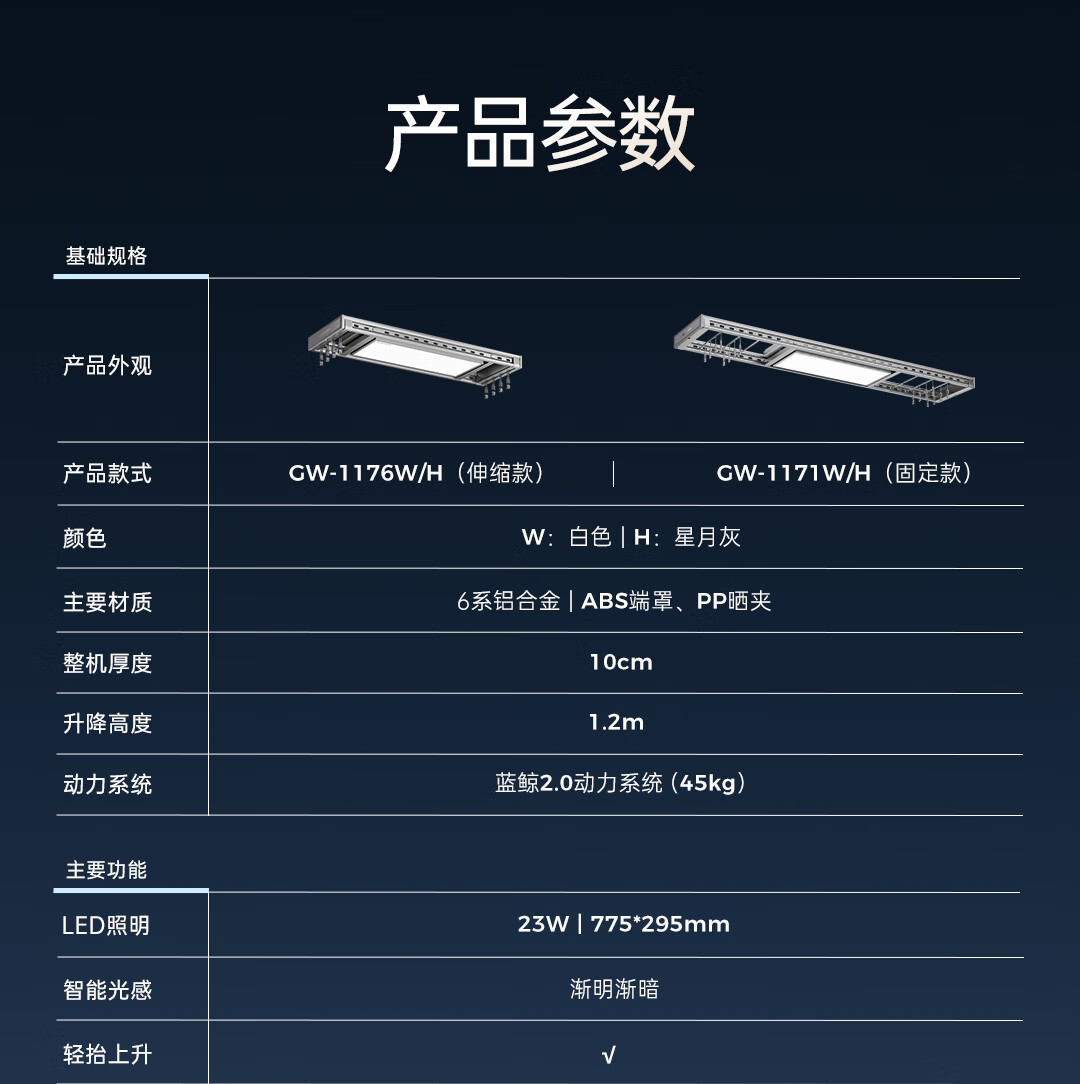 好太太电动晾衣架智能晾衣机隐形晾衣杆创新可滑动凉被杆 GW-1176H:星月灰+伸缩晾杆+语音