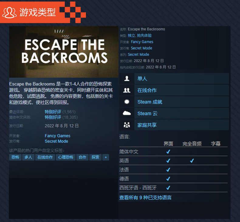 steam 逃离后室 Escape the Backrooms 国区激活码CDK PC正版游戏 标准版