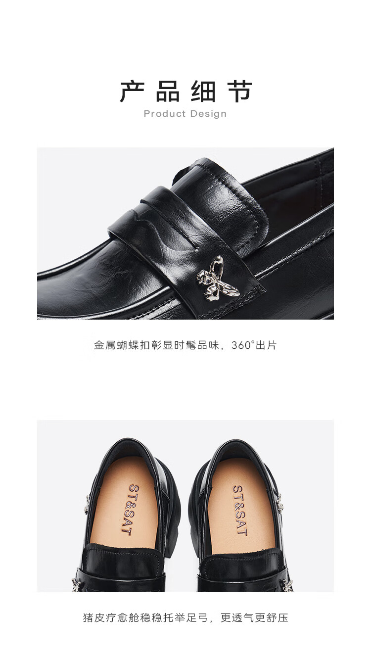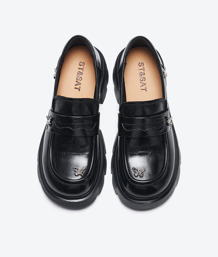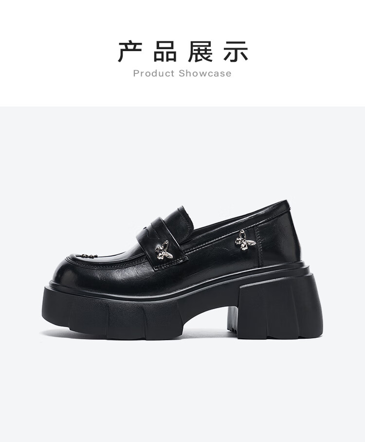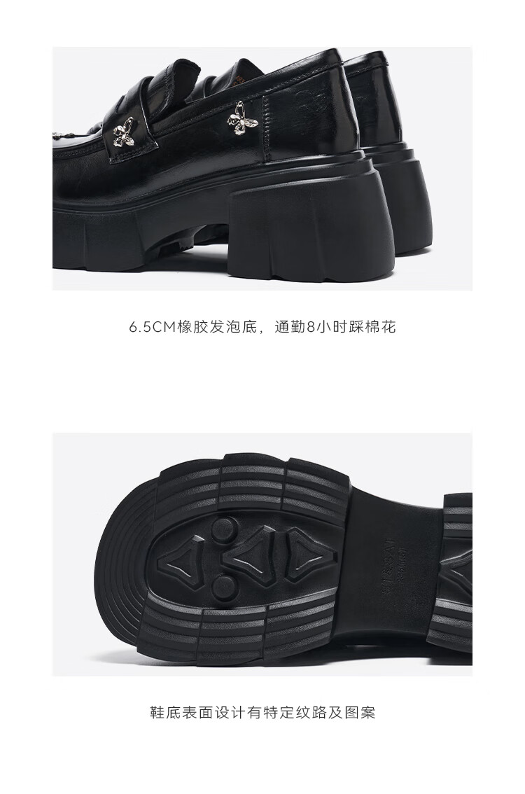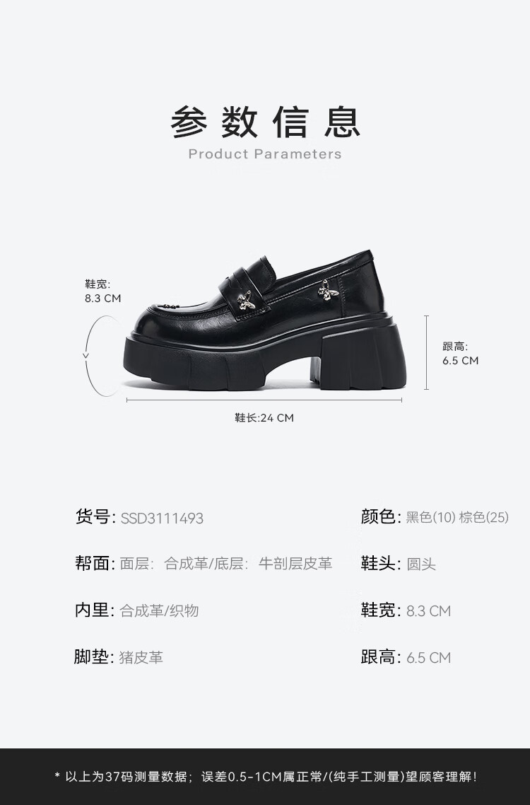 星期六高跟女乐福鞋2025秋季新款英伦风蝴蝶配饰小皮鞋SSD3111492 黑色 34
