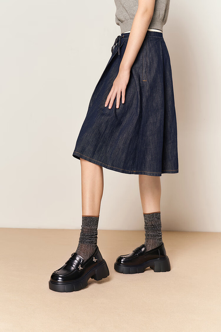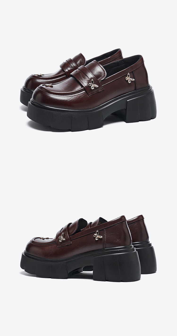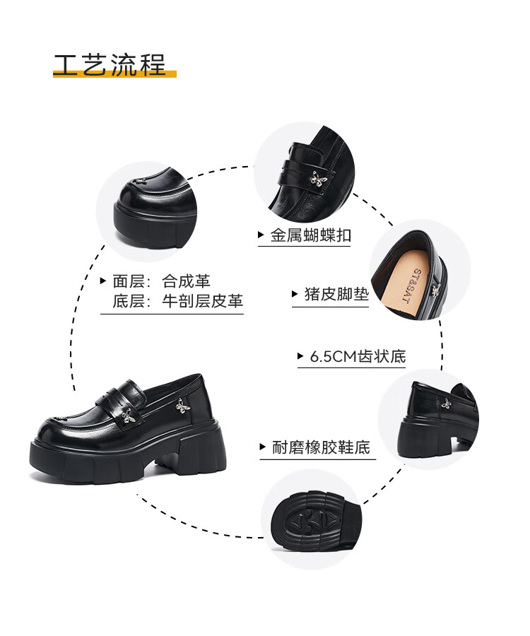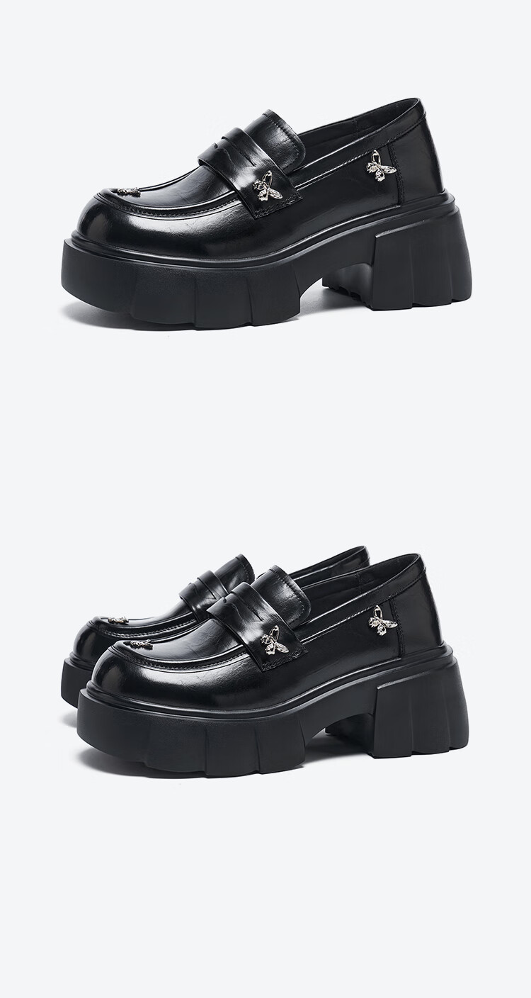 星期六高跟女乐福鞋2025秋季新款英伦风蝴蝶配饰小皮鞋SSD3111492 黑色 34