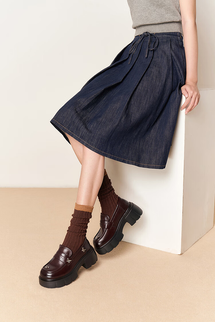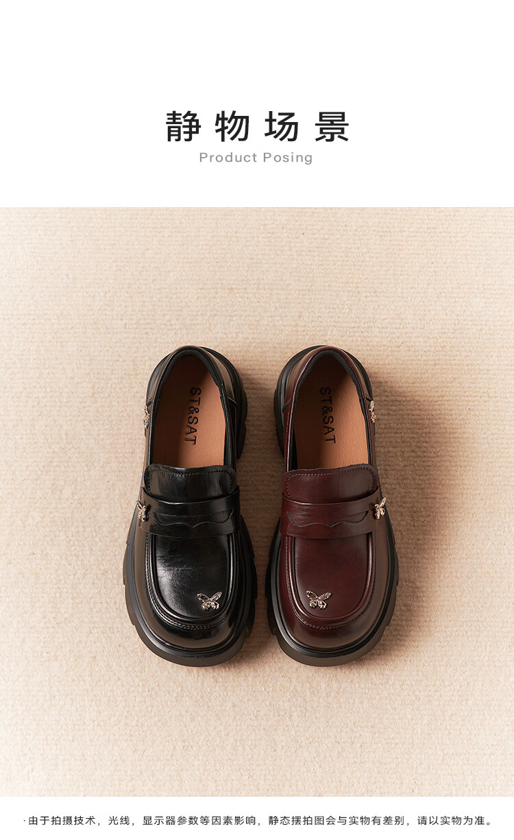 St&Sat星期六厚底简约风2025秋款休闲外出拍照增高乐福鞋SSD3111003 米白色 34