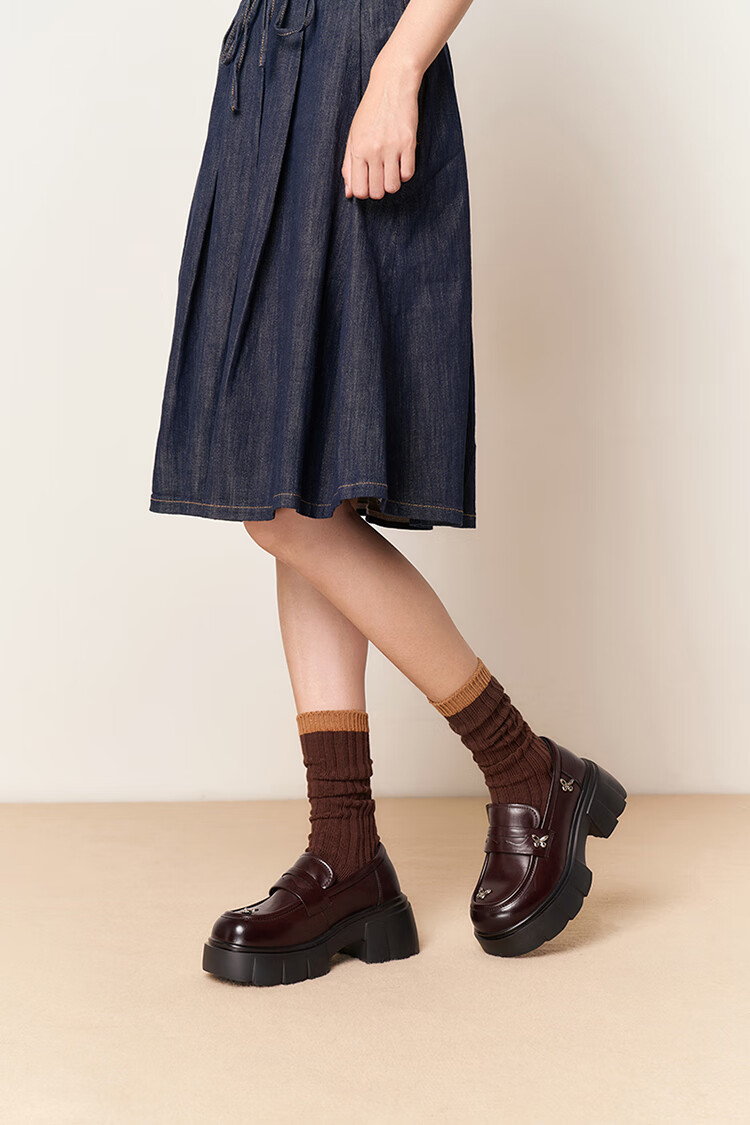 星期六学院风高跟乐福鞋女2025秋季新款大圆头粗跟皮鞋SSD3111493 黑色 34