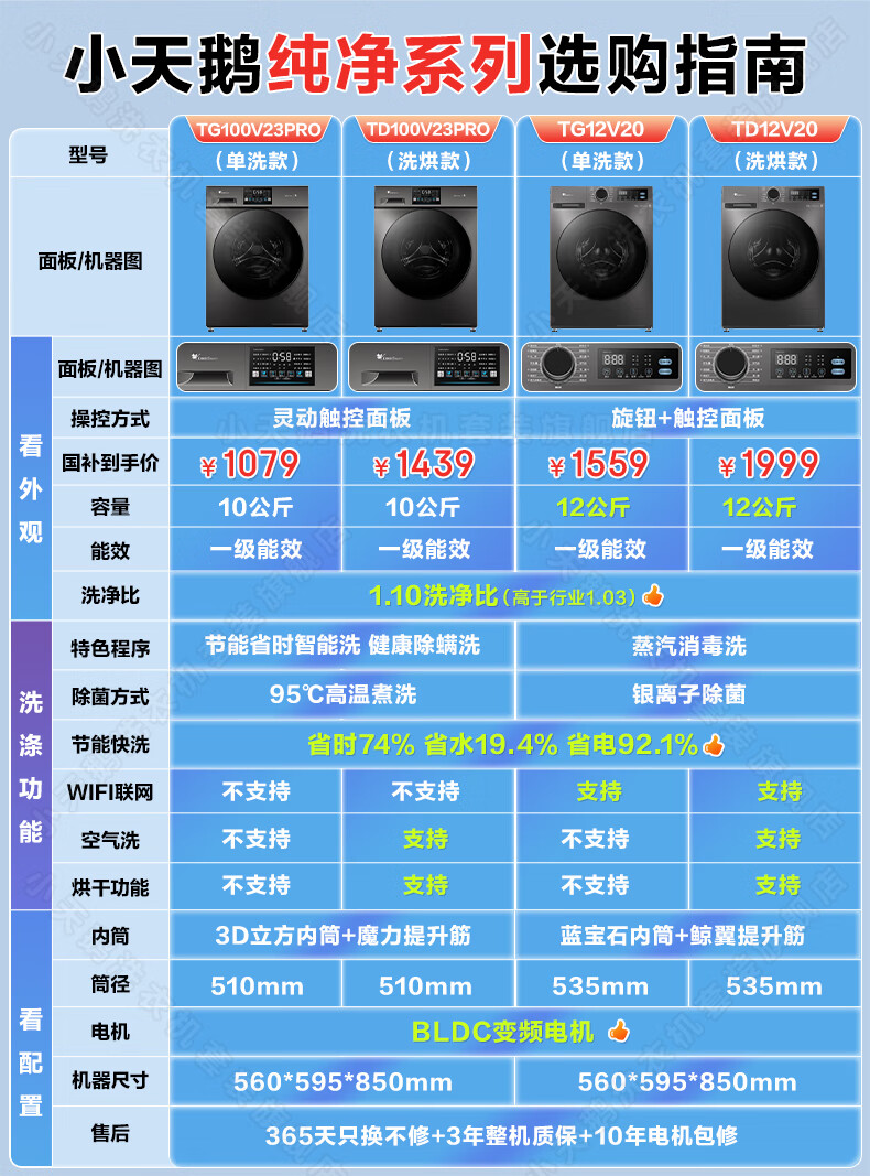 小天鹅(LittleSwan)洗衣机滚筒全自动10/12公斤大容量变频电机 1.1高洗净比 除菌除螨 超薄机身冷水洗 以旧换新 【新品V23Pro无烘干】1.1洗净比+高温煮洗