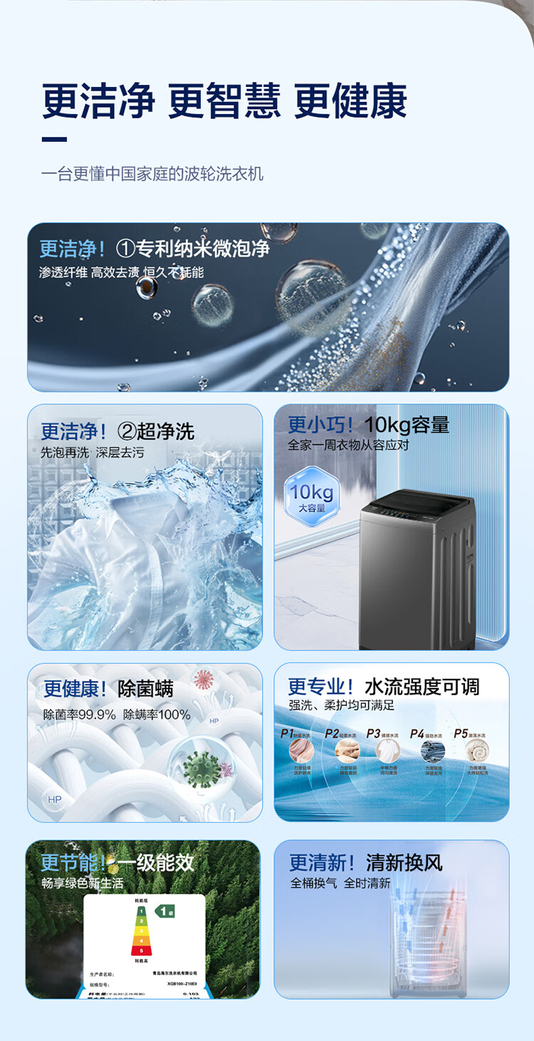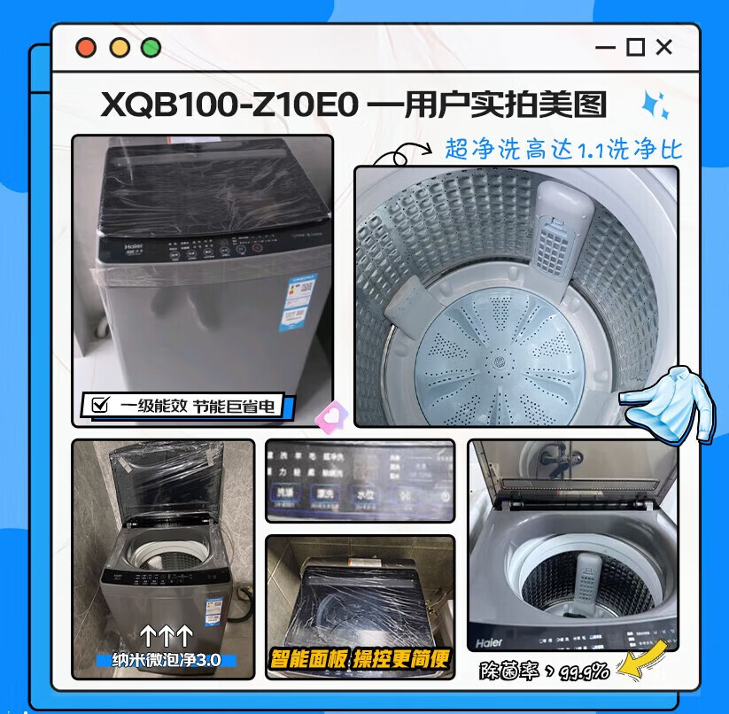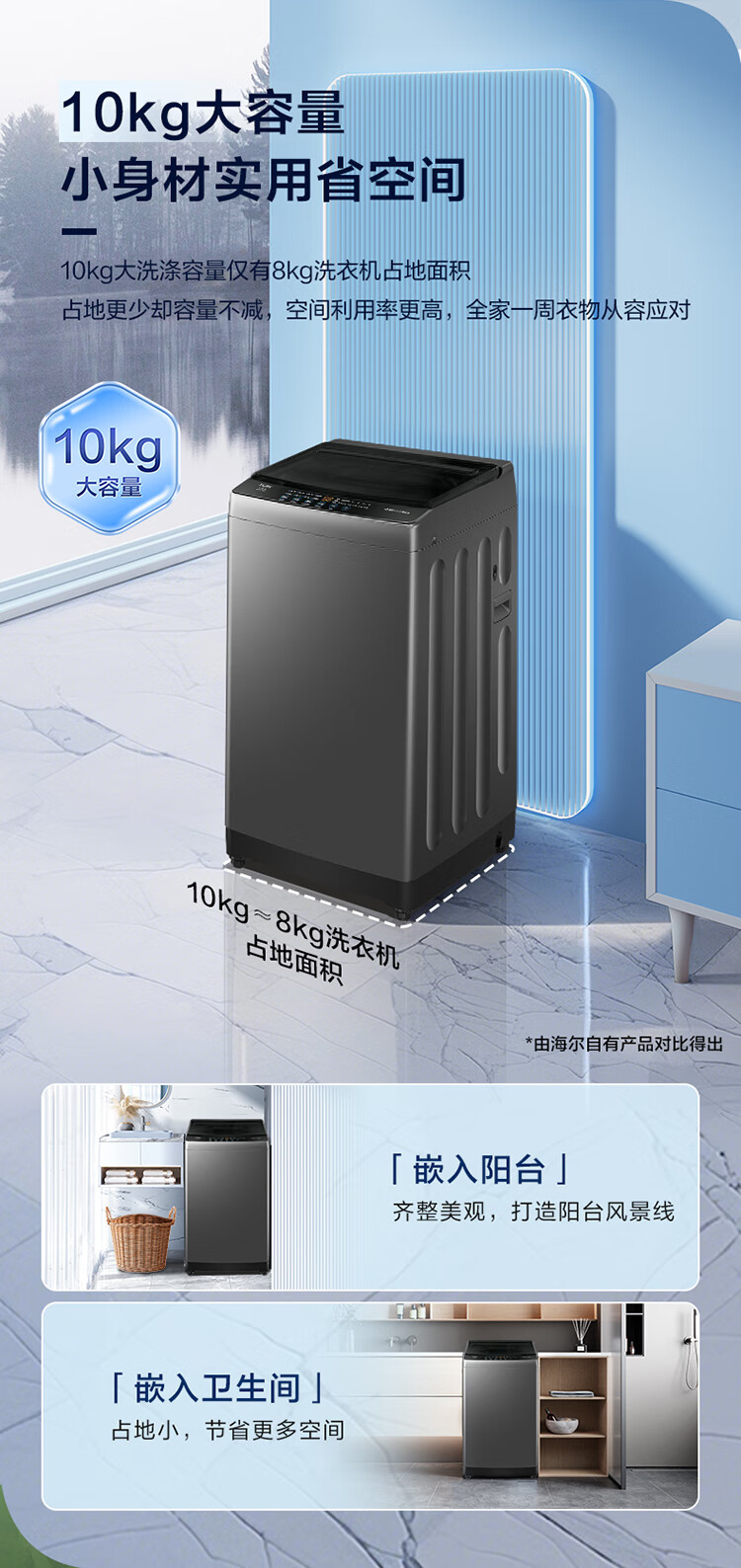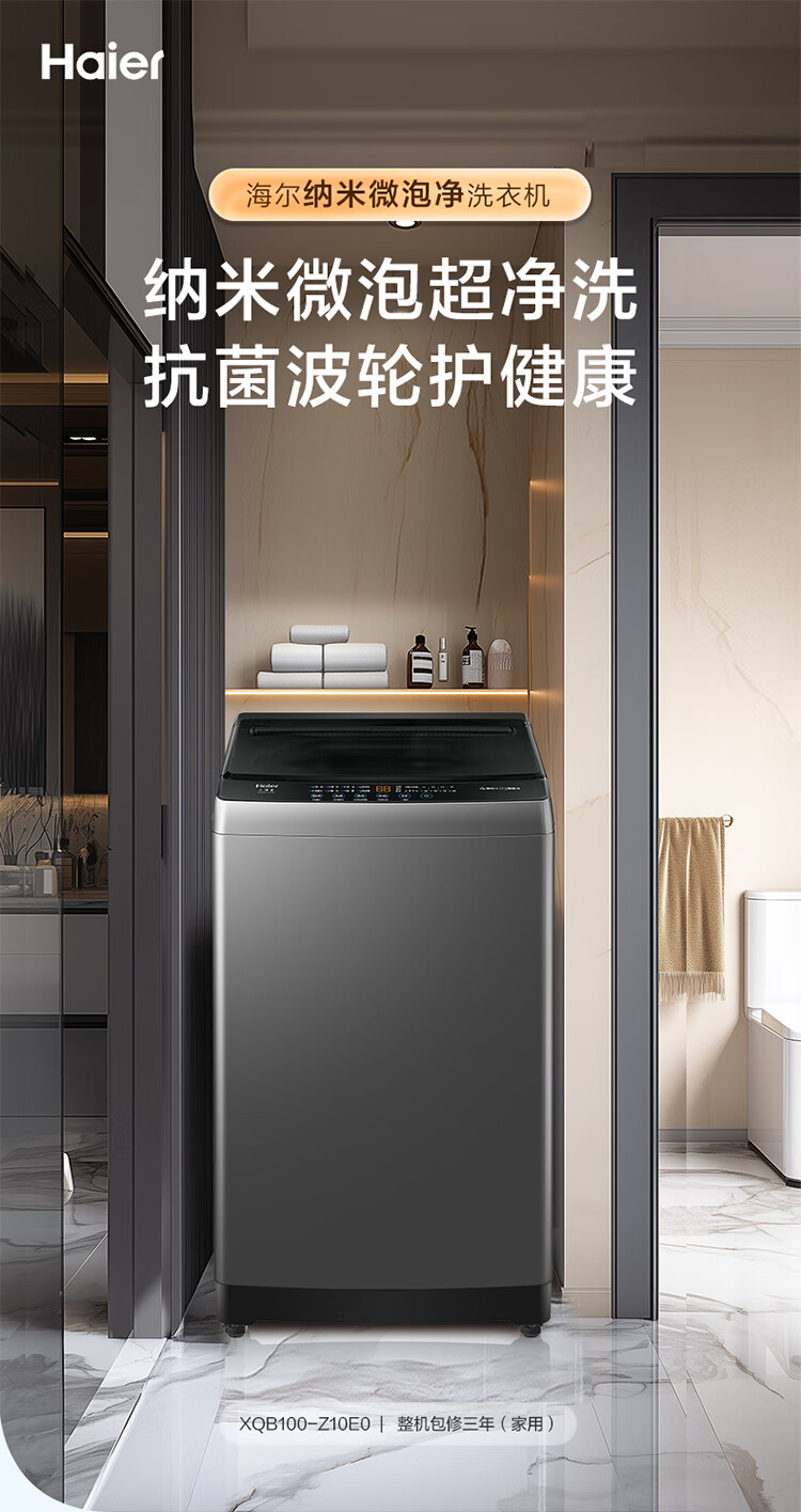 海尔(Haier)洗衣机波轮全自动 10公斤家用懒人纳米微泡净洗1.1洗净比一级能效 Z10E0租房宿舍 家电国家补贴20%