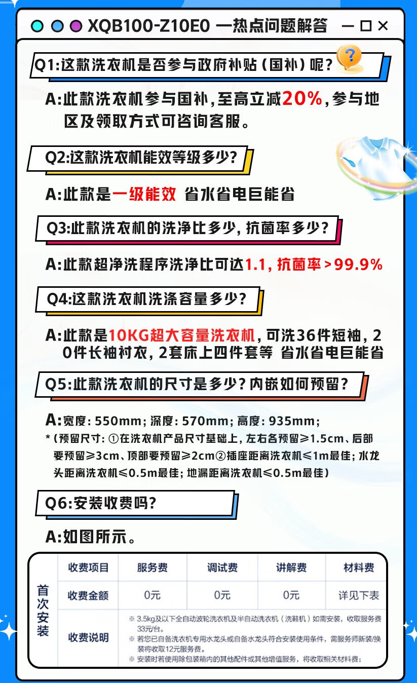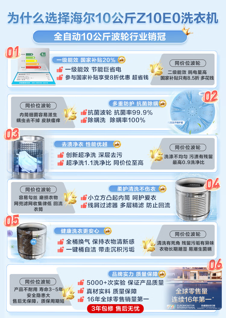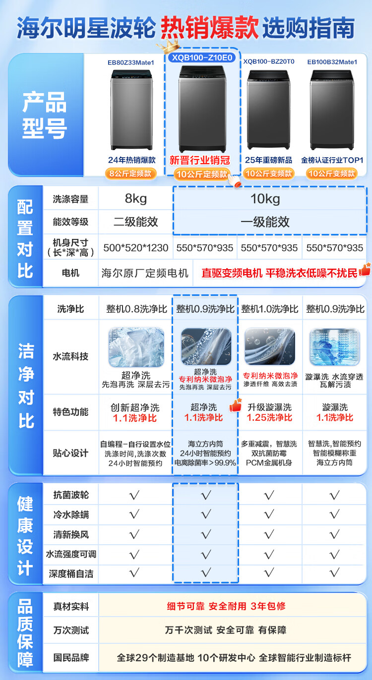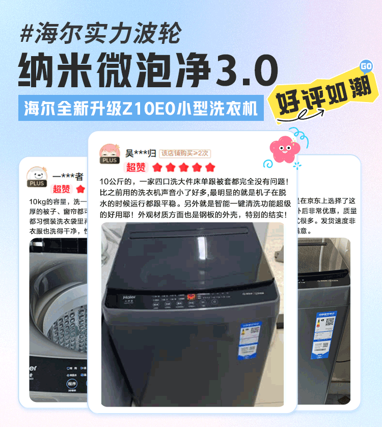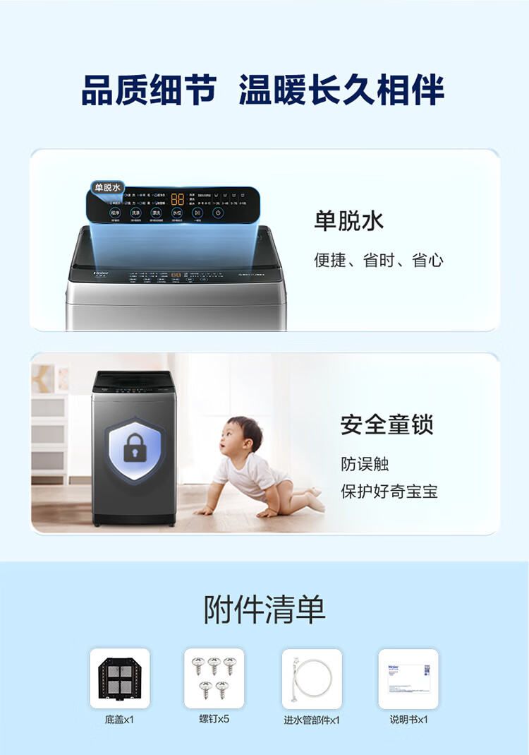 海尔(Haier)洗衣机波轮全自动 10公斤家用懒人纳米微泡净洗1.1洗净比一级能效 Z10E0租房宿舍 家电国家补贴20%
