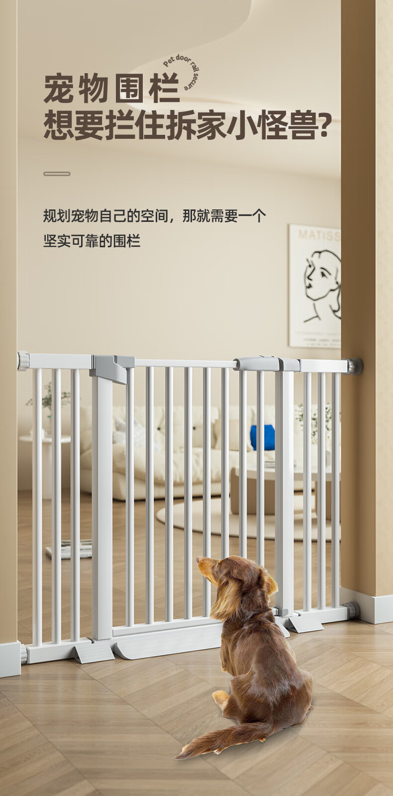 【京东快递】宠物狗狗围栏栅栏栏杆室内防挡猫门栏猫拦狗笼隔离门 【加厚加密】适用宽度76-83cm 078高