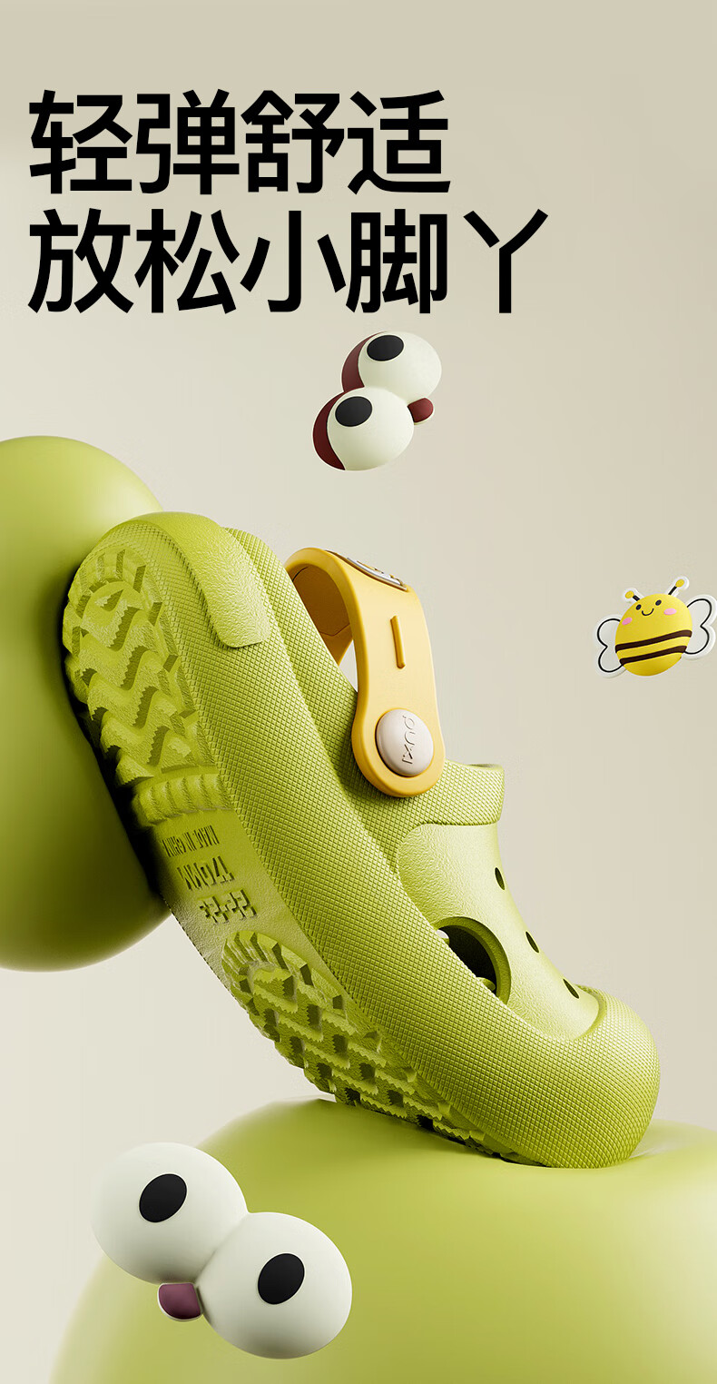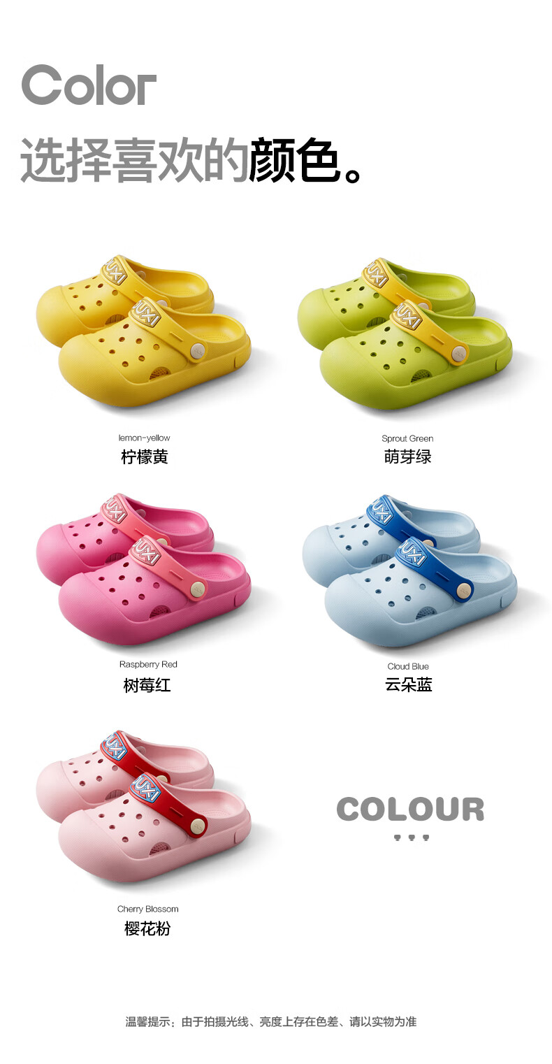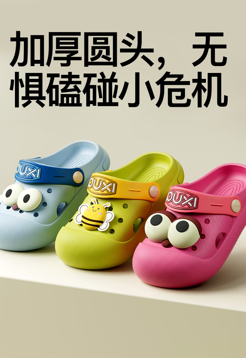 朴西儿童洞洞鞋女童拖鞋小孩夏季新款软底男童防滑女孩卡通鞋花洞洞鞋 树莓红+大眼睛 22 【160mm】