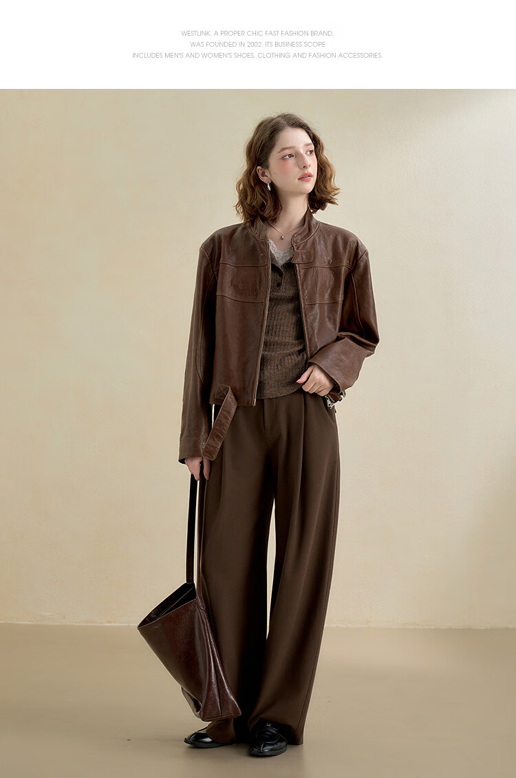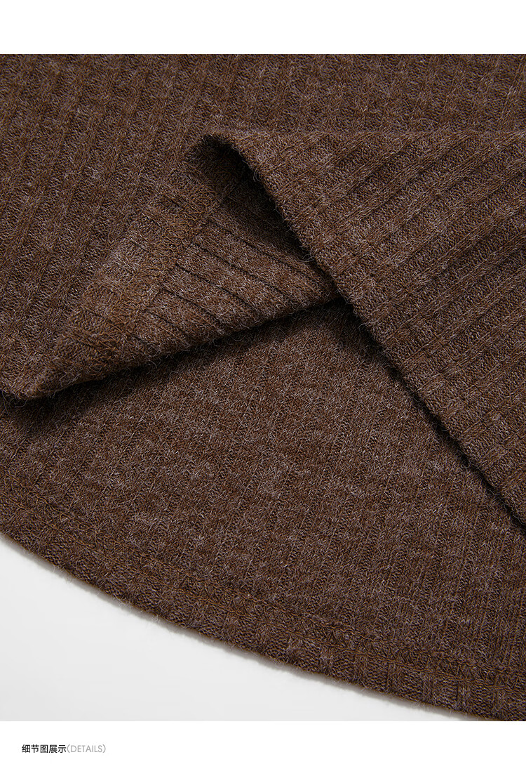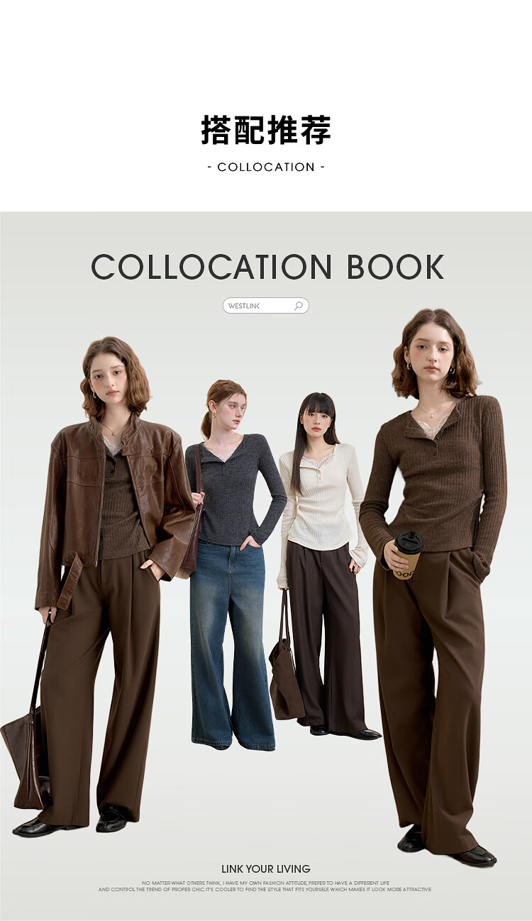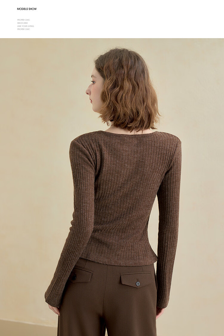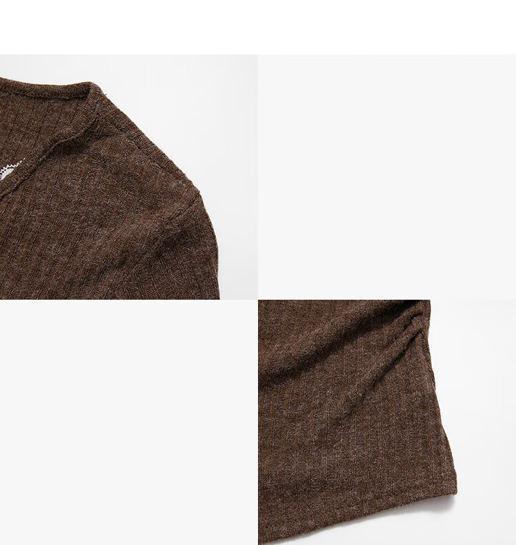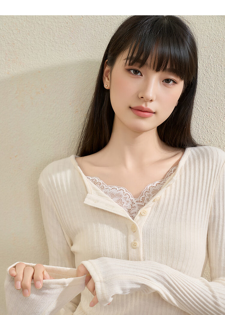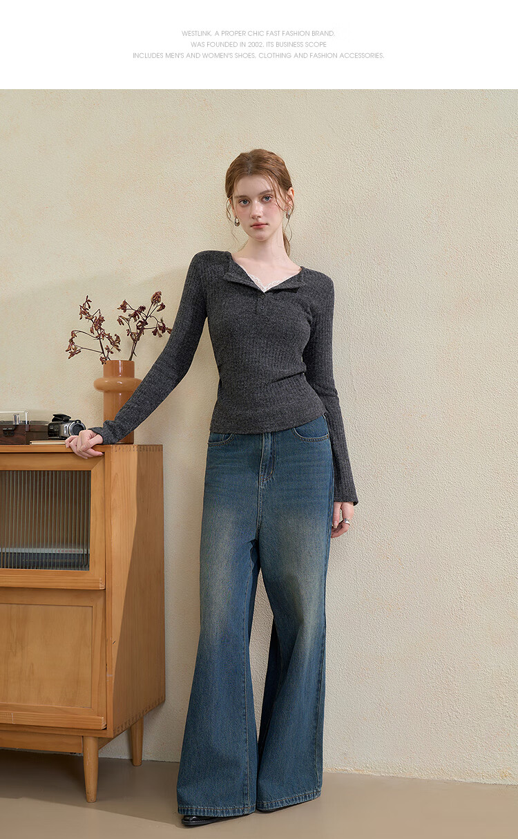 西遇蕾丝拼接假两件V领长袖针织衫女2025秋季修身显瘦软糯T恤上衣 咖色 (L/XL预售15天) L (165)