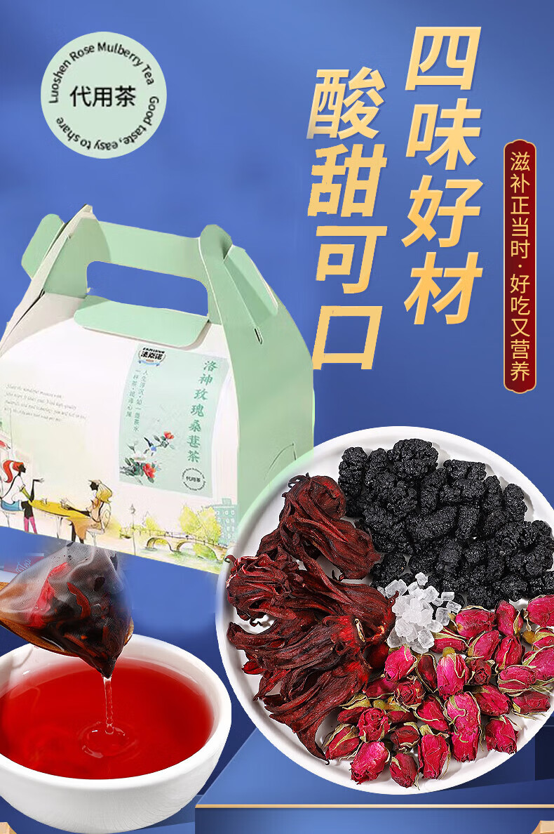 法米诺洛神玫瑰桑葚花茶女神素颜茶冷泡茶玫瑰花茶酸甜水果茶5g*25袋/盒 洛神玫瑰桑葚伴手礼盒250g(50袋)
