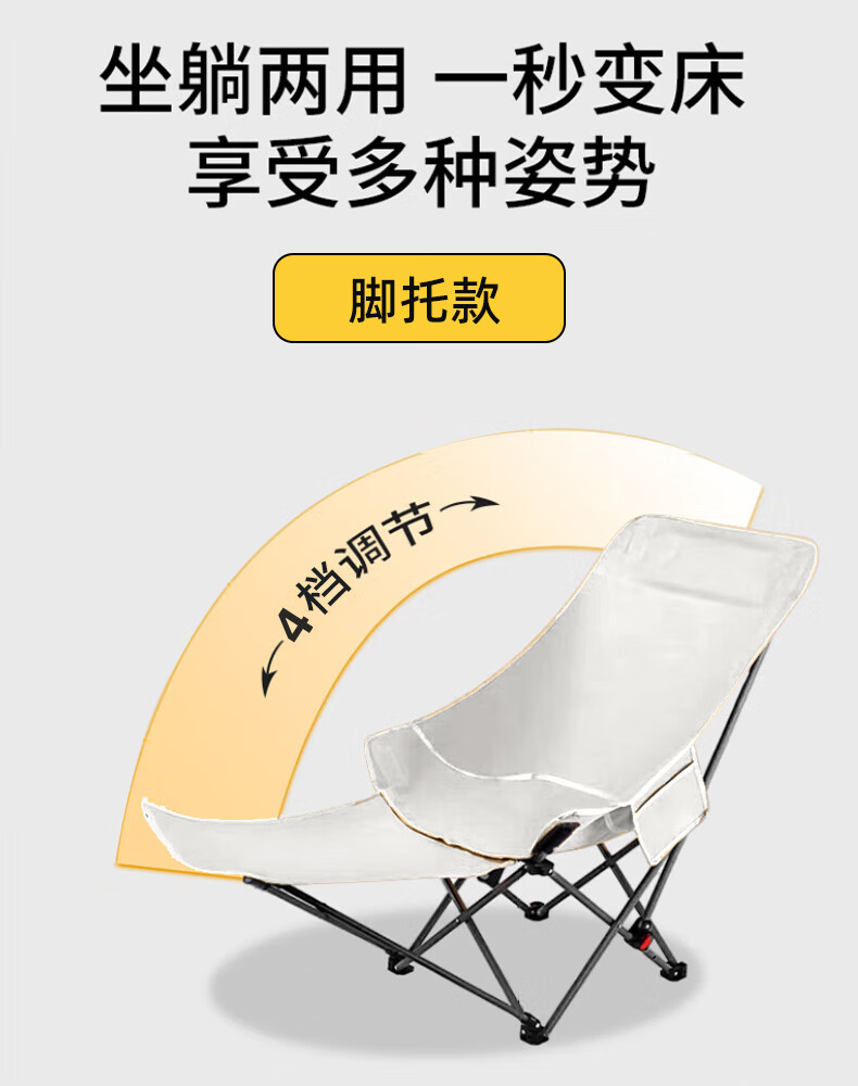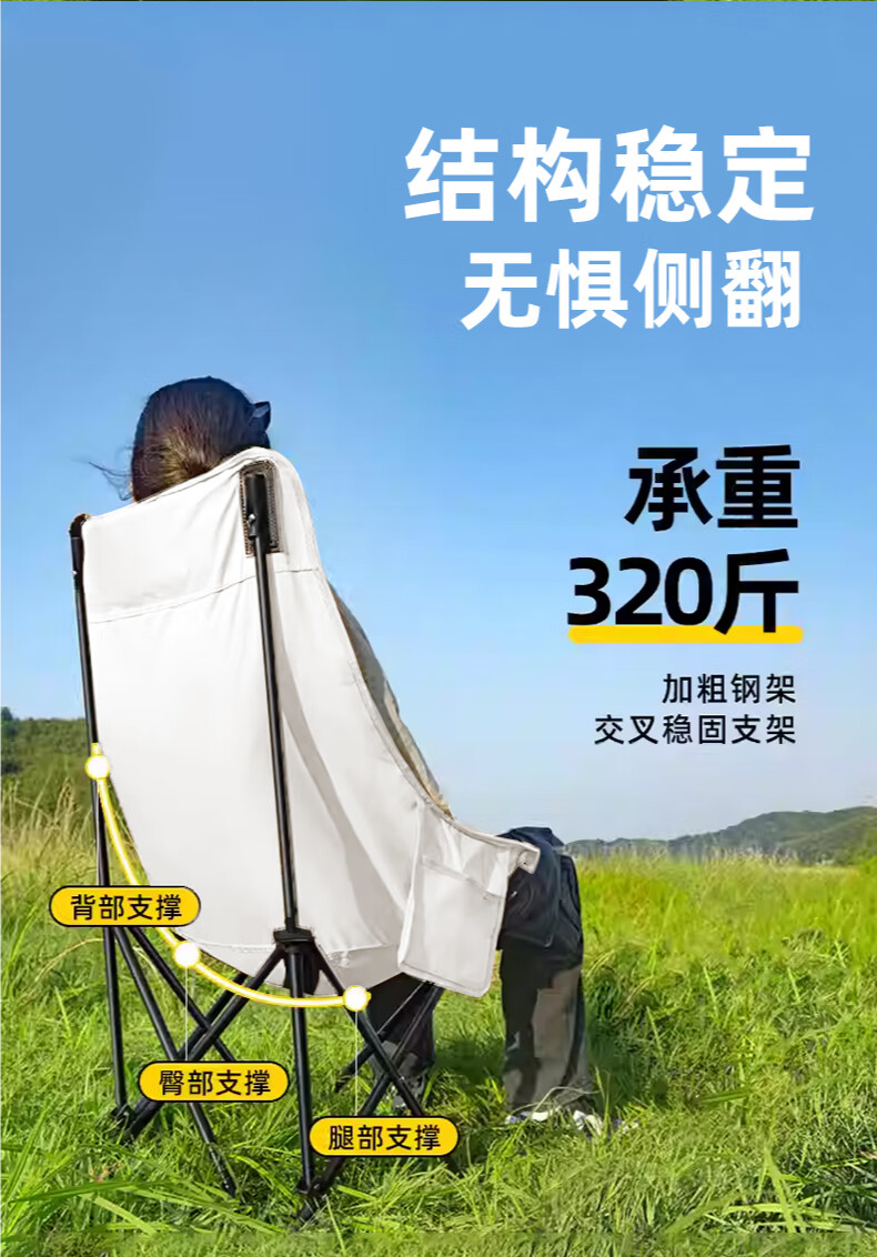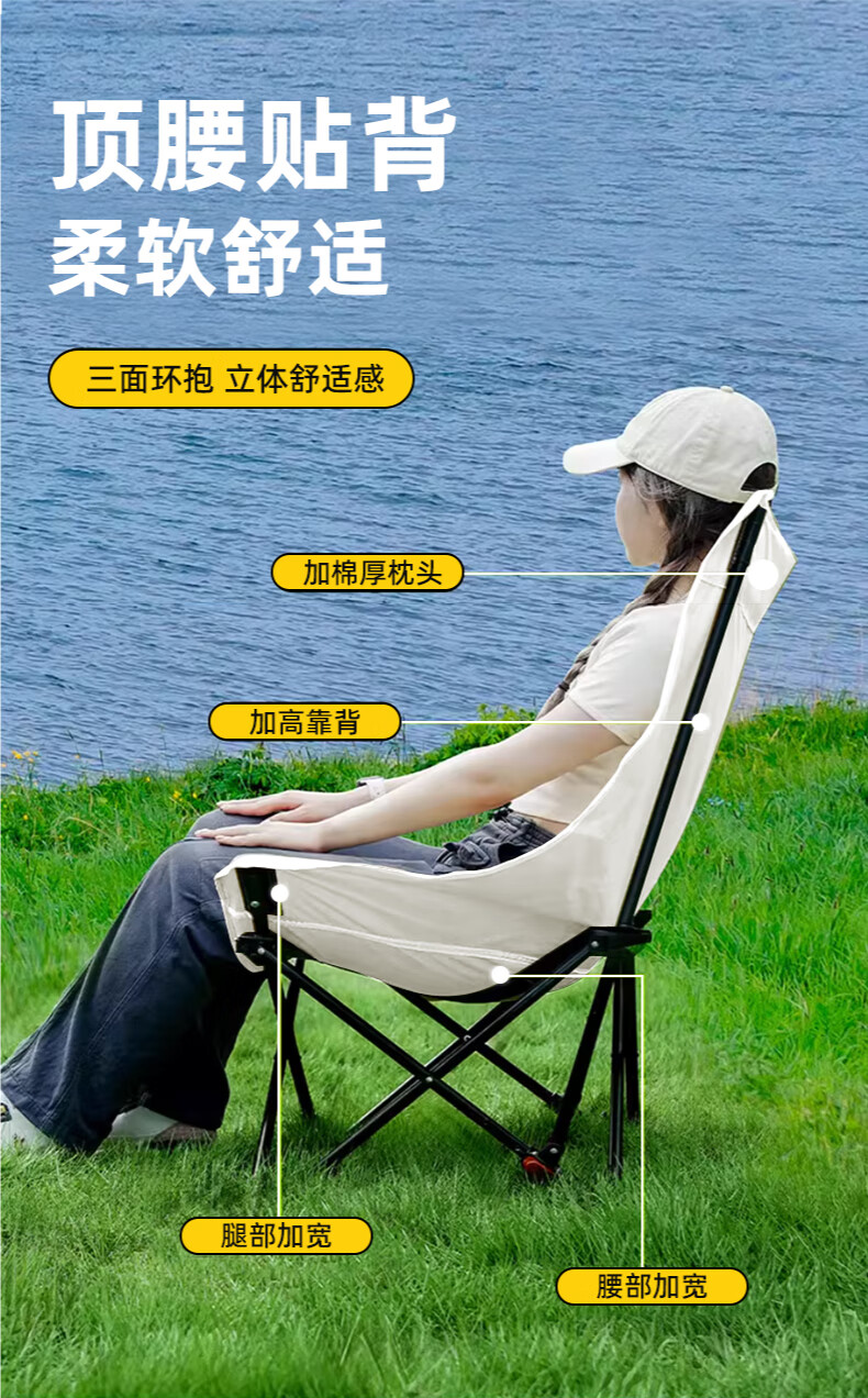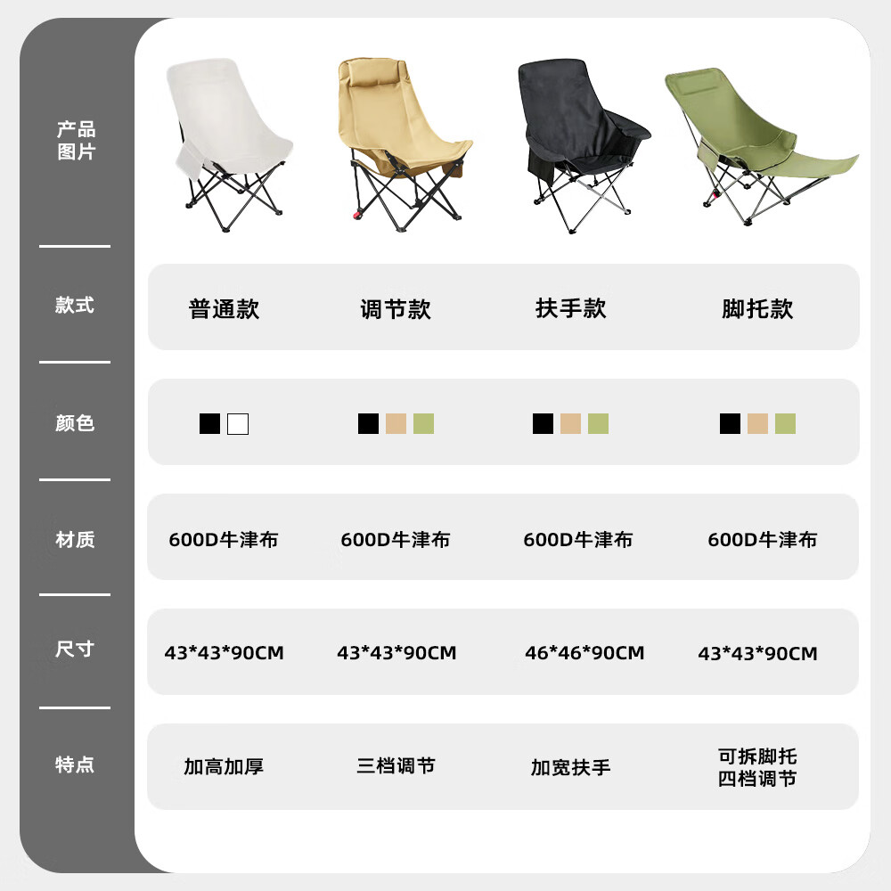 月逸清辉户外折叠椅露营野餐加高靠背月亮椅可调节躺椅椅子钓椅 【经典款】高背月亮椅-黑色