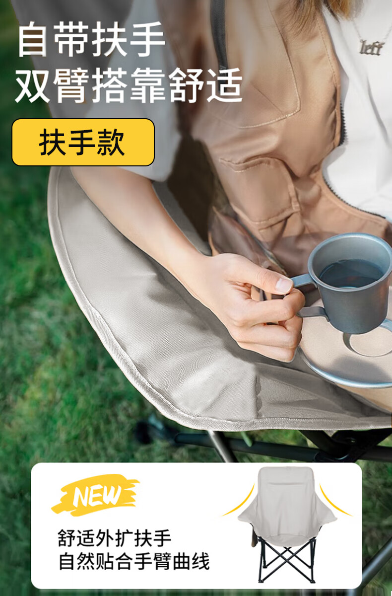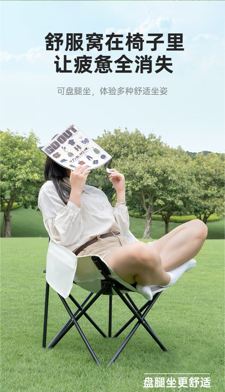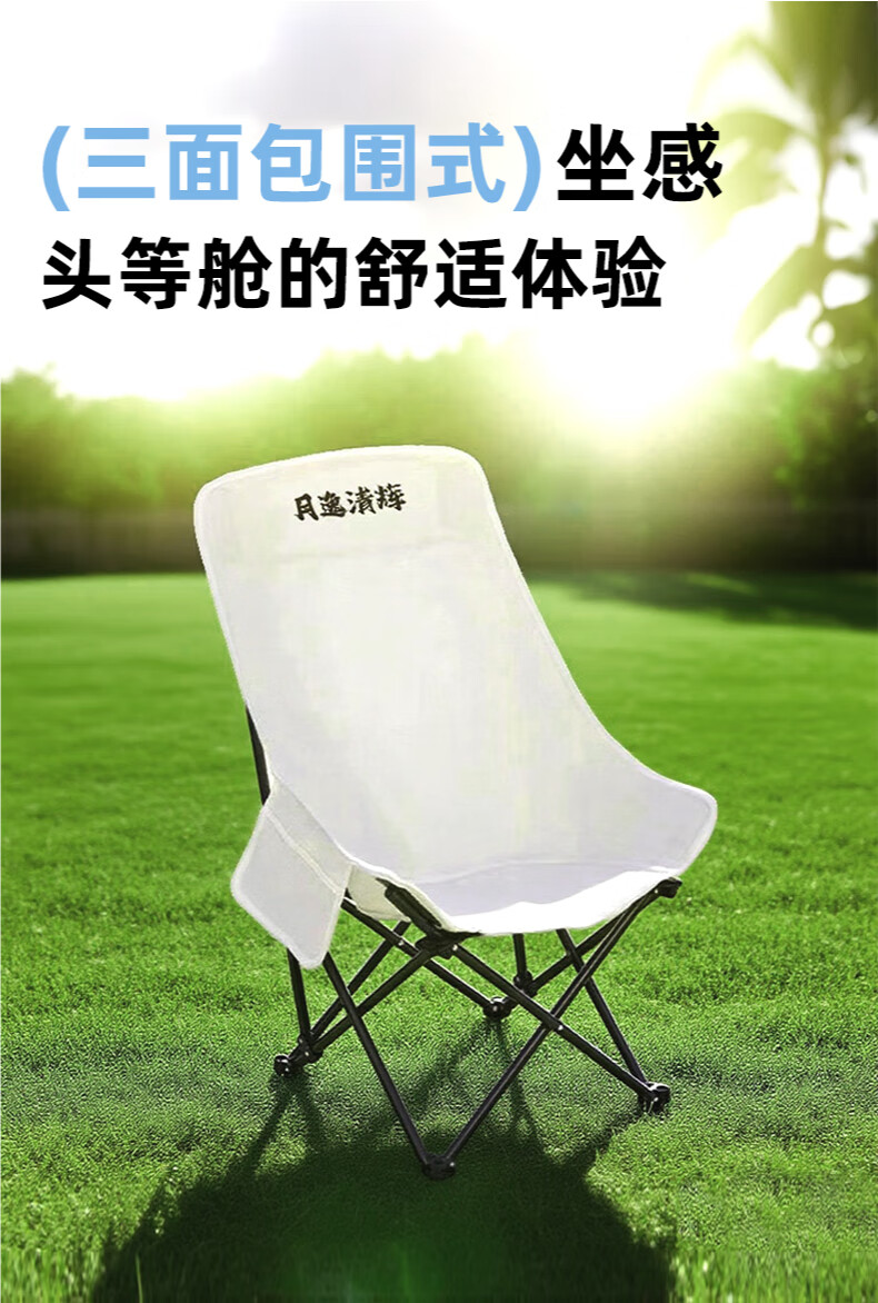 山头林村折叠椅户外露营便携靠背钓鱼椅懒人椅家庭休闲月亮椅旅行椅 白色月亮椅*1