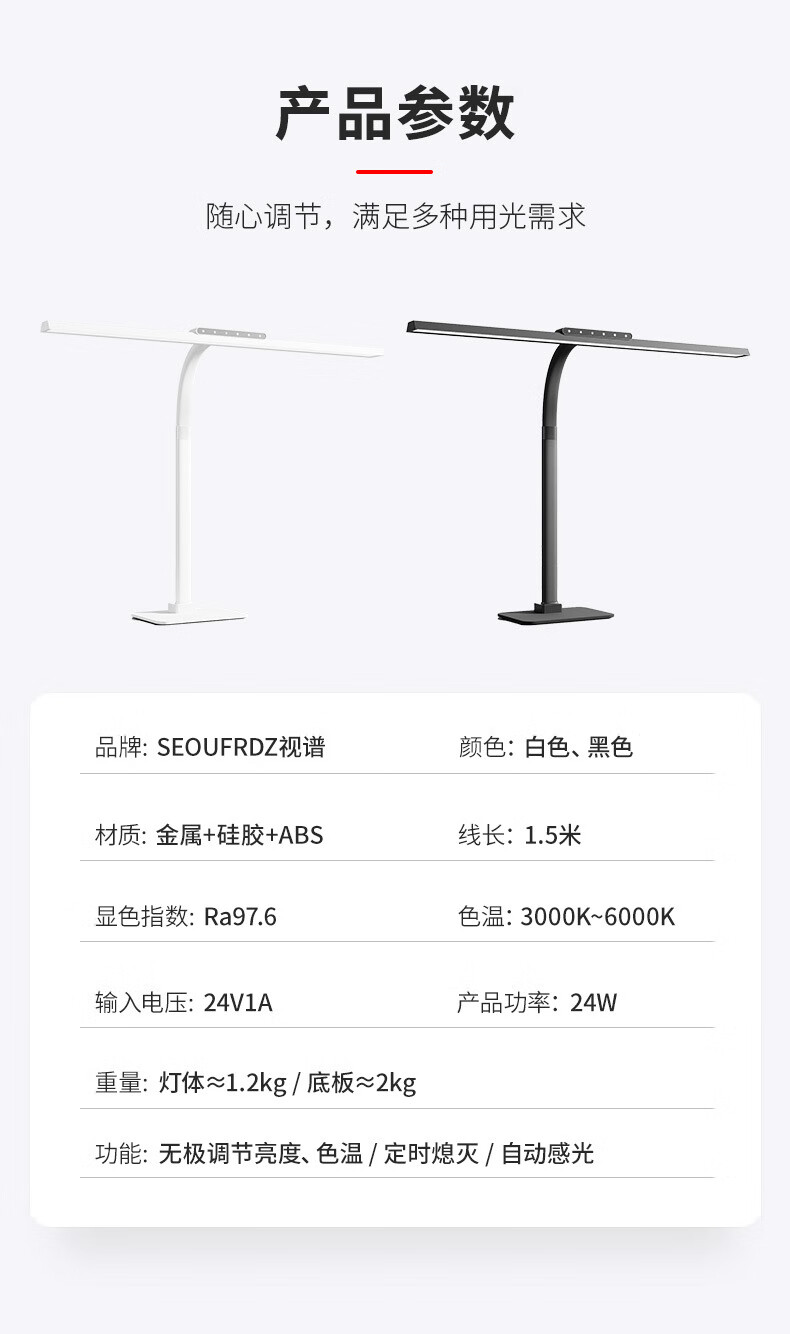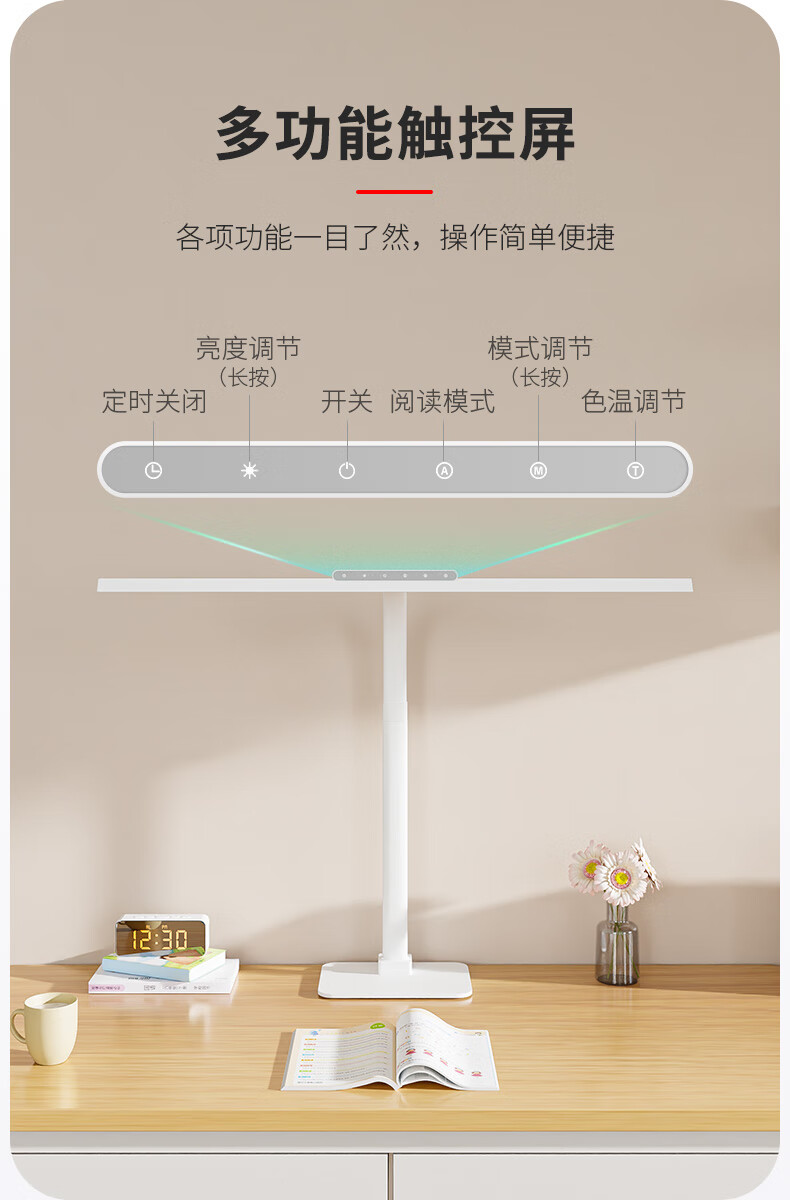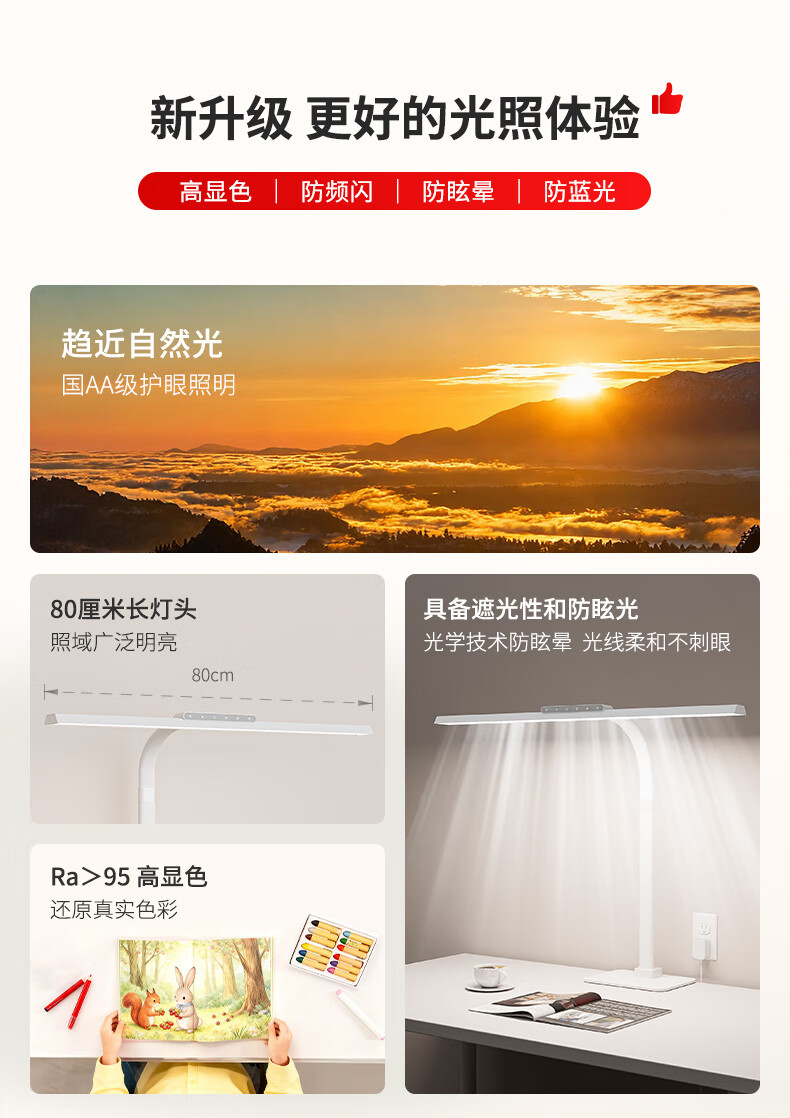 视谱(SHIPU)台灯护眼学习专用儿童学生书桌电脑办公桌工作大路灯全光谱台灯 80cm白色触控(底座款)