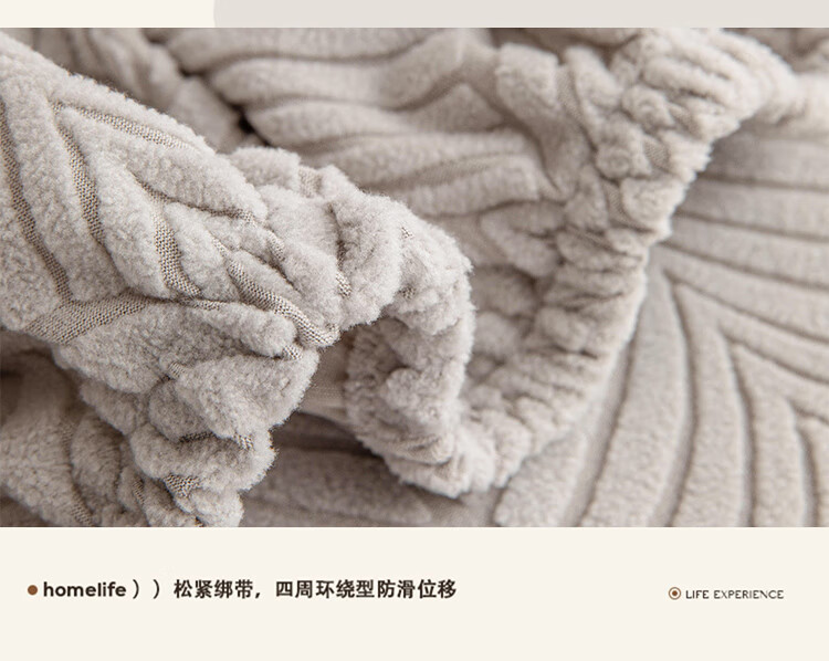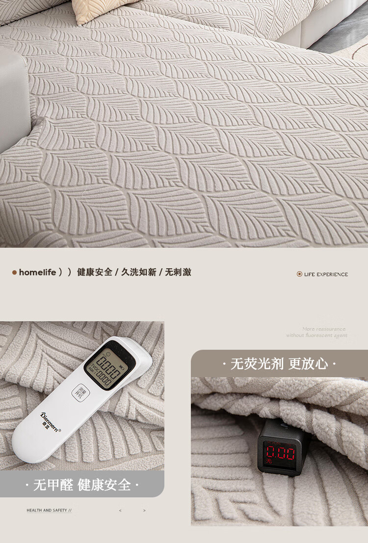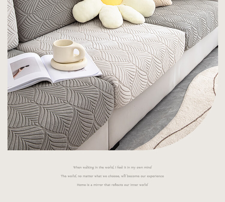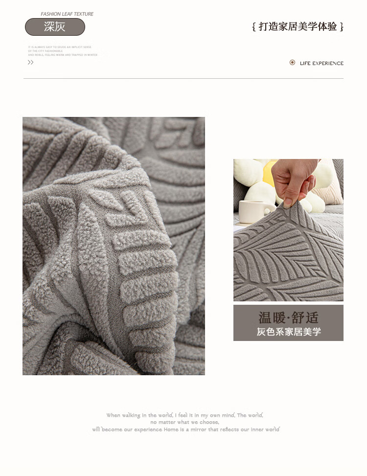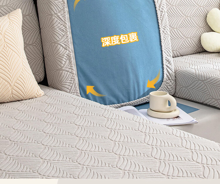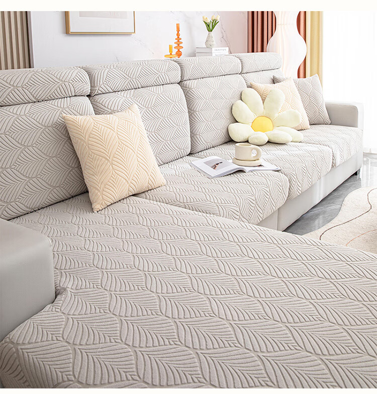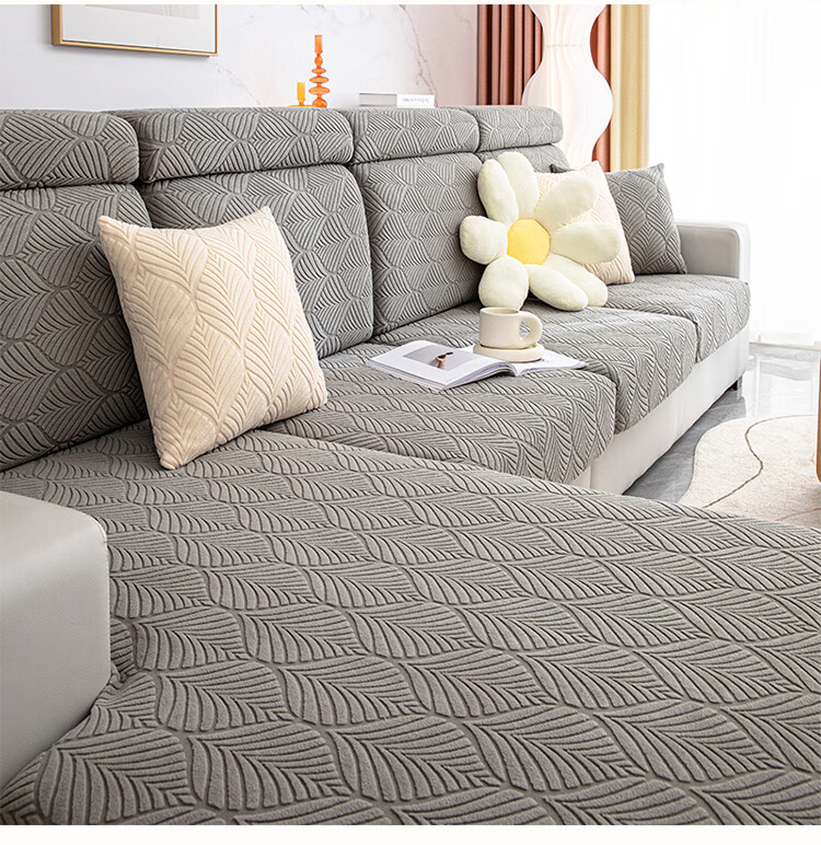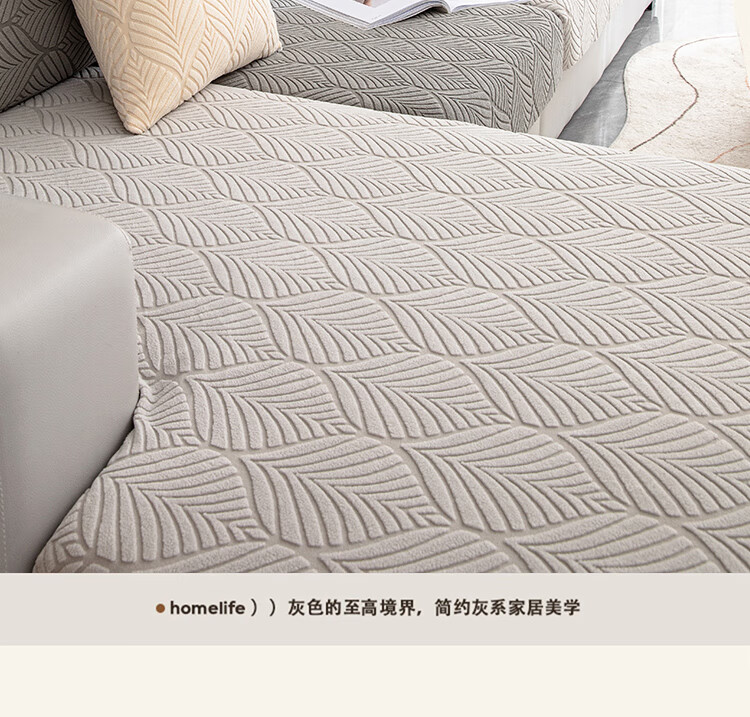 金拾美月防猫抓提花绒沙发套全包罩2025新款四季通用型坐垫笠防滑盖布巾 叶荞-浅灰 单人加大S宽65-85cm*长65-95cm