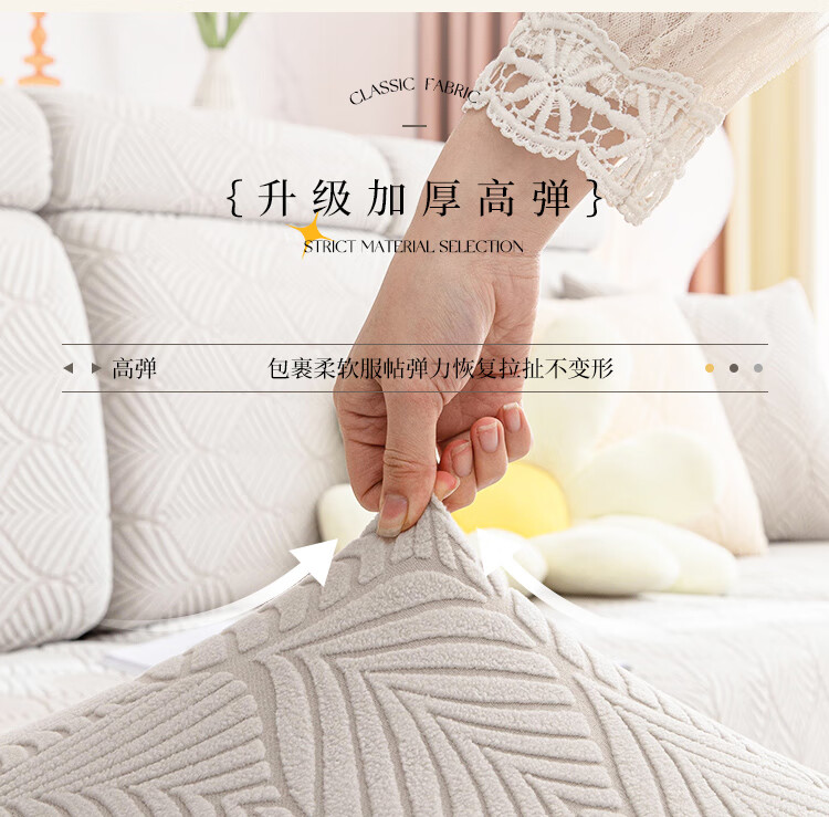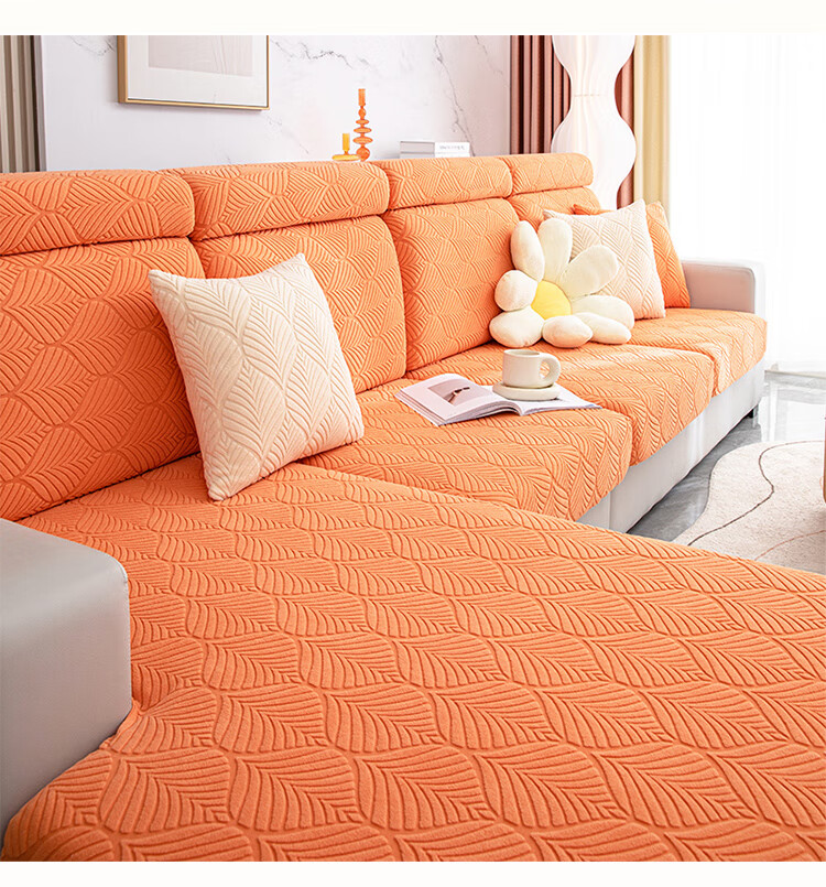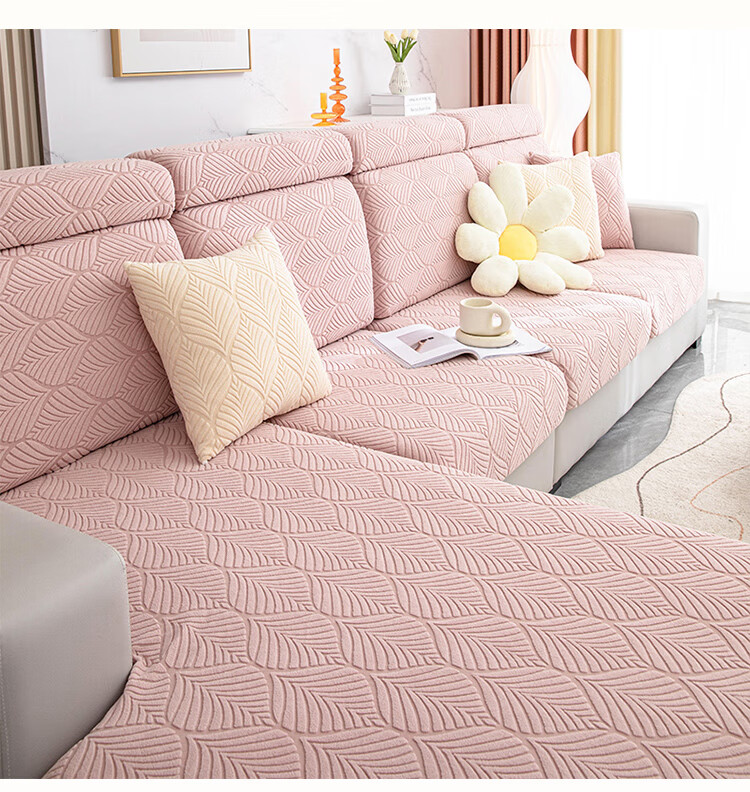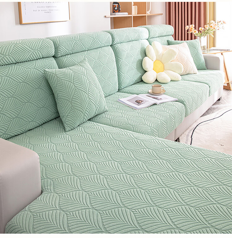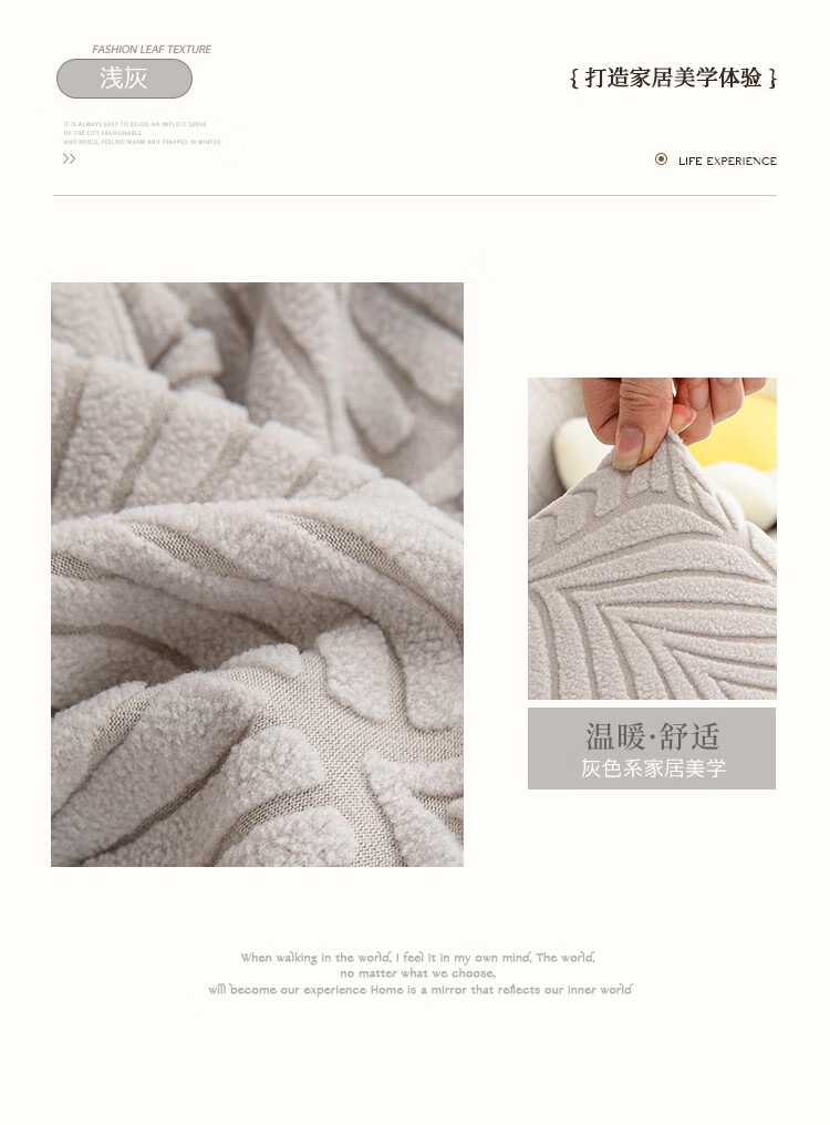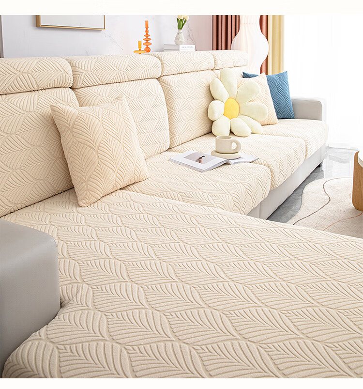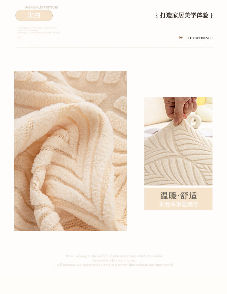 金拾美月防猫抓提花绒沙发套全包罩2025新款四季通用型坐垫笠防滑盖布巾 叶荞-浅灰 单人加大S宽65-85cm*长65-95cm